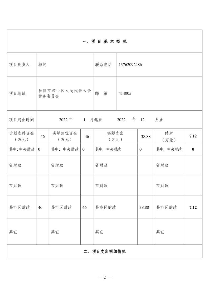 2022年度人大乡镇平台运行经费项目绩效评价自评报告