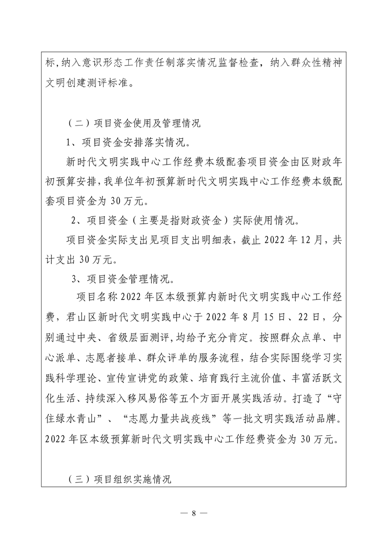 2022年度区委宣传部新时代文明实践中心工作经费项目绩效评价自评报告