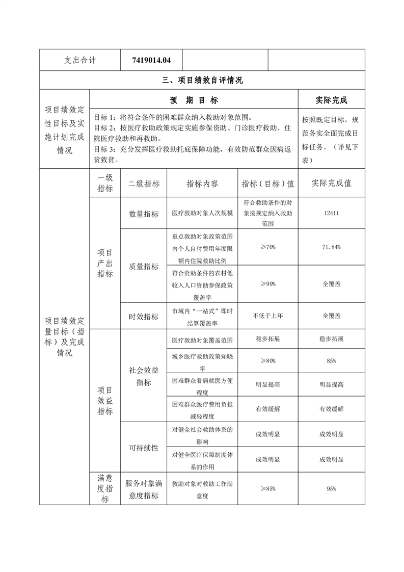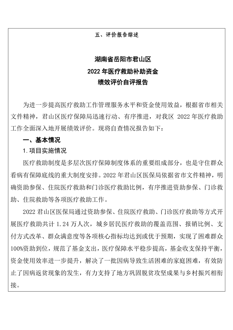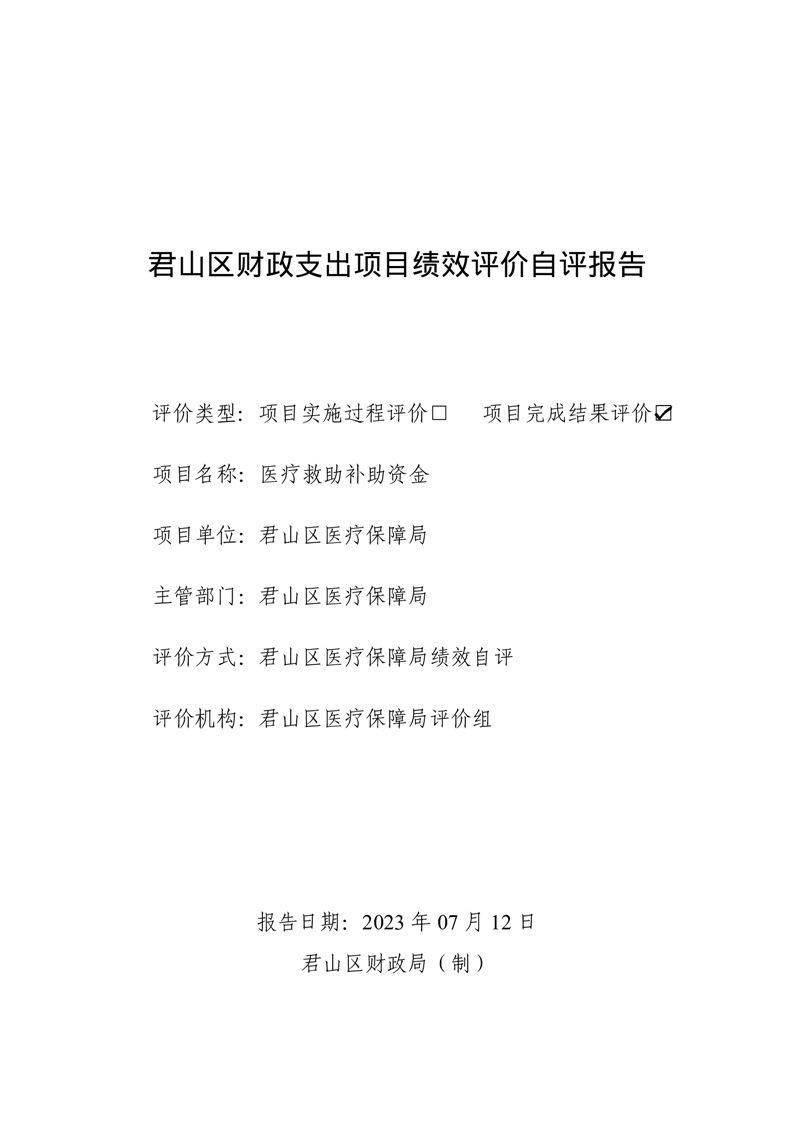 2022年度医疗救助补助资金项目绩效评价自评报告