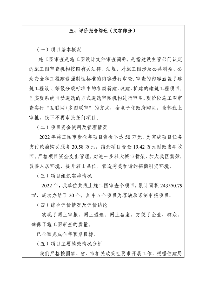 2022年度君山区住建局图审费项目绩效评价自评报告