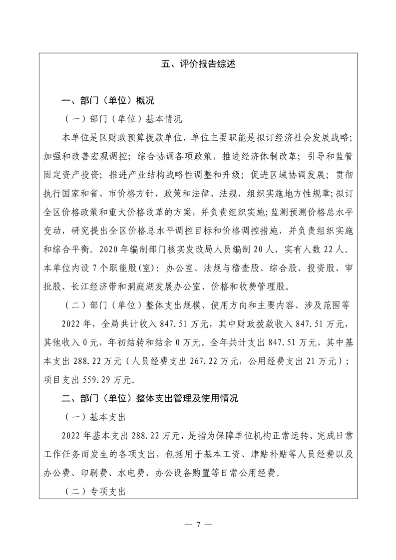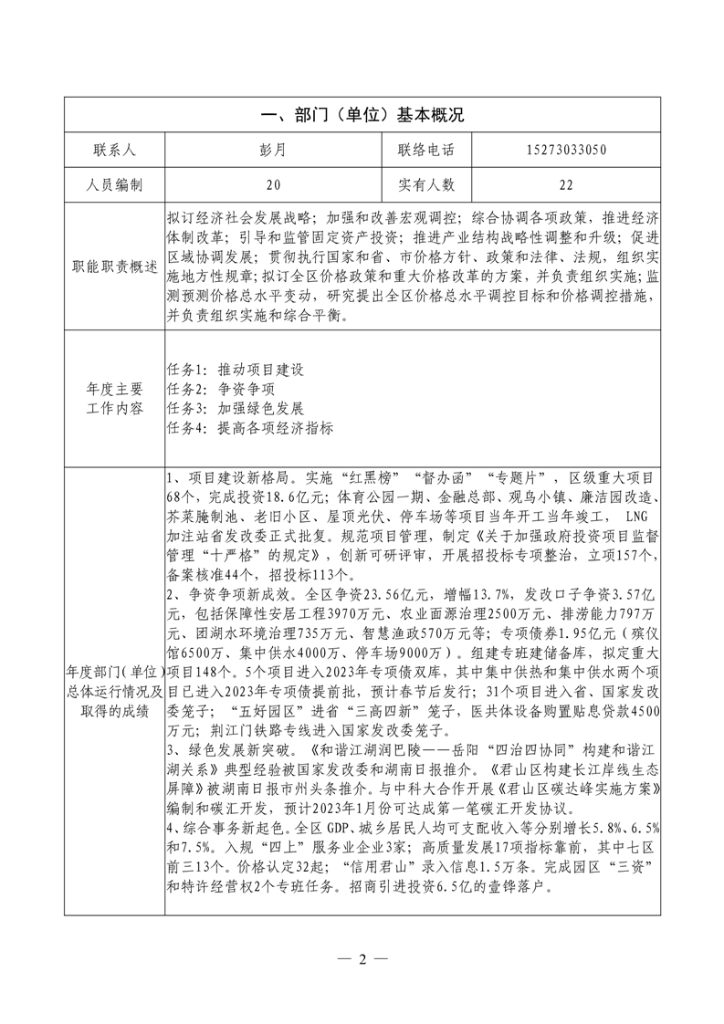 2022年度君山区发展和改革局整体支出绩效自评报告
