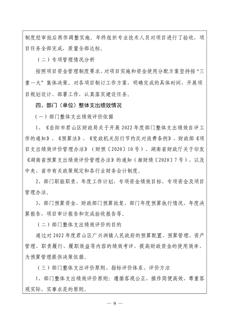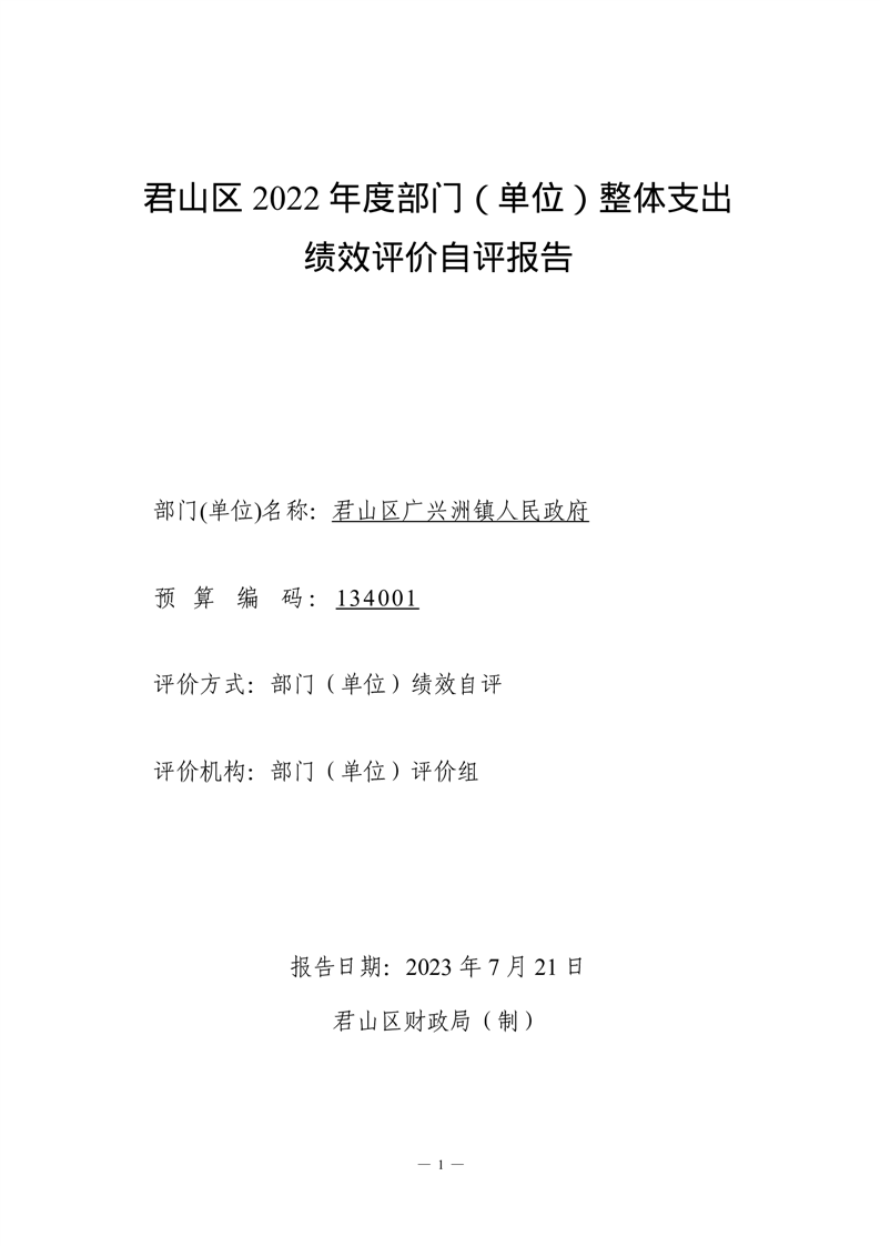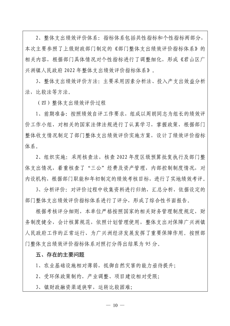 2022年度君山区广兴洲镇人民政府整体支出绩效自评报告
