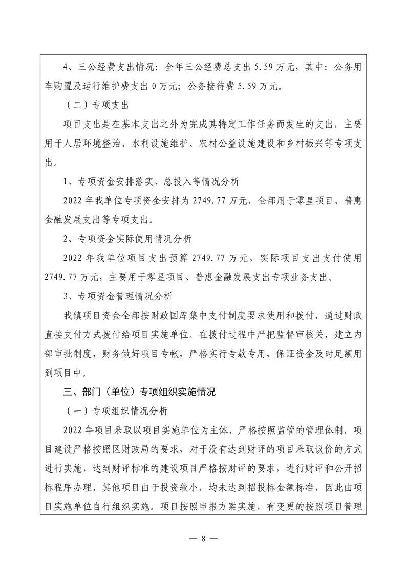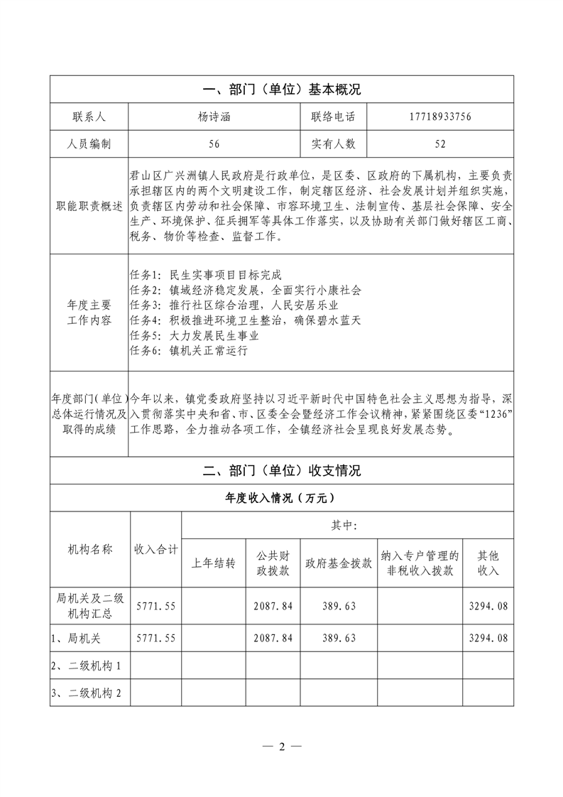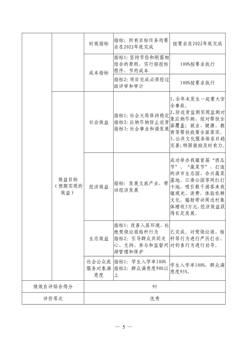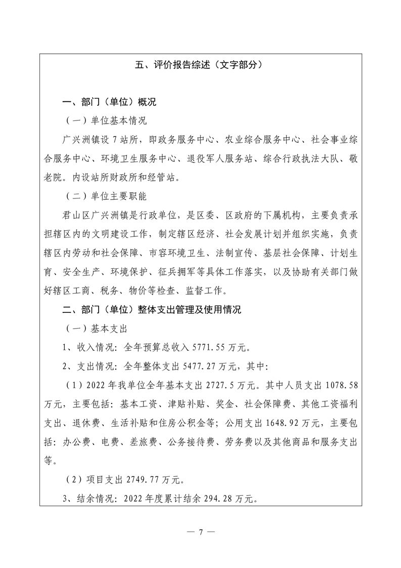 2022年度君山区广兴洲镇人民政府整体支出绩效自评报告