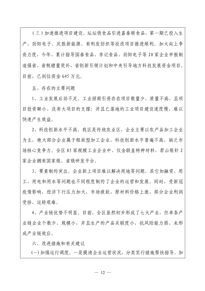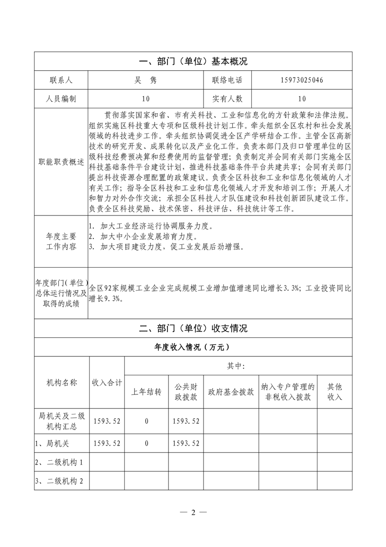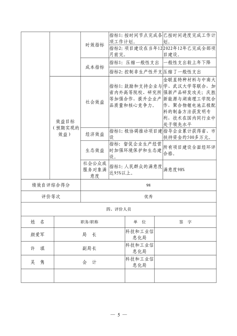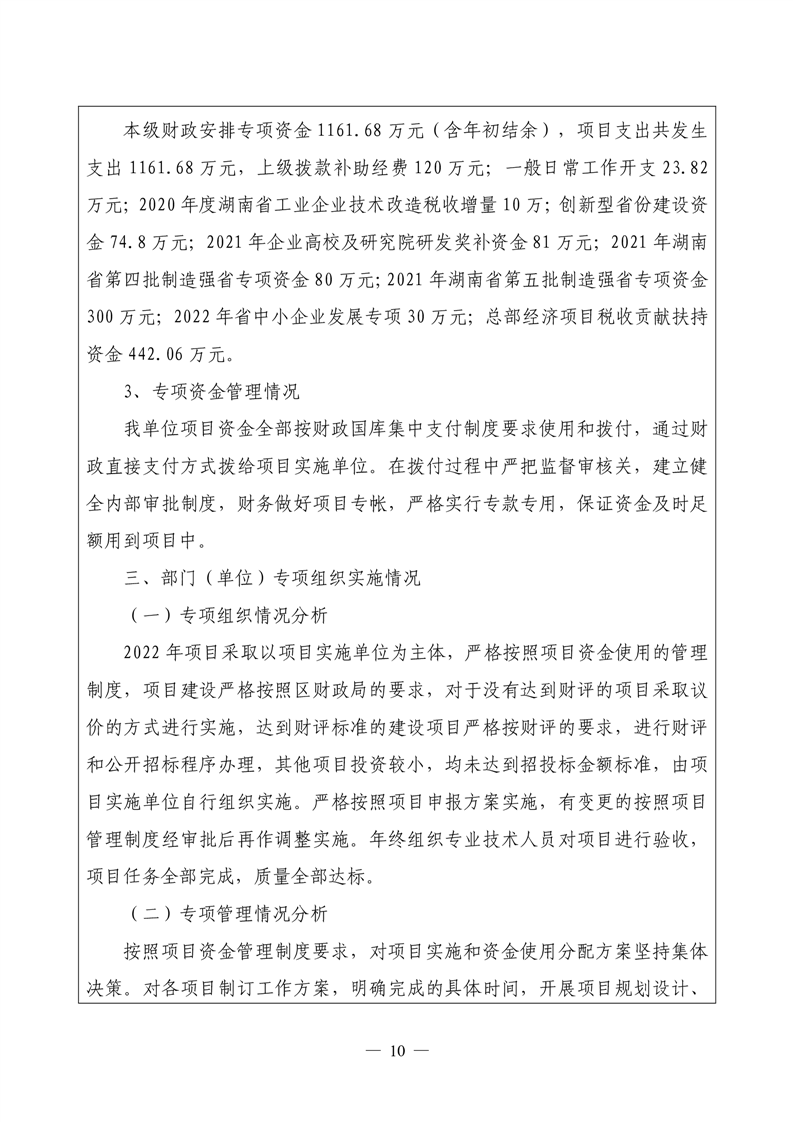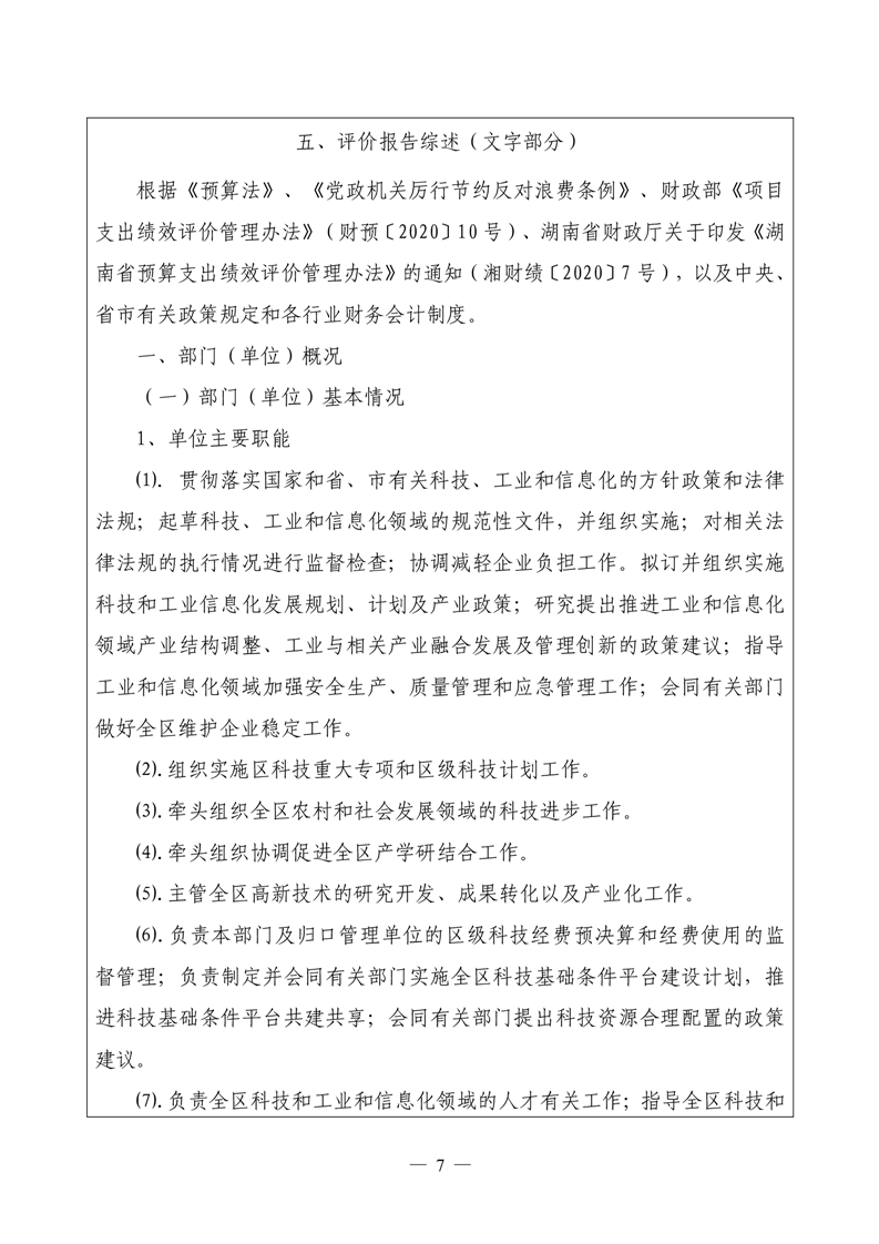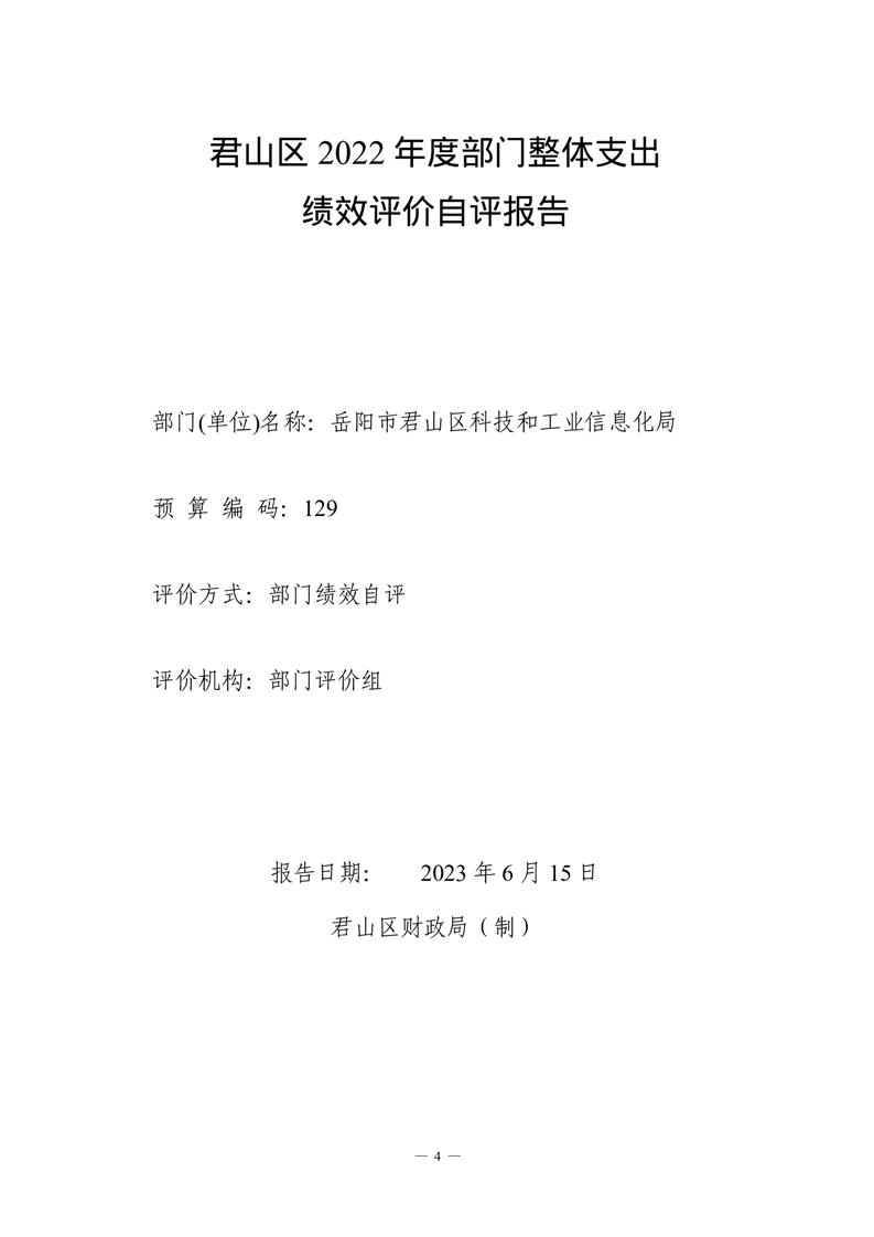 2022年度君山区科技和工业信息化局整体支出绩效自评报告