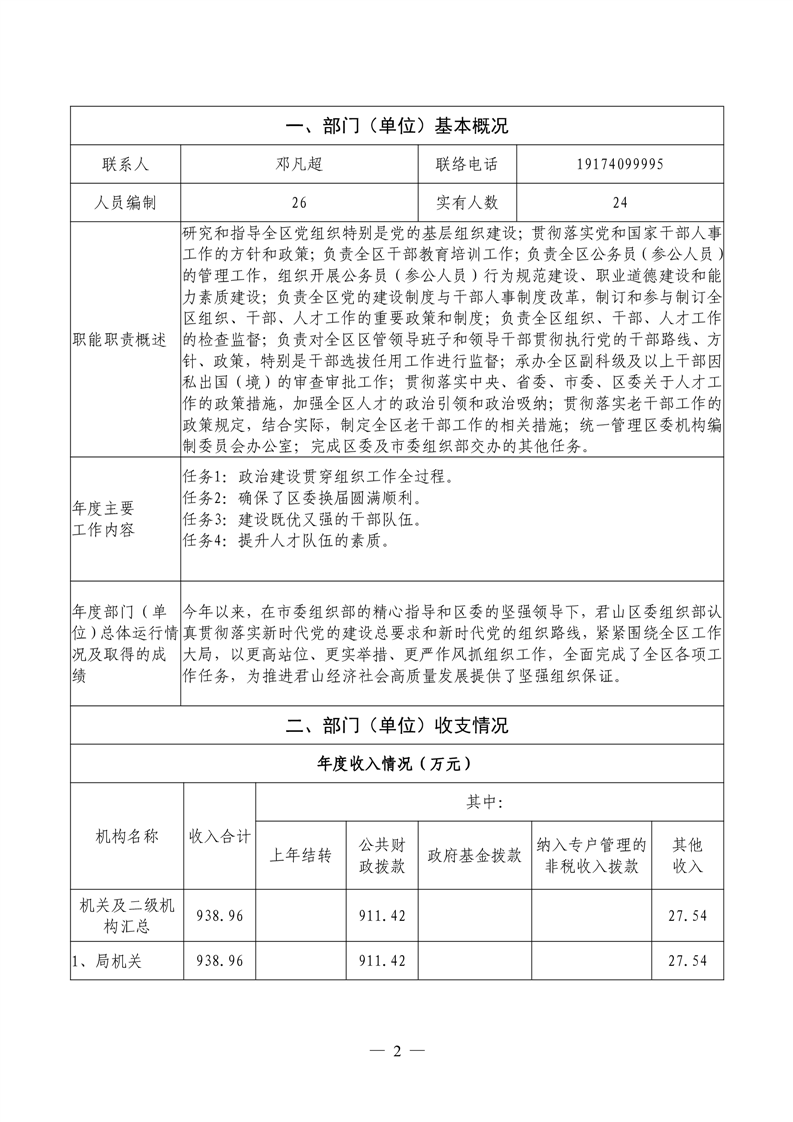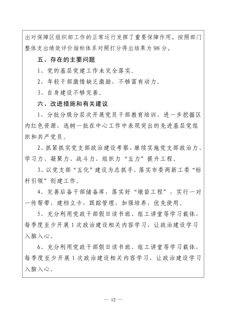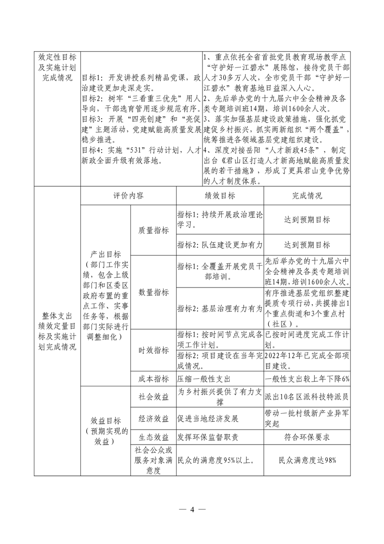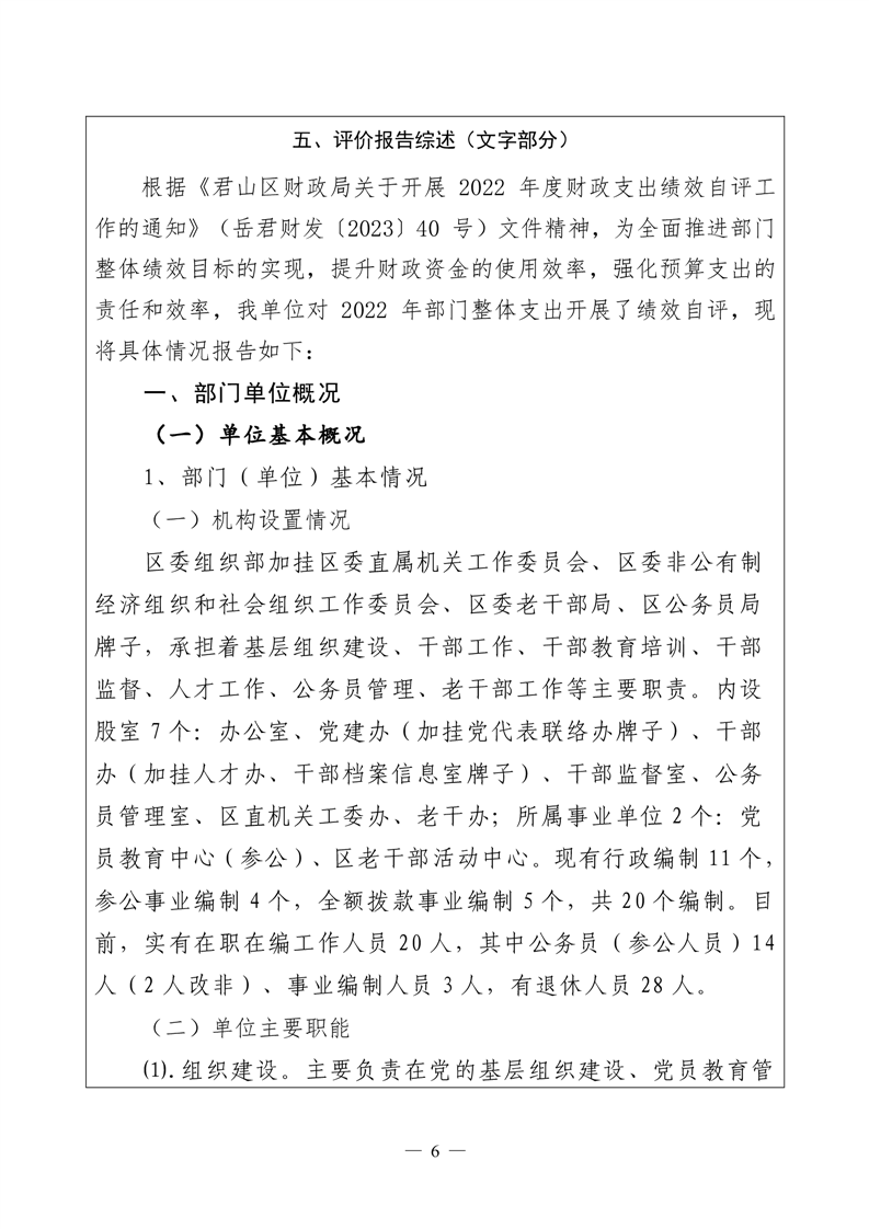 2022年度君山区委组织部整体支出绩效自评报告