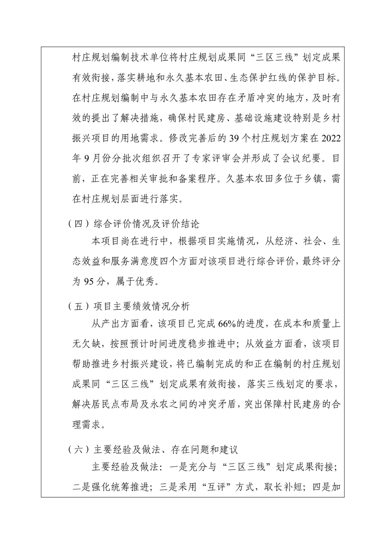 2022年度君山区“多规合一”村庄规划编制项目(2021年)绩效评价自评报告