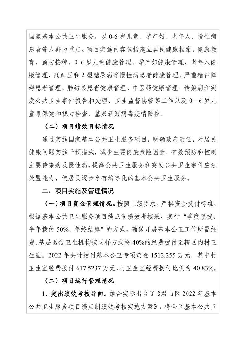 2022年度基本公共卫生服务经费项目绩效评价自评报告