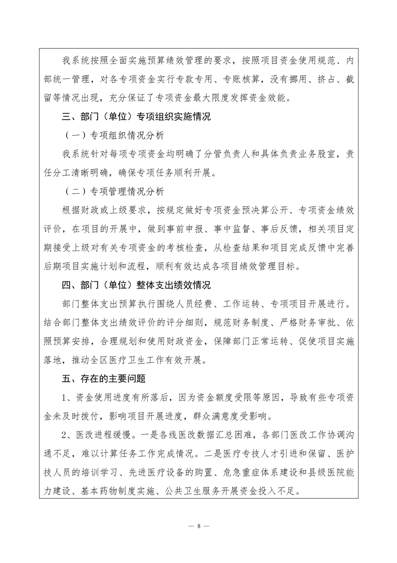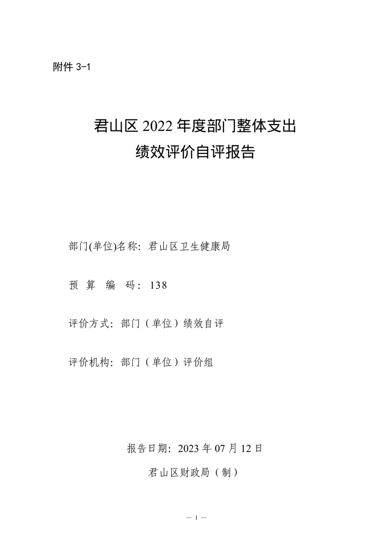 2022年度君山区卫生健康局整体支出绩效自评报告