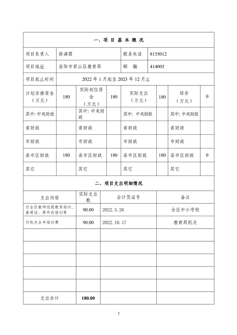 2022年度君山区教育局教师培训费项目绩效评价自评报告