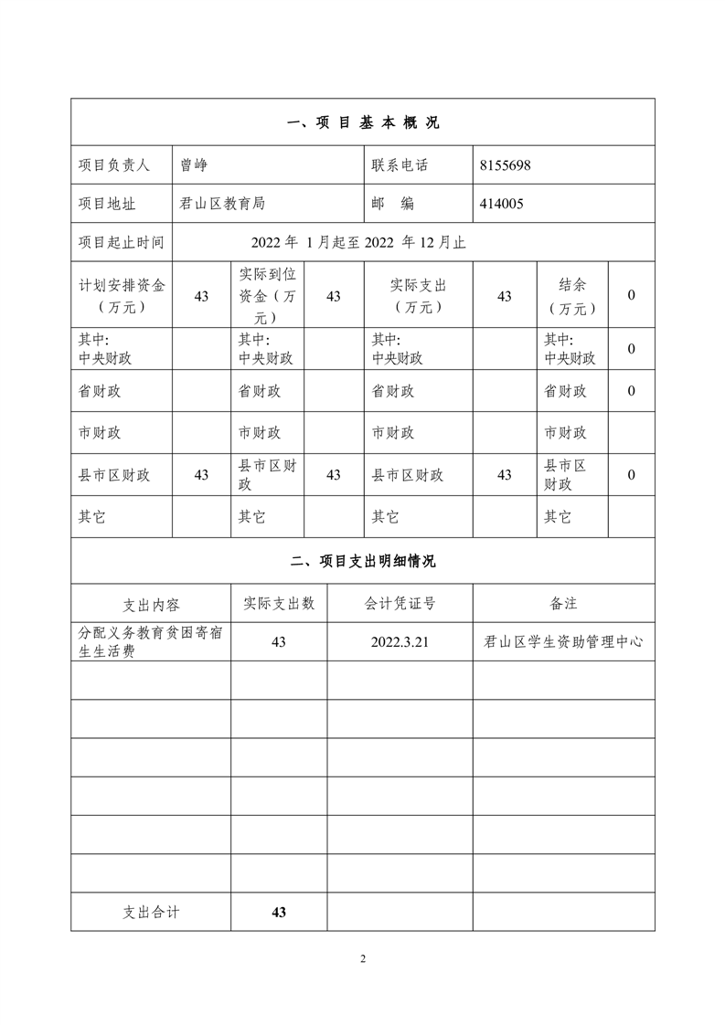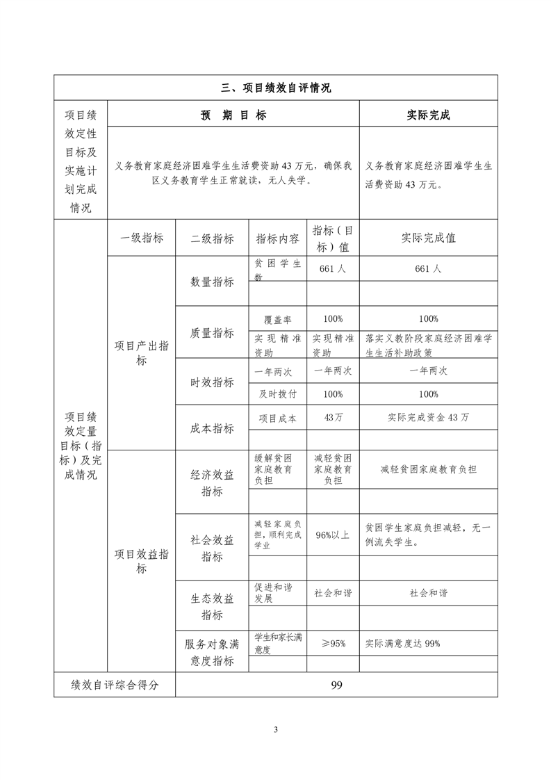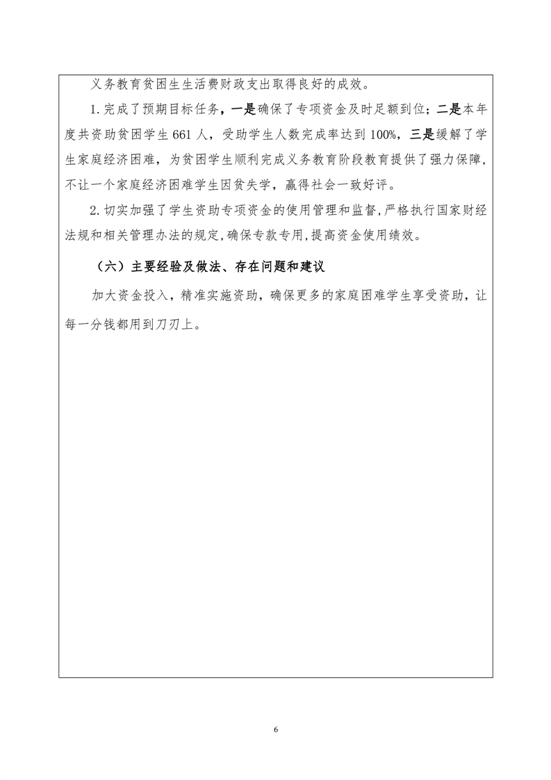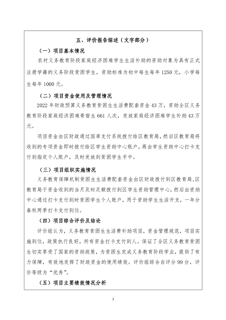 2022年度义务教育贫困生生活费项目绩效评价自评报告