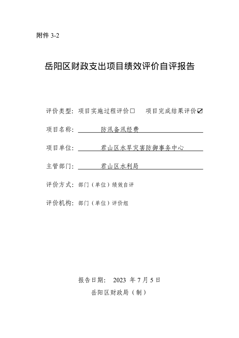 2022年度君山区水利局防汛备汛经费项目绩效评价自评报告