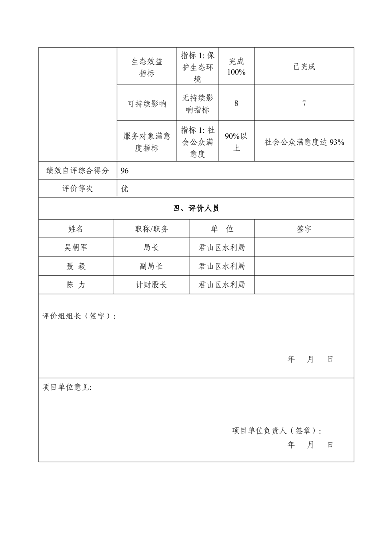 2022年度君山区水利局防汛抗旱经费项目绩效评价自评报告
