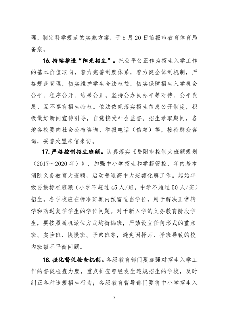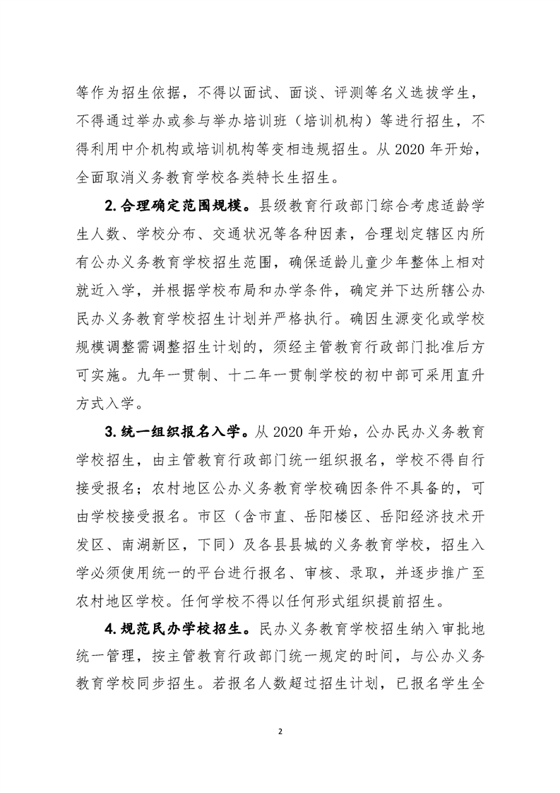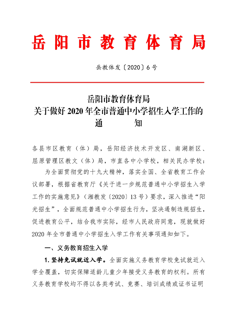 岳教体发(2020)6号关于做好2020年全市普通中小学招生入学工作的通知