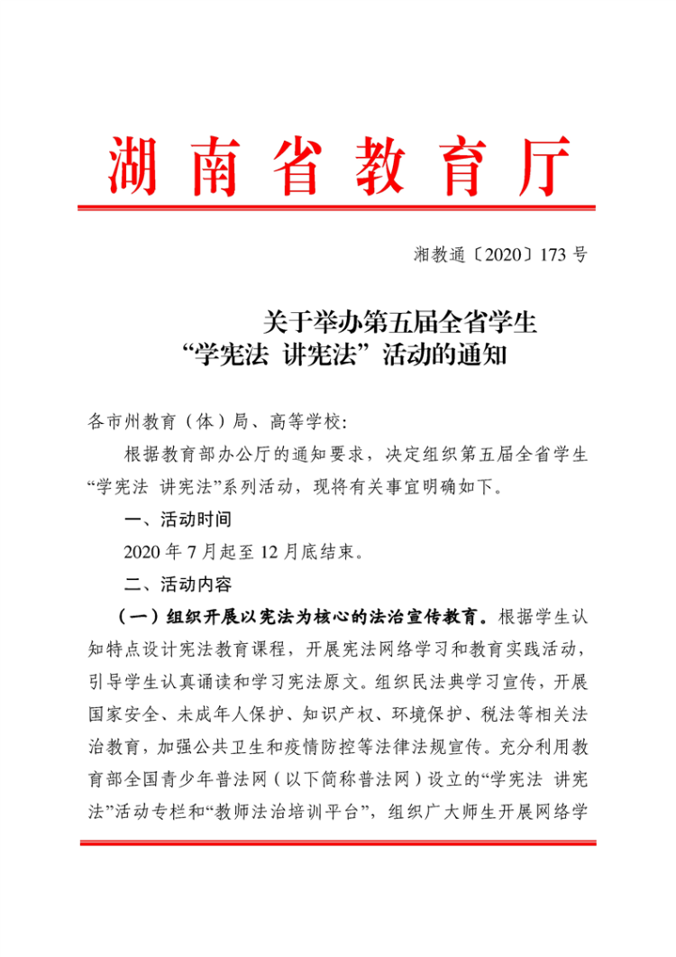 关于举办第五届全省学生“学宪法讲宪法”活动的通知
