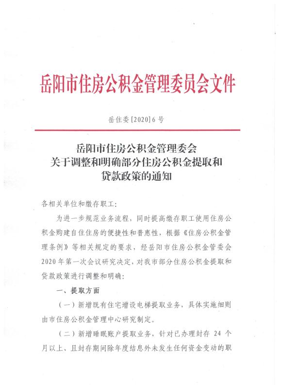岳阳市住房公积金管理委员会关于调整和明确部分住房公积金提取和贷款政策的通知