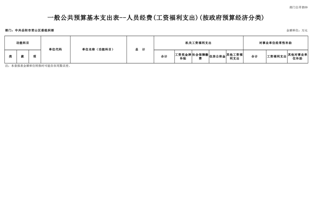2025年中共岳阳市君山区委组织部(部门)预算公开