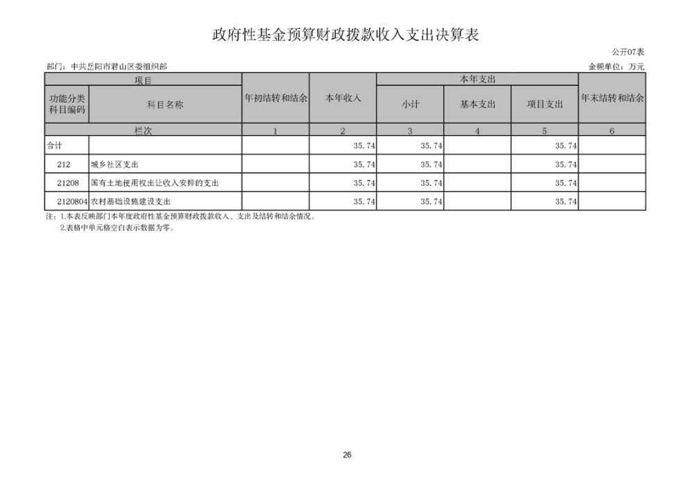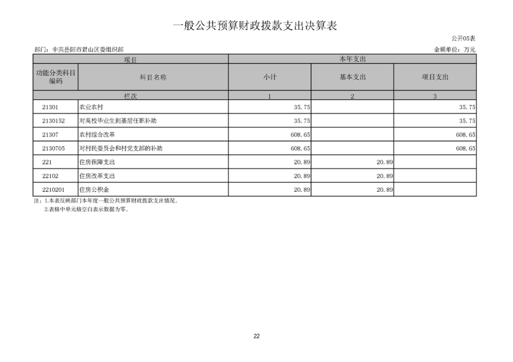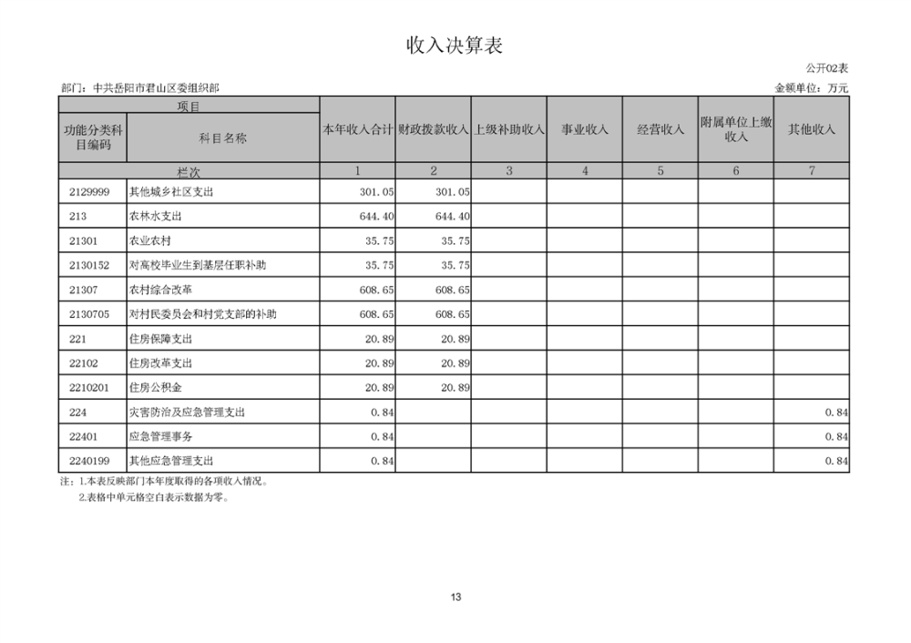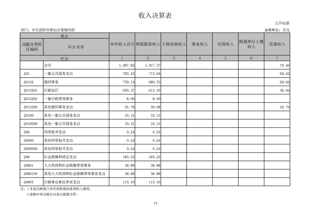 2024年度中共岳阳市君山区委组织部部门决算公开