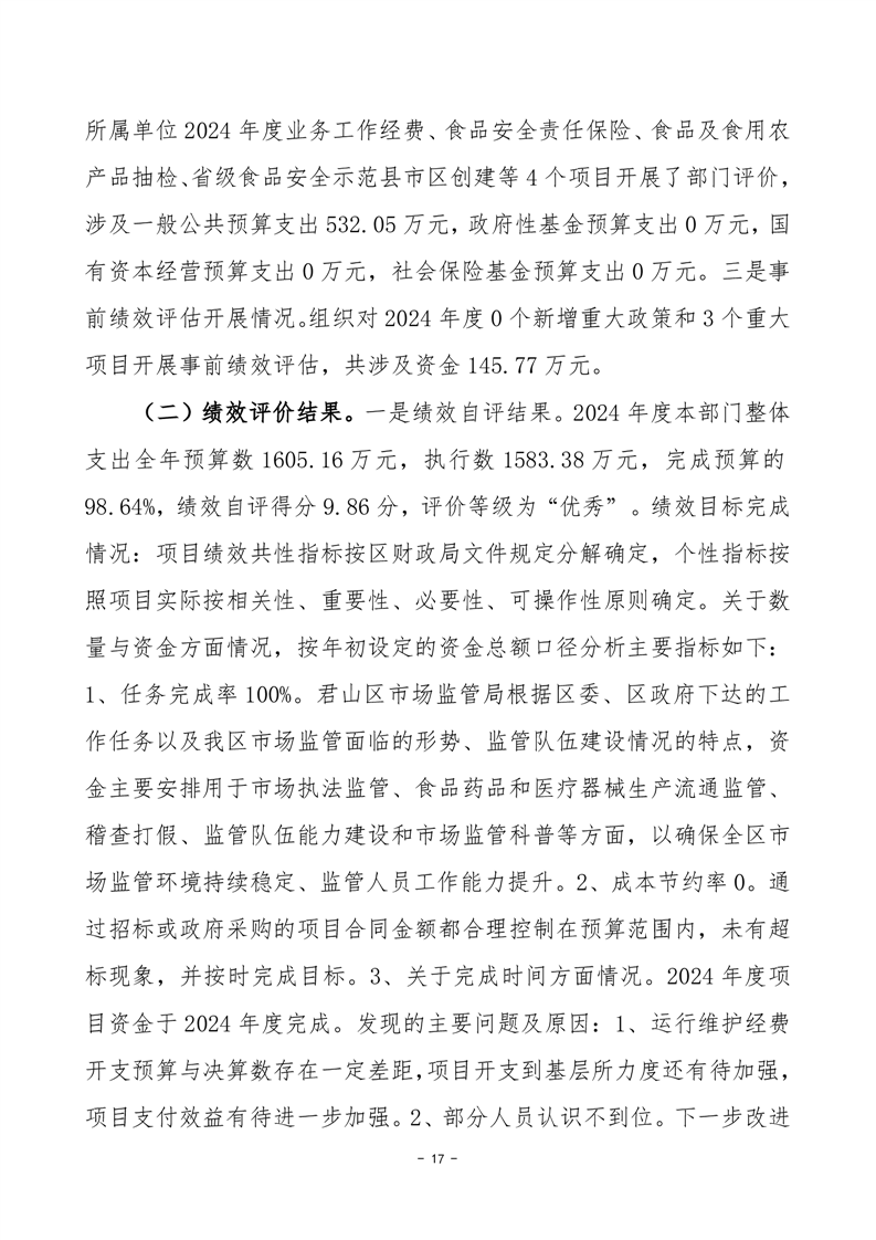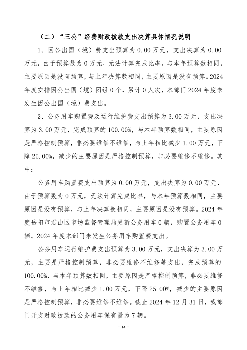 2024年度岳阳市君山区市场监督管理局部门决算公开