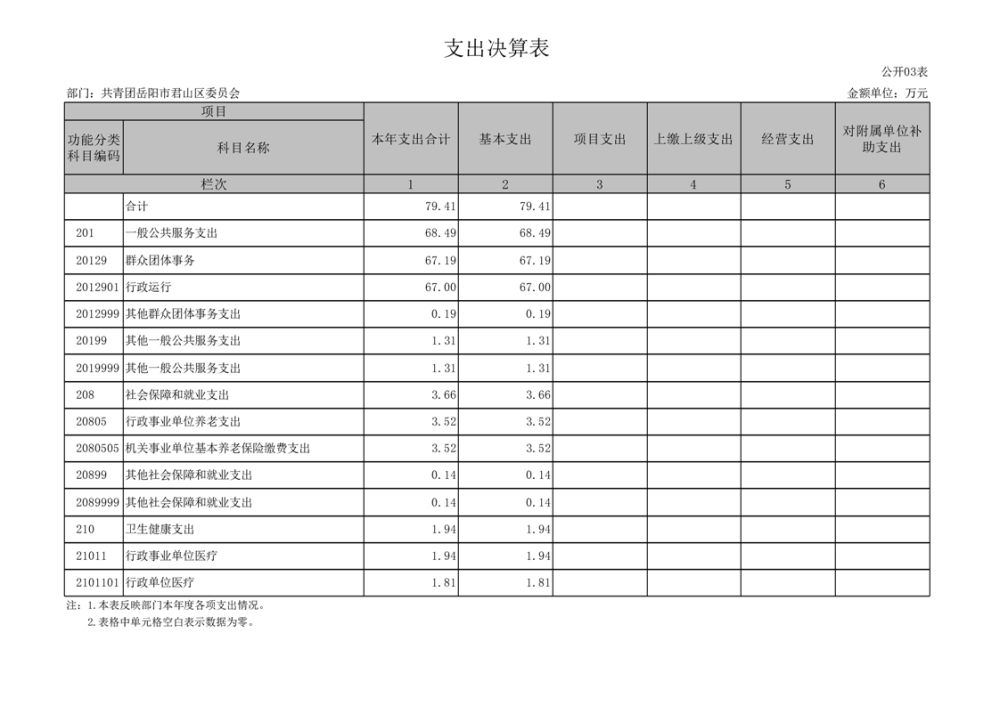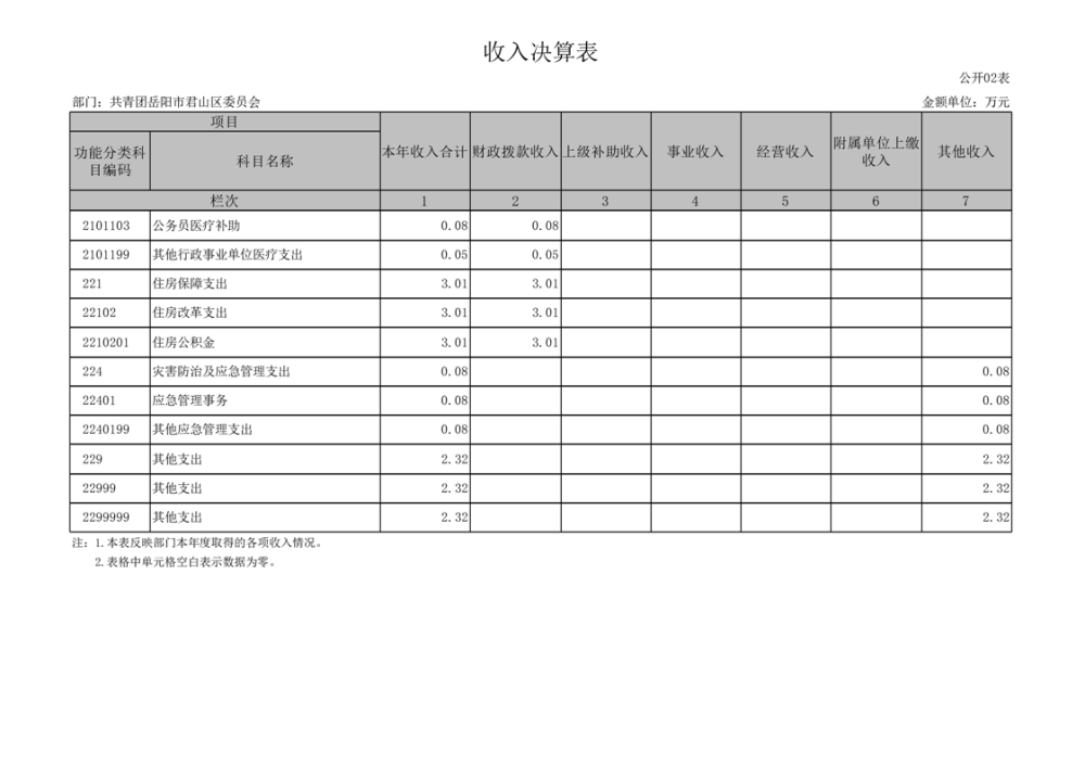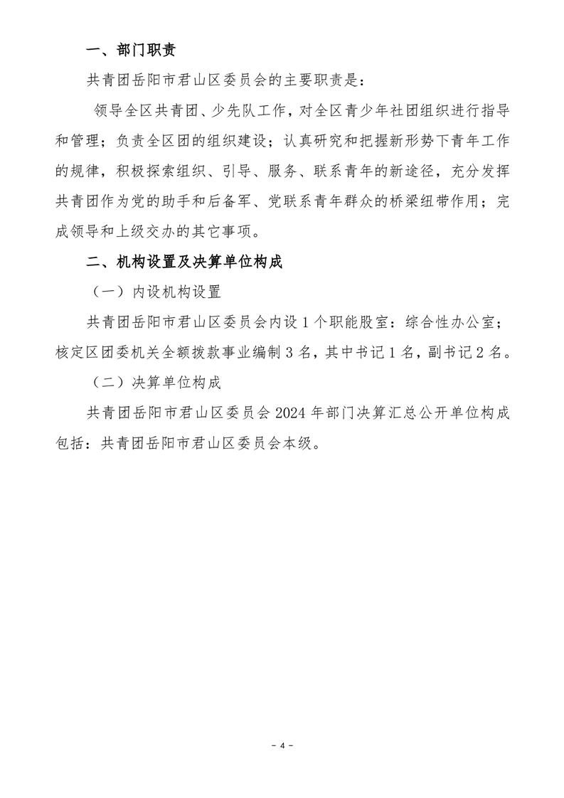 2024年度共青团岳阳市君山区委员会部门决算公开
