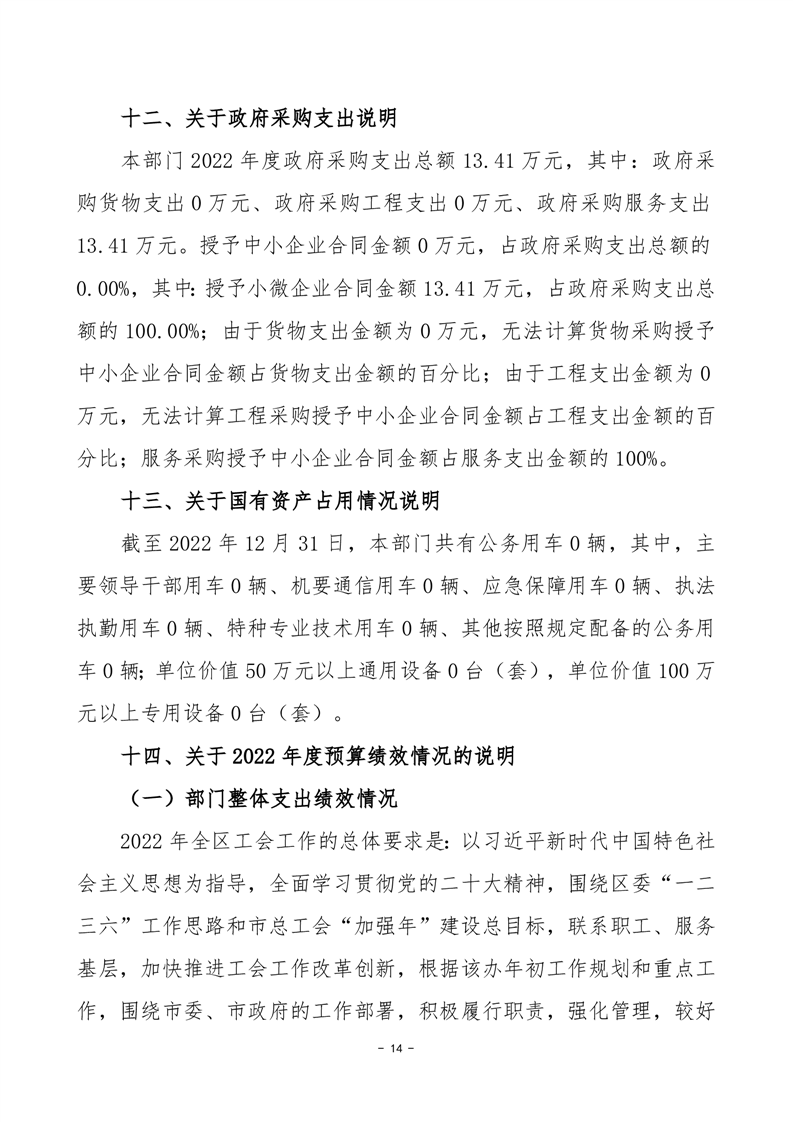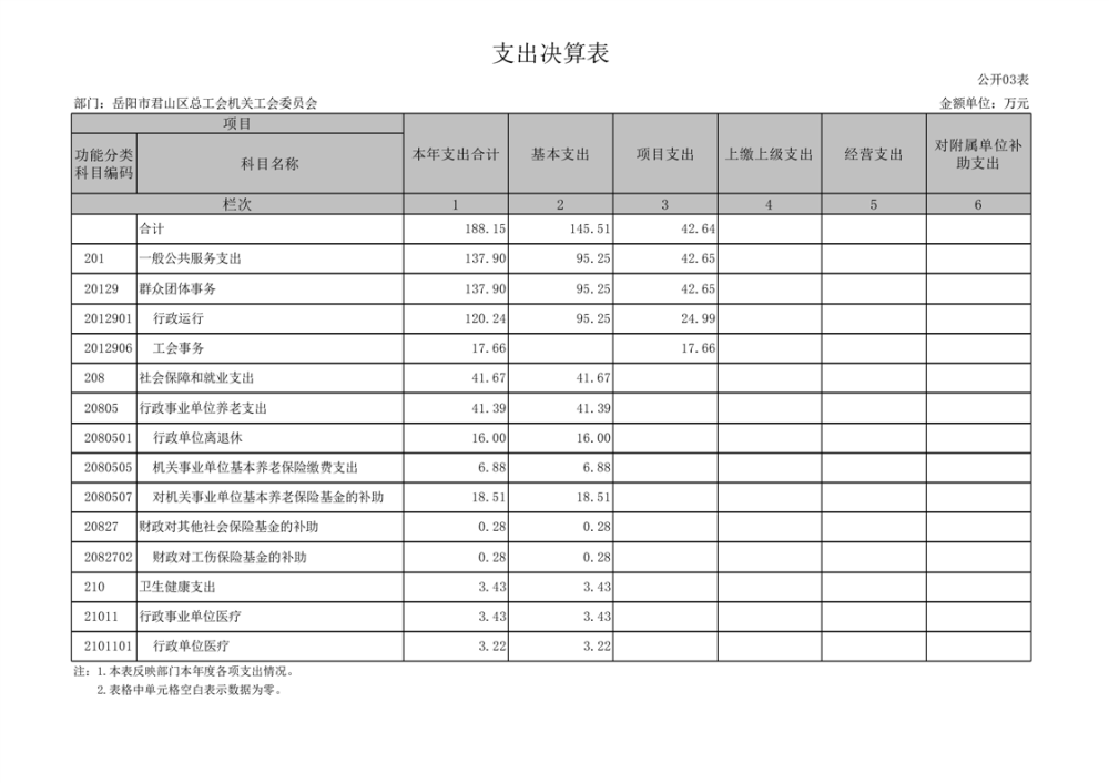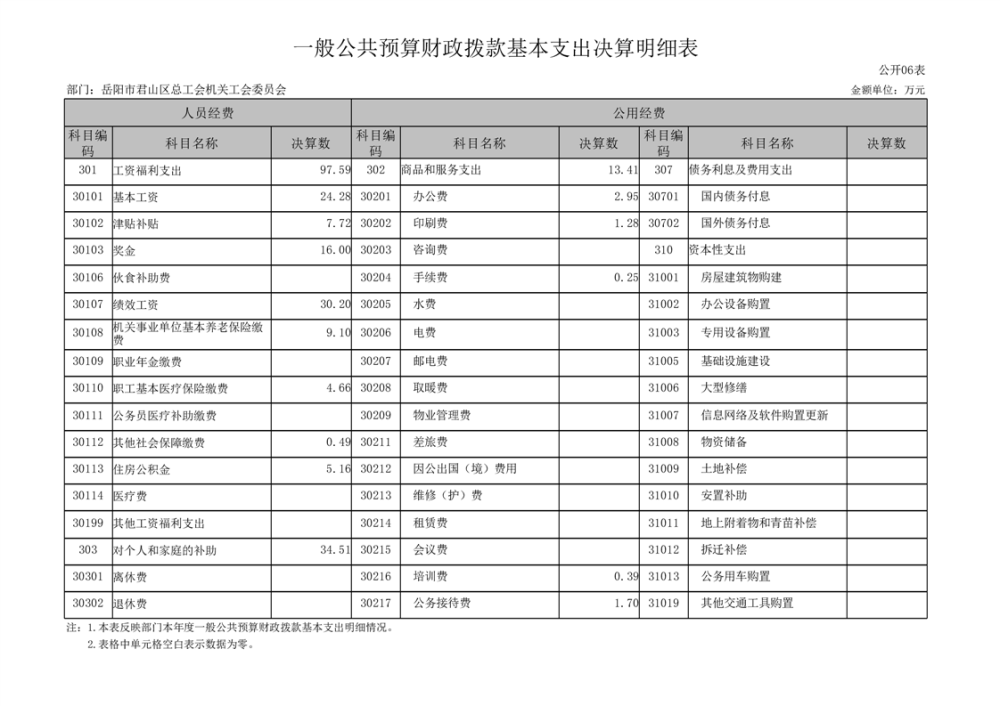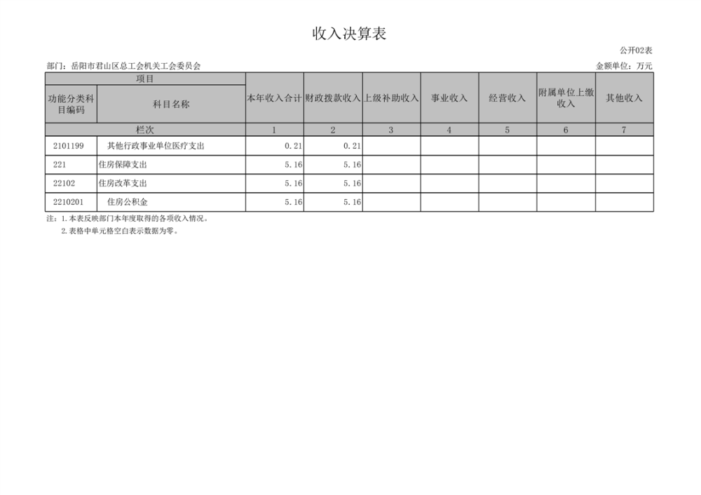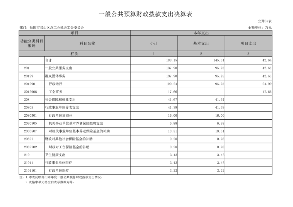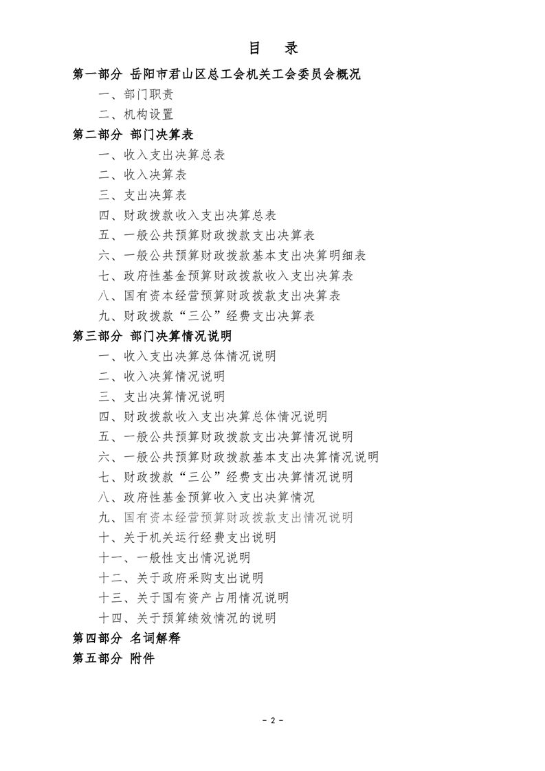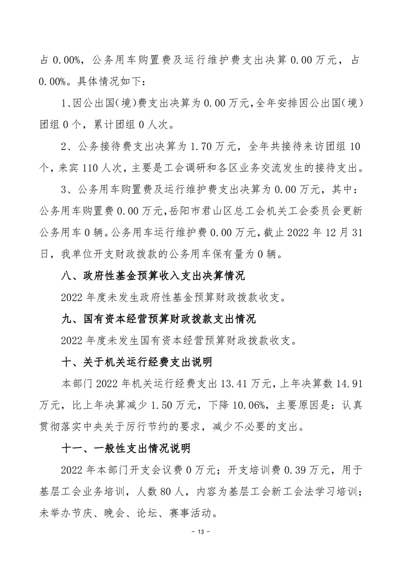 2022年度岳阳市君山区总工会机关工会委员会部门决算公开说明