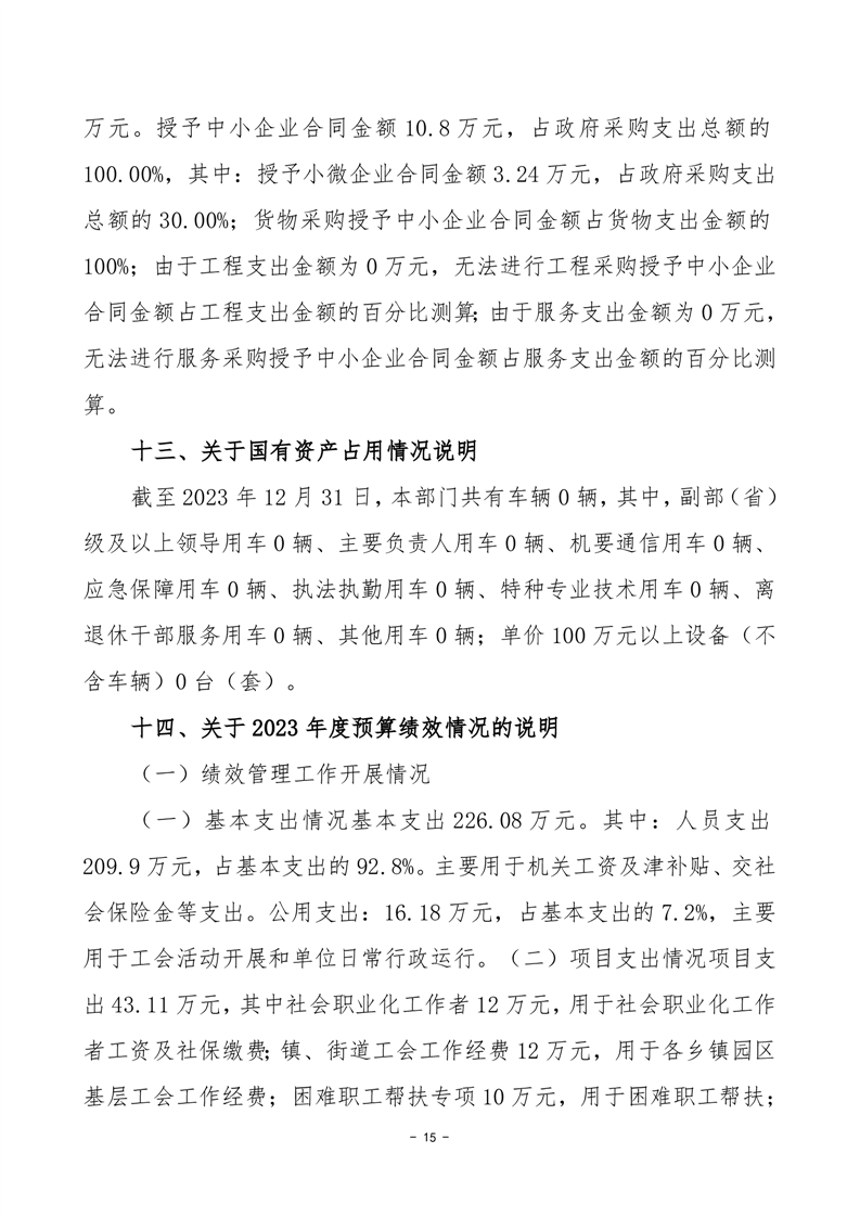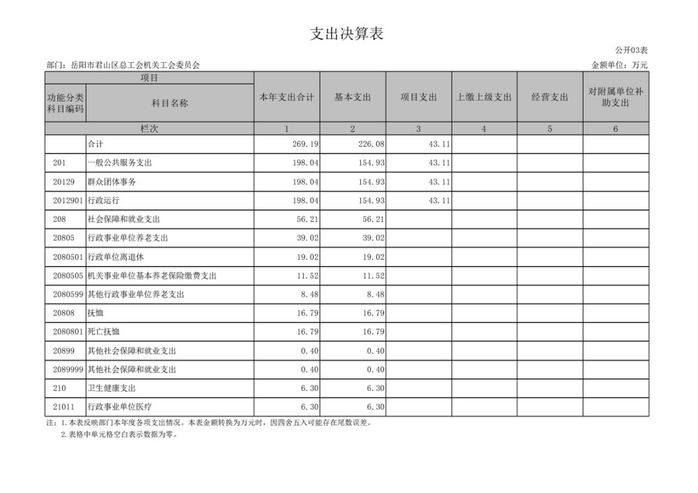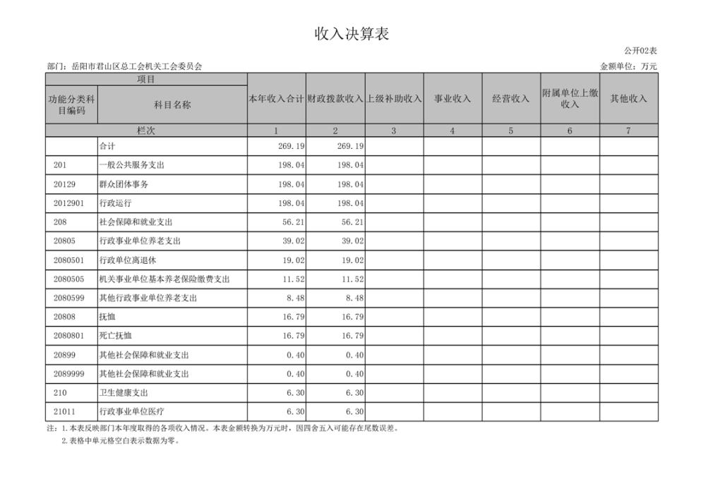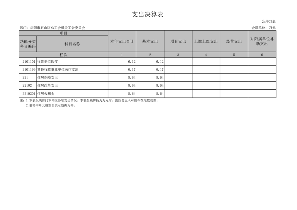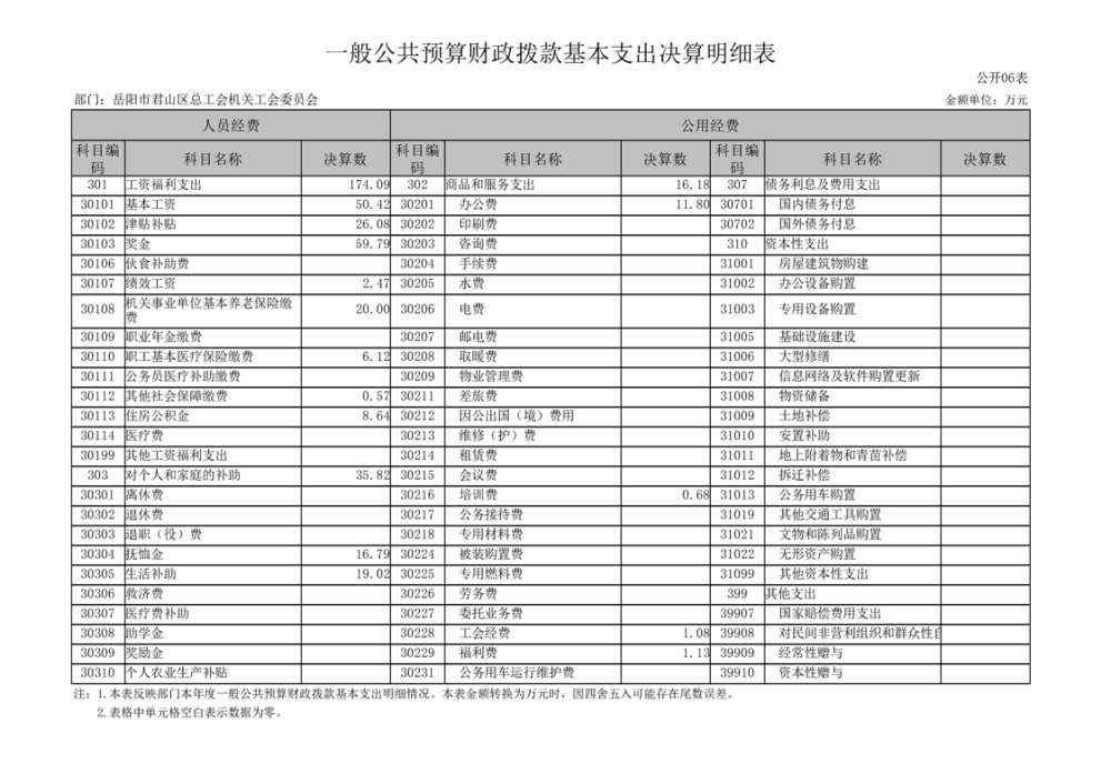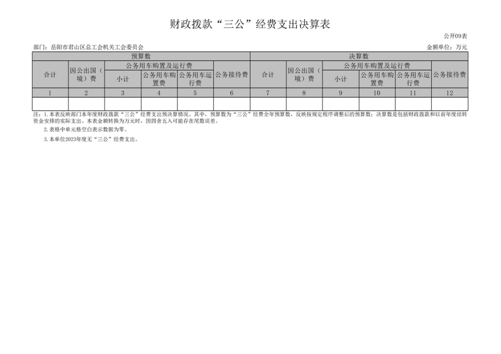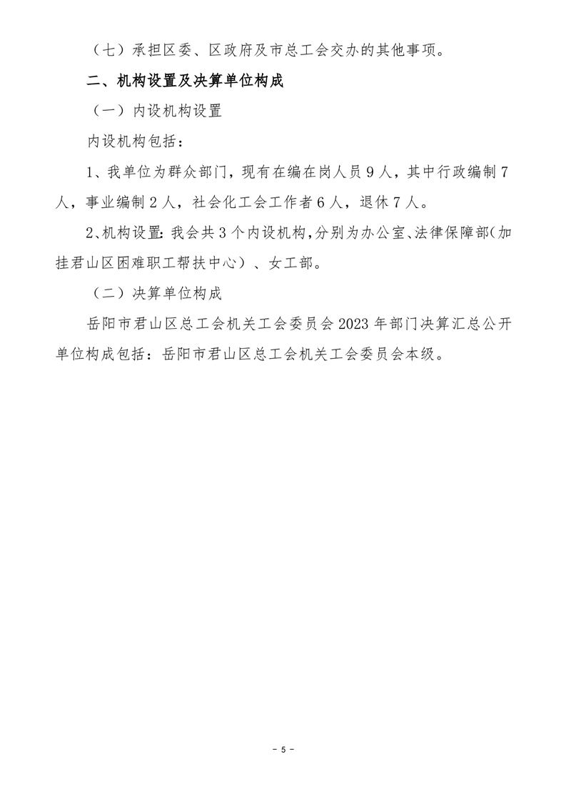 2023年度岳阳市君山区总工会机关工会委员会部门决算公开