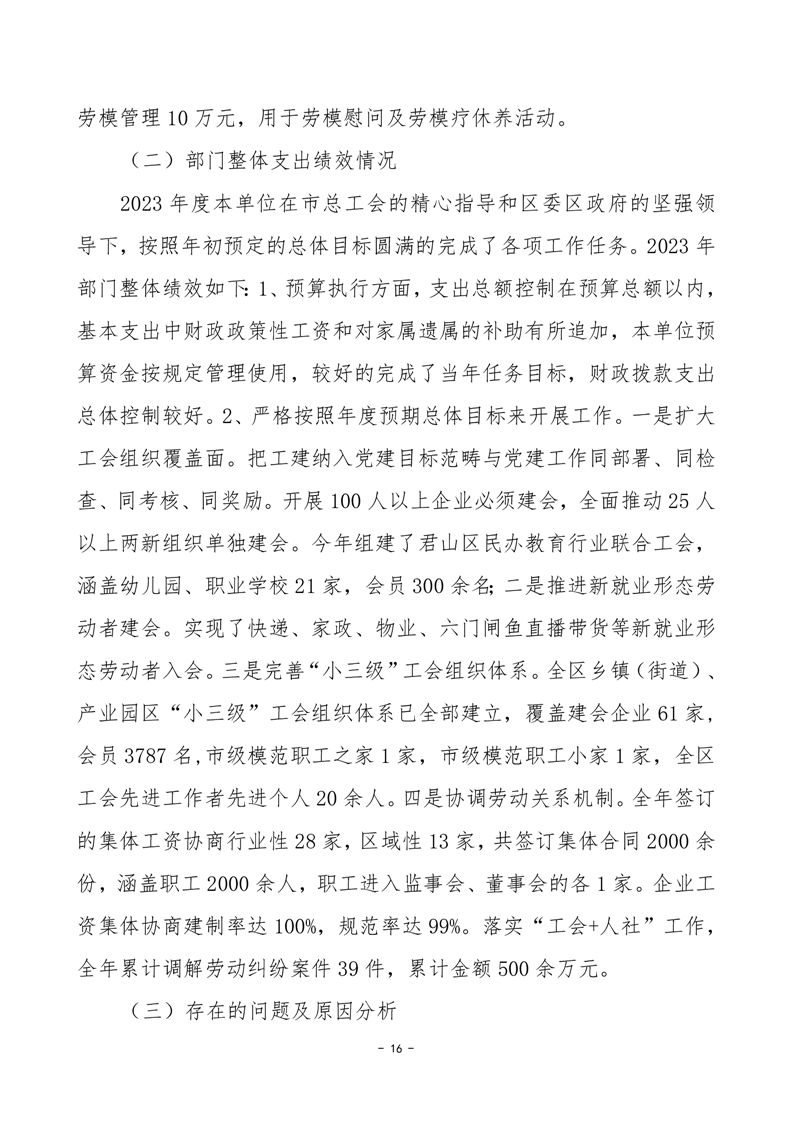 2023年君山区总工会机关工会委员会绩效自评报告.docx