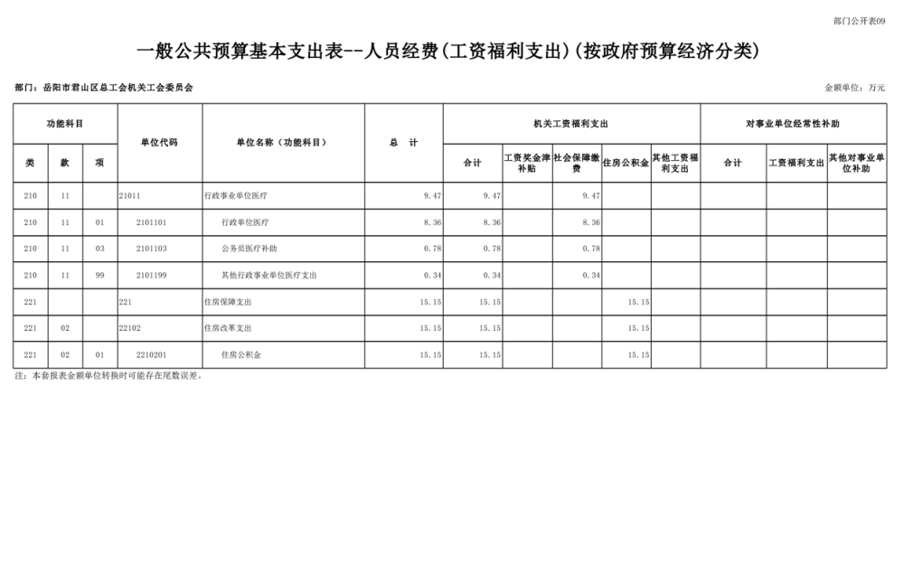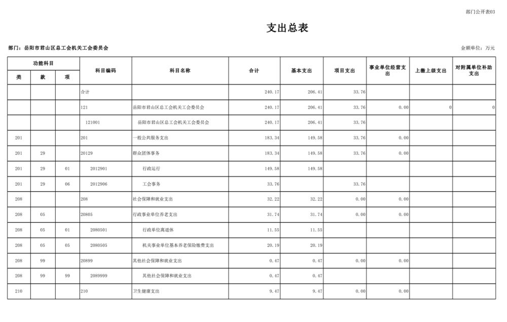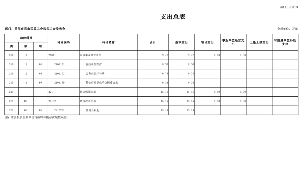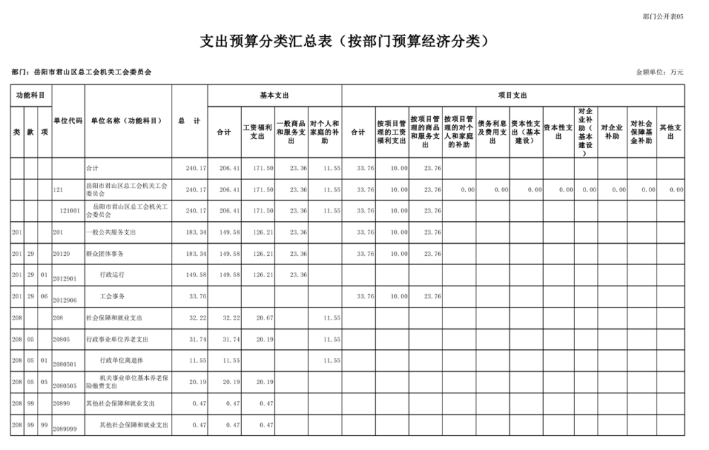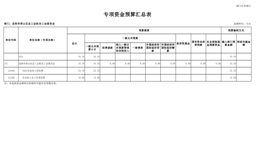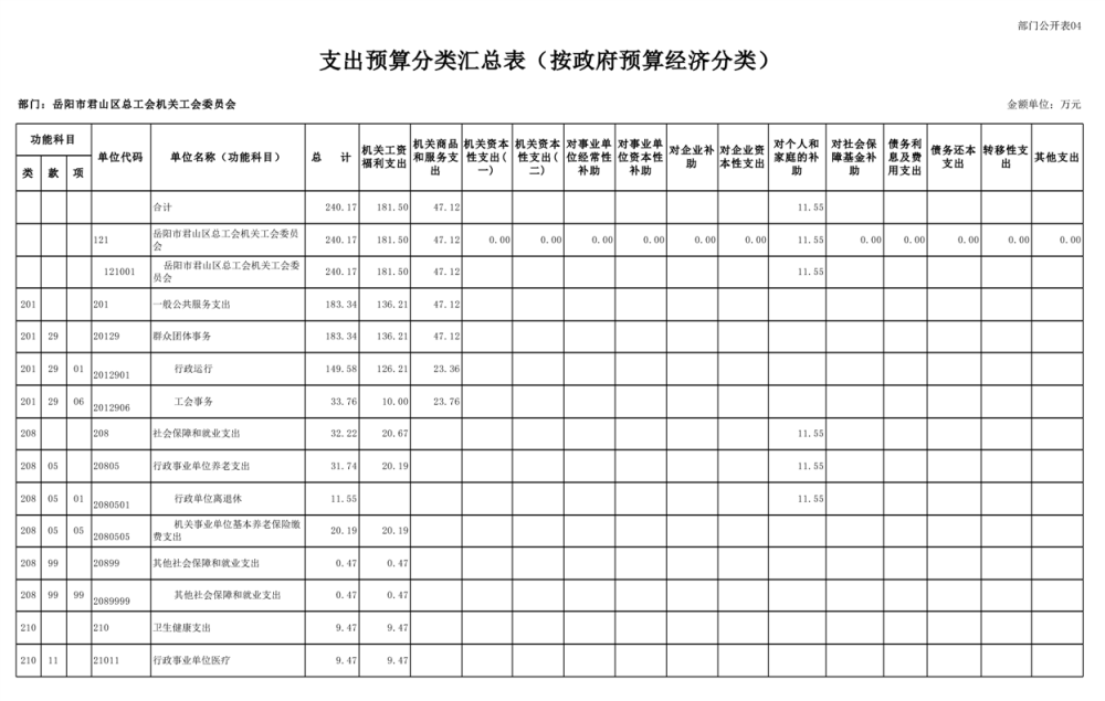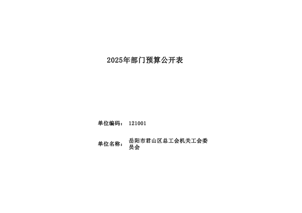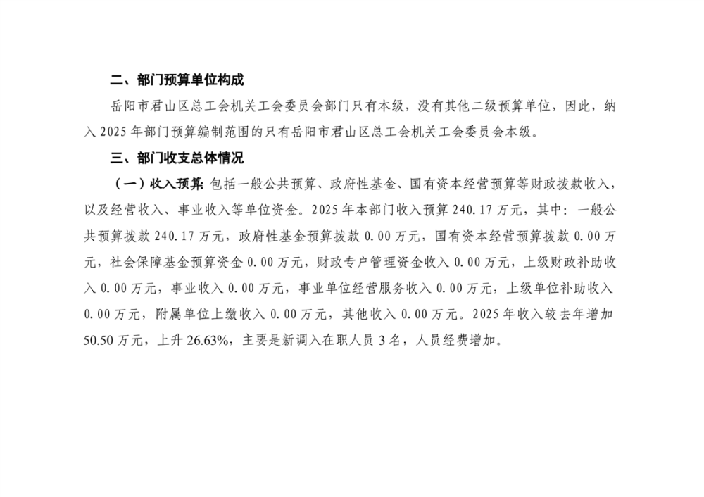2025年岳阳市君山区总工会机关工会委员会部门预算公开