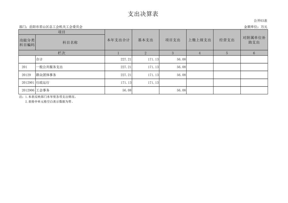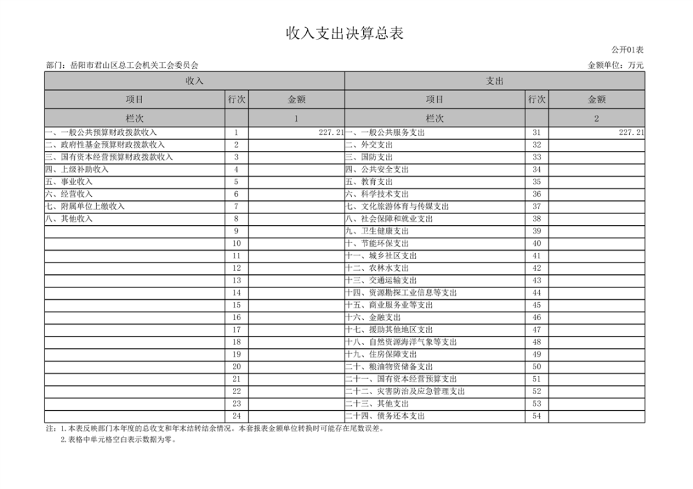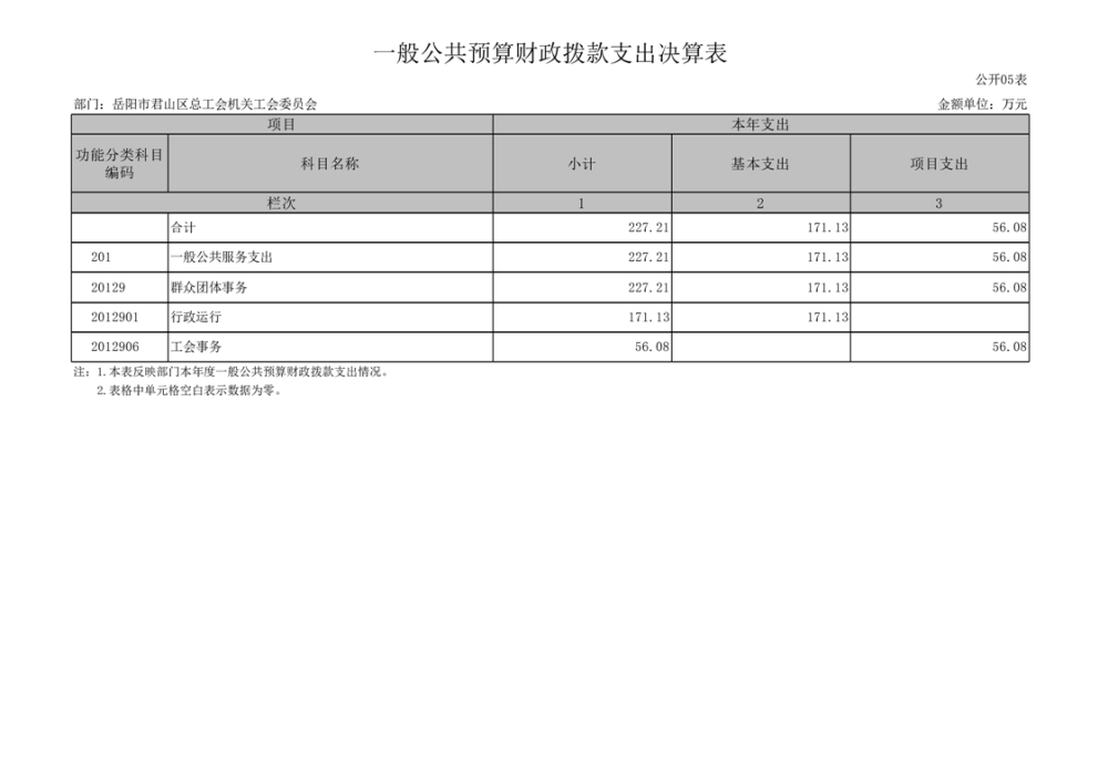 2024年度岳阳市君山区总工会机关工会委员会部门决算公开