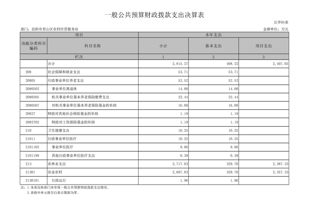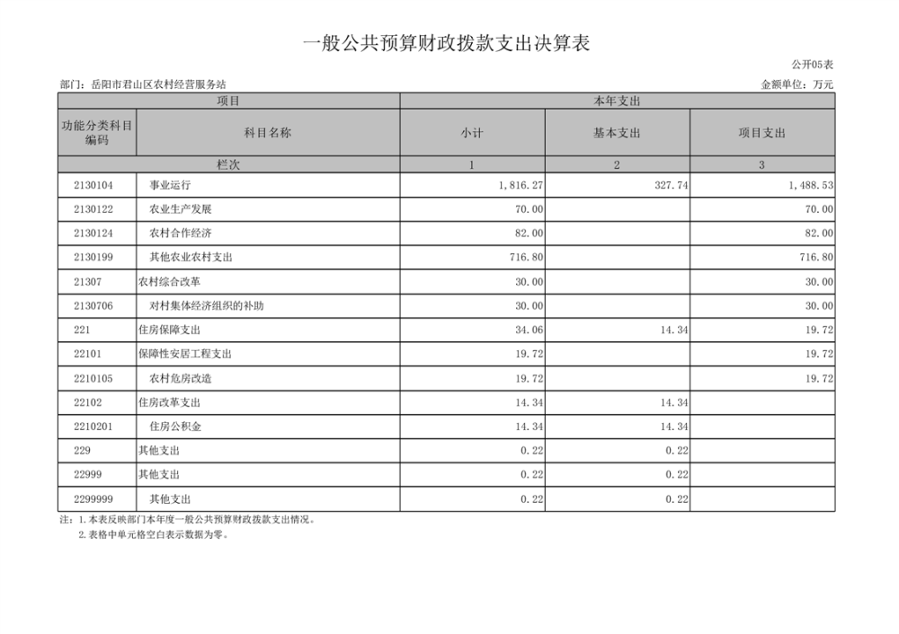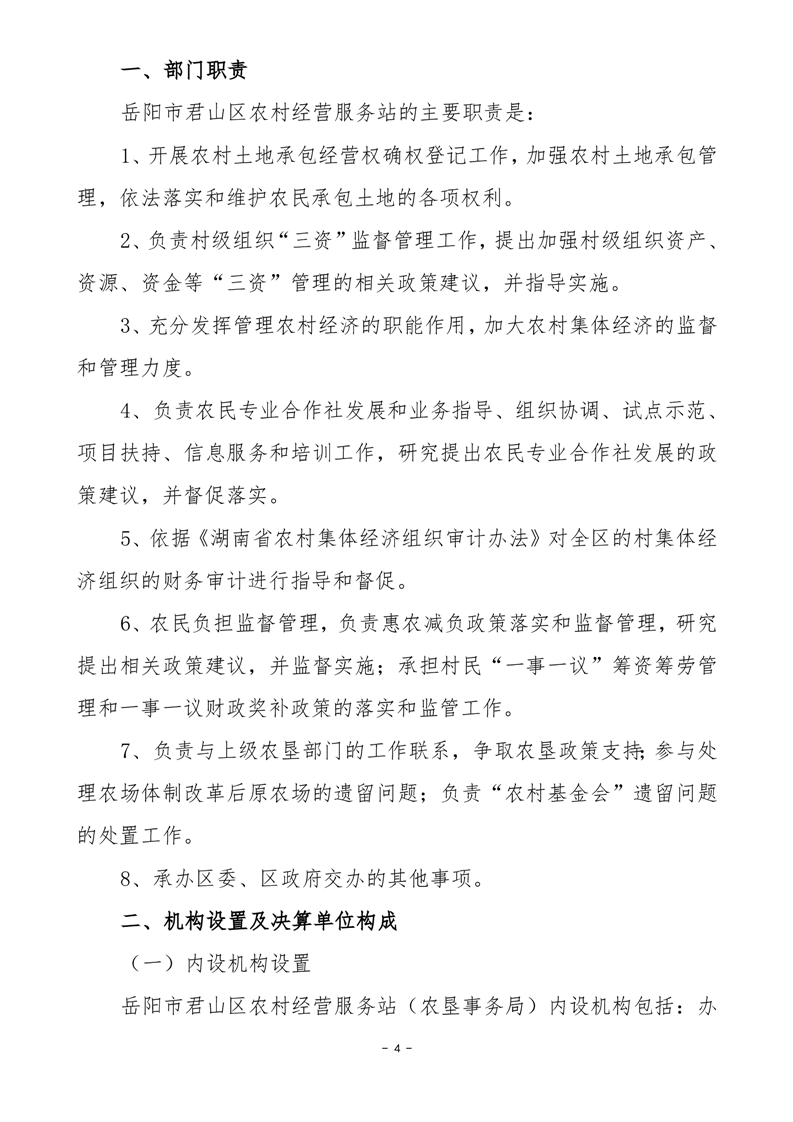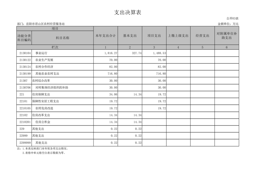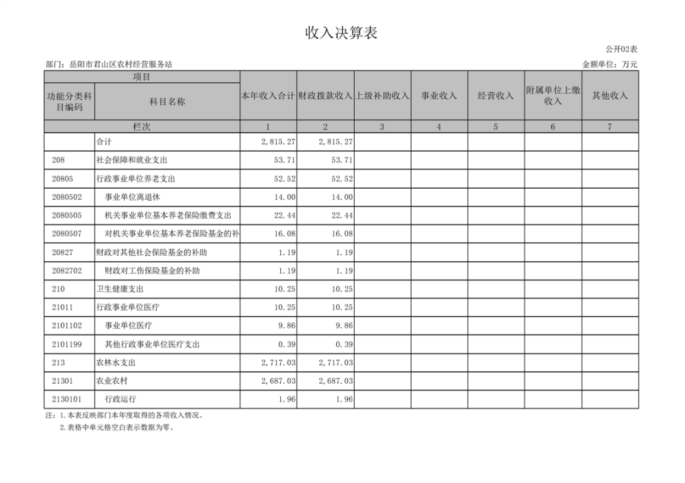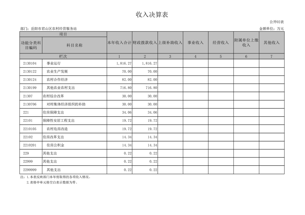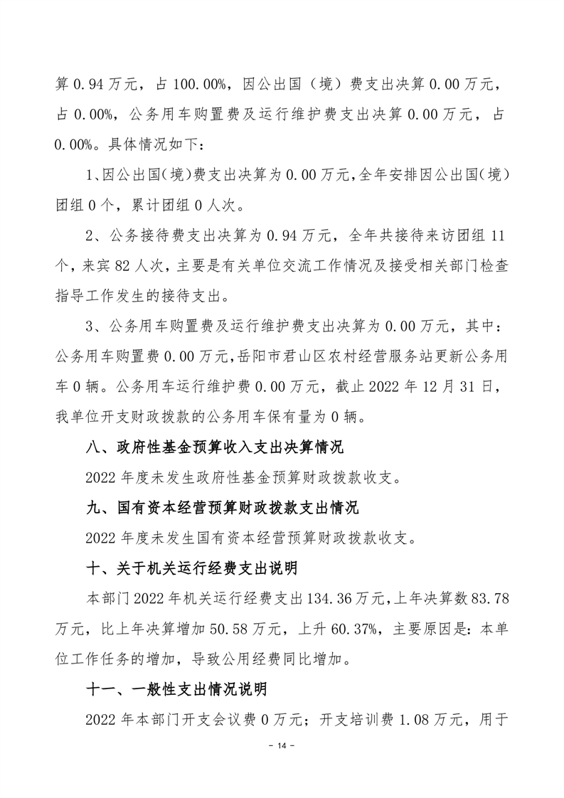 2022年度岳阳市君山区农村经营服务站部门决算公开说明