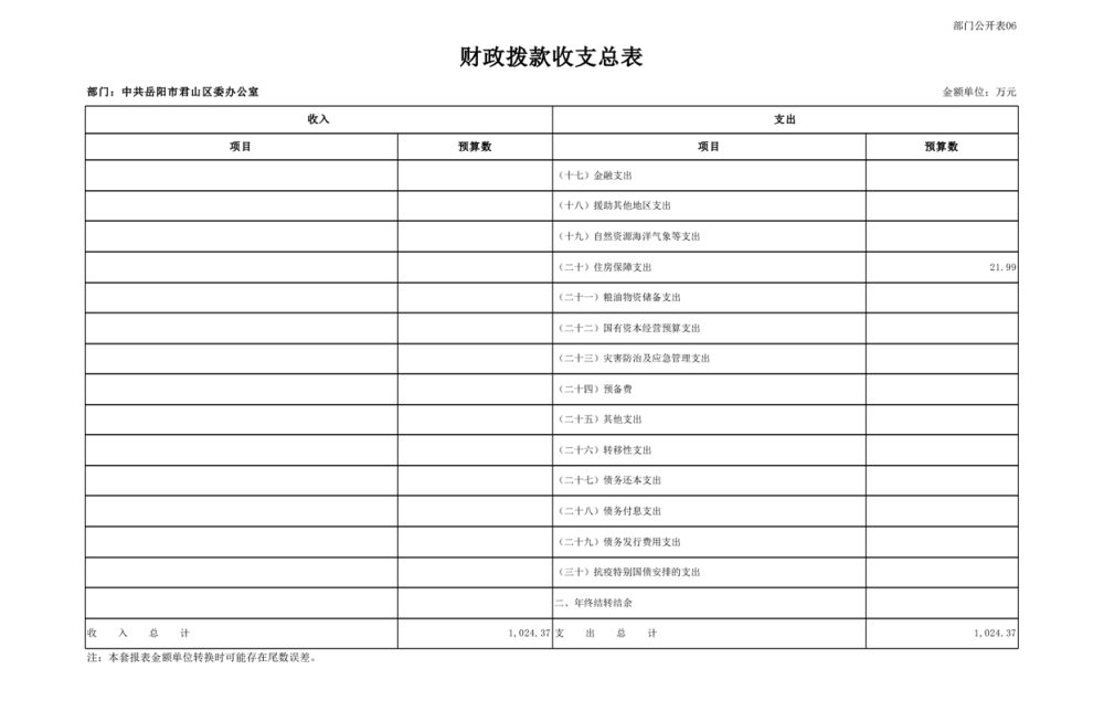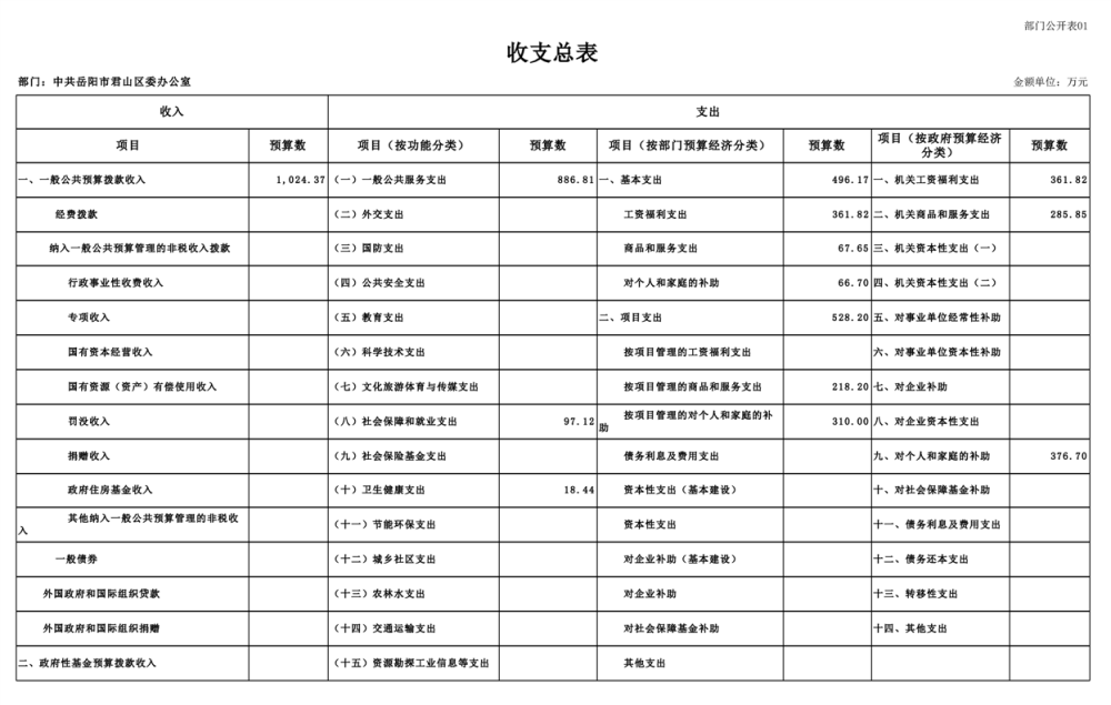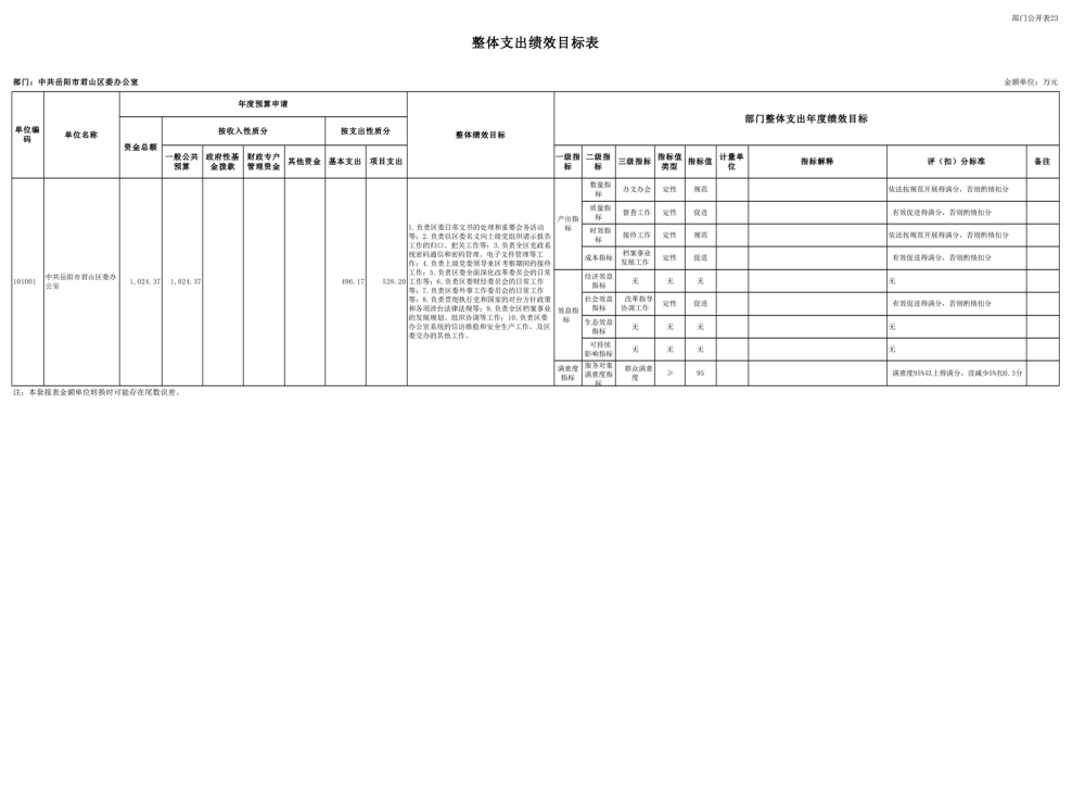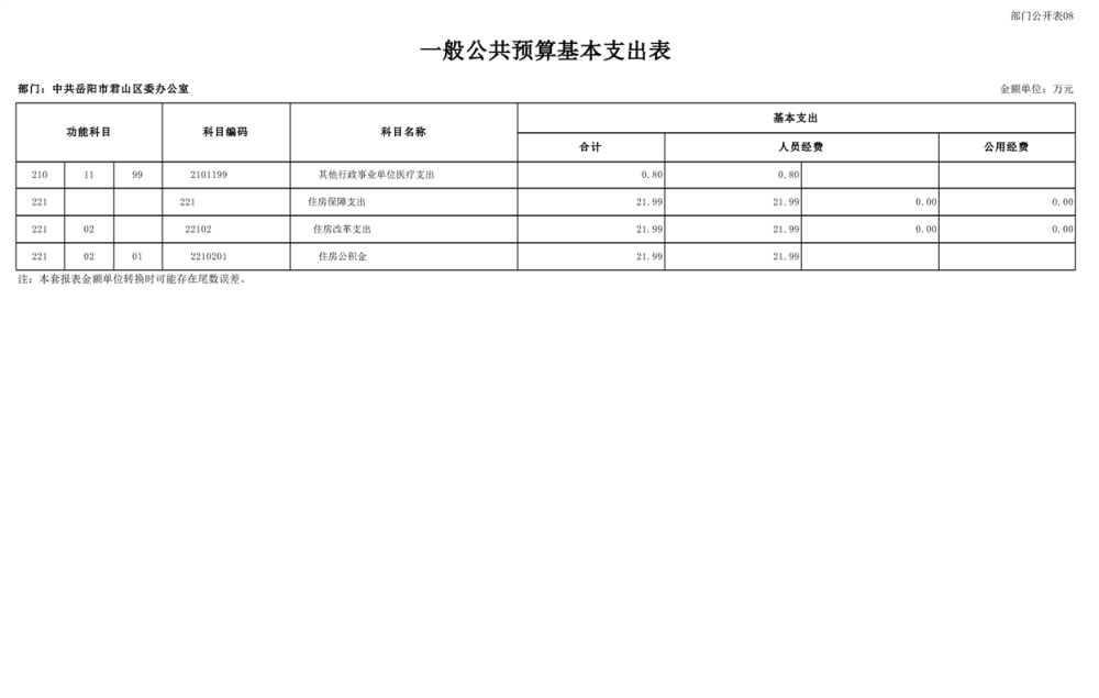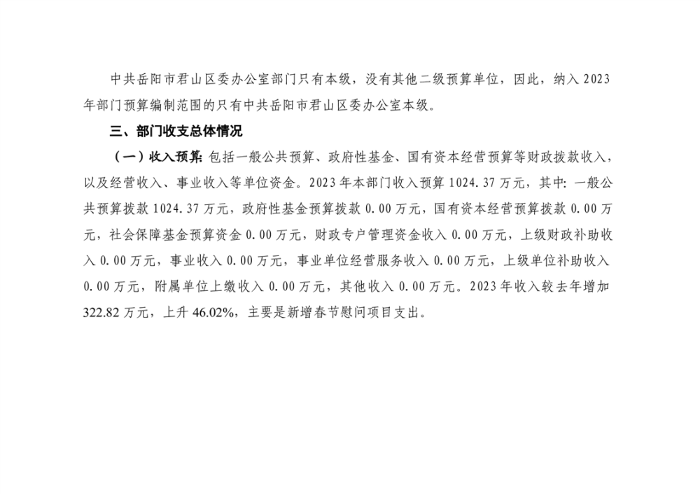 2023年中共岳阳市君山区委办公室(本级)预算公开说明