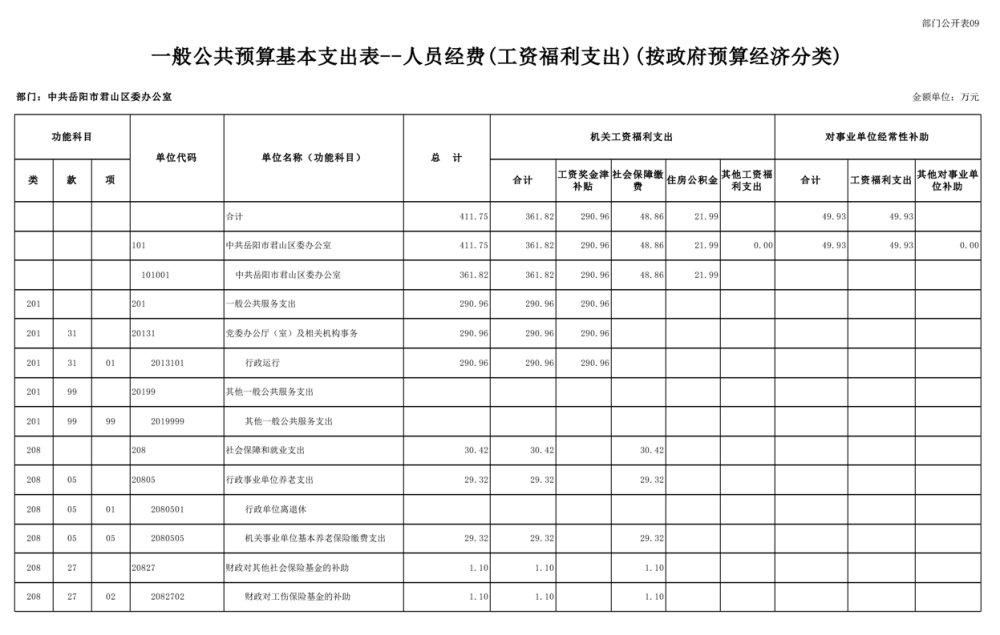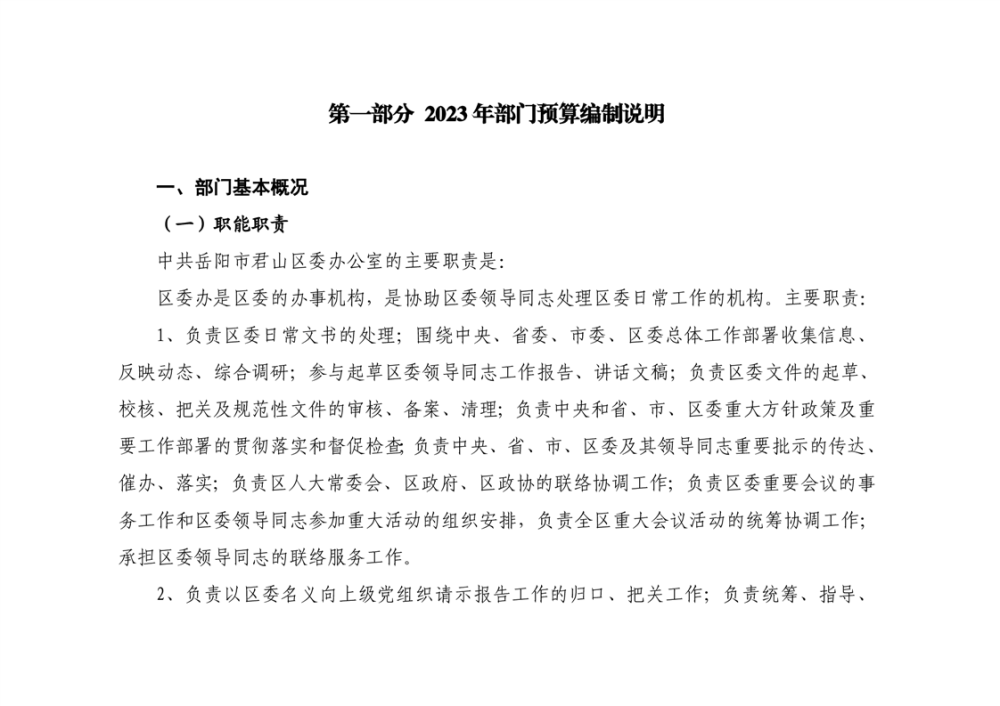 2023年中共岳阳市君山区委办公室(汇总)部门预算公开