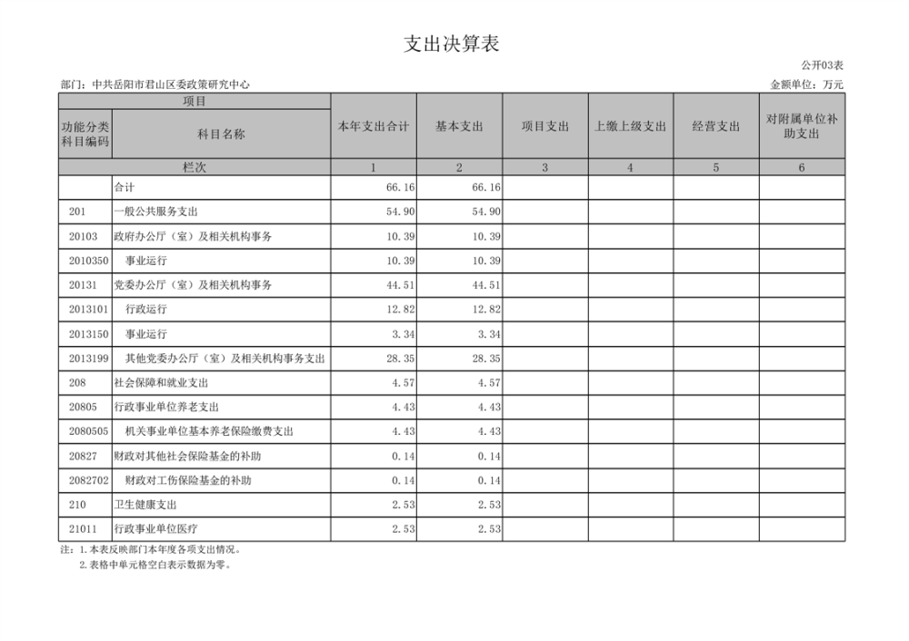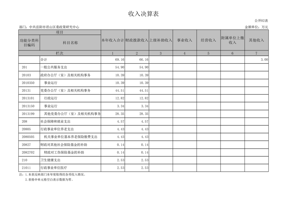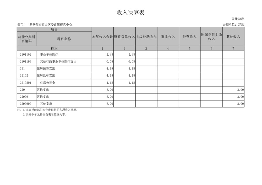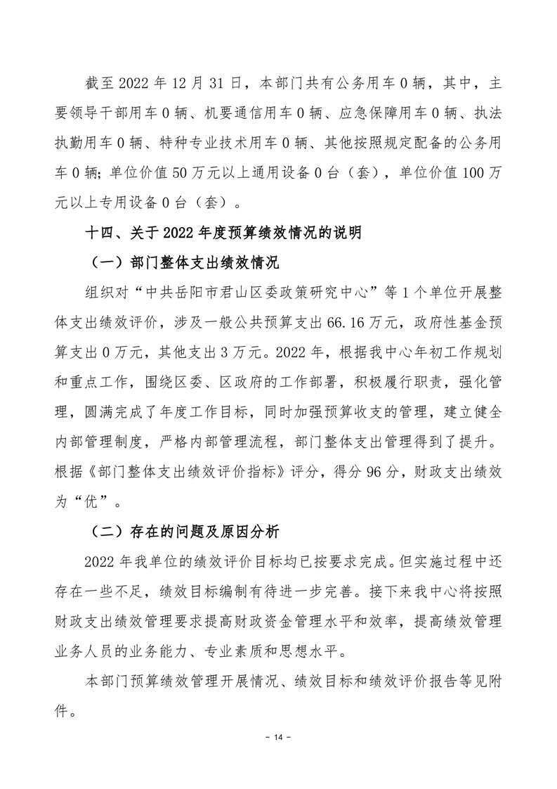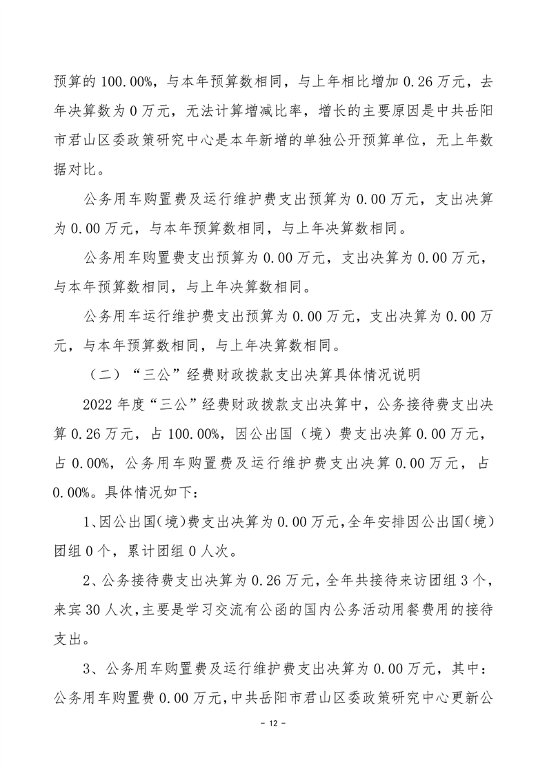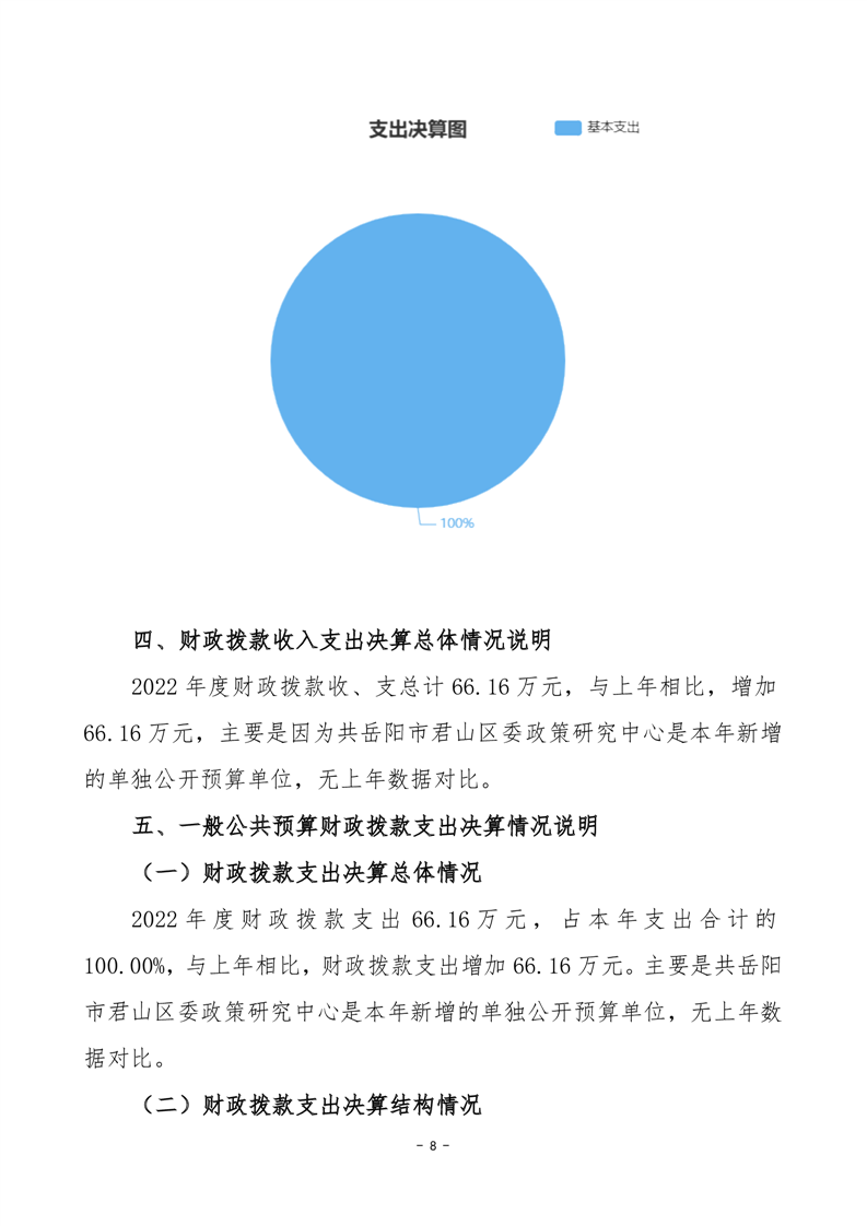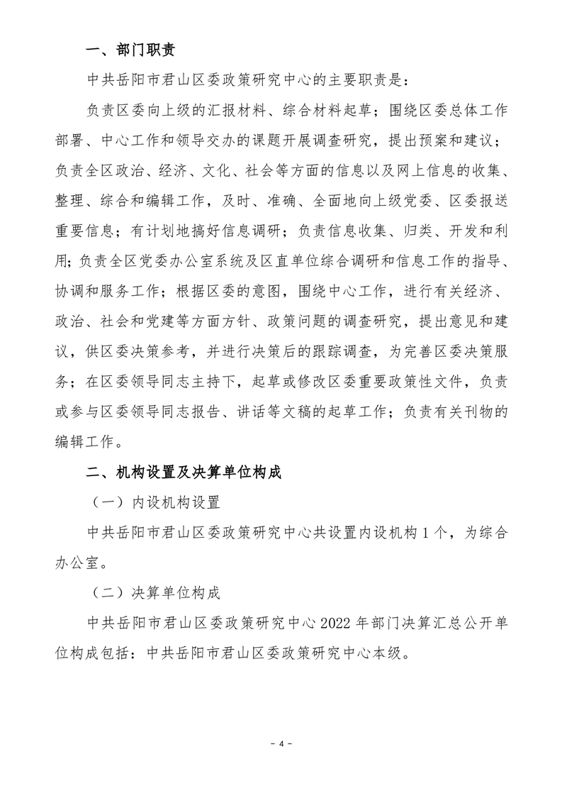 2022年度中共岳阳市君山区委政策研究中心部门决算公开说明