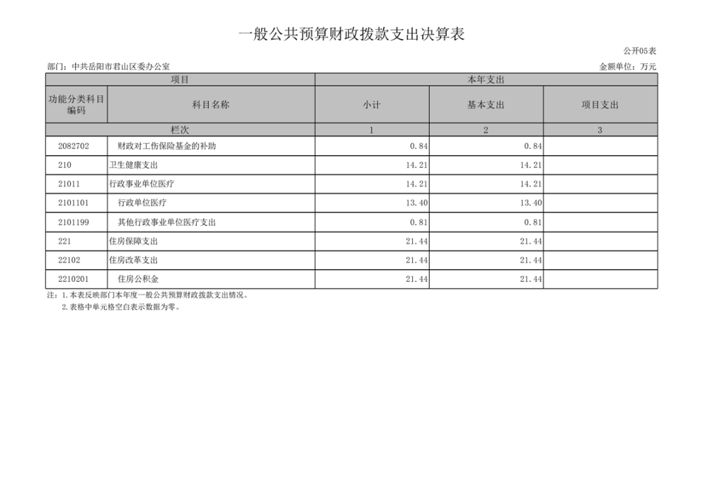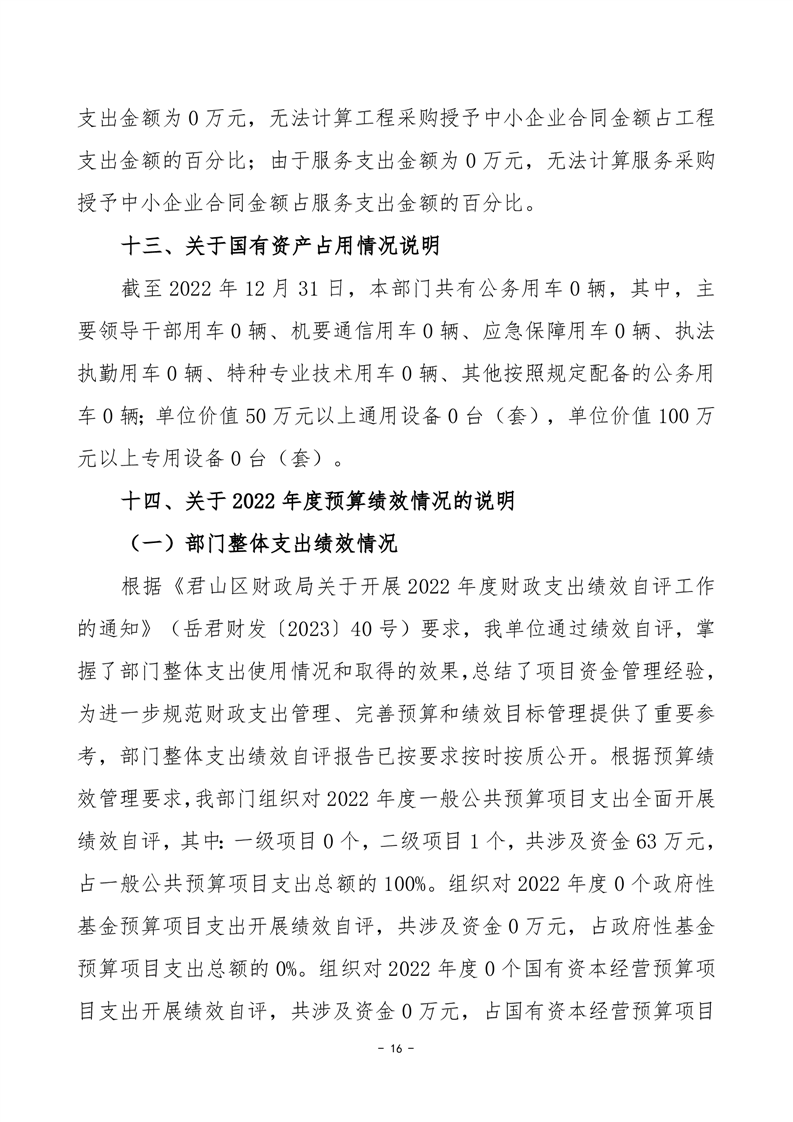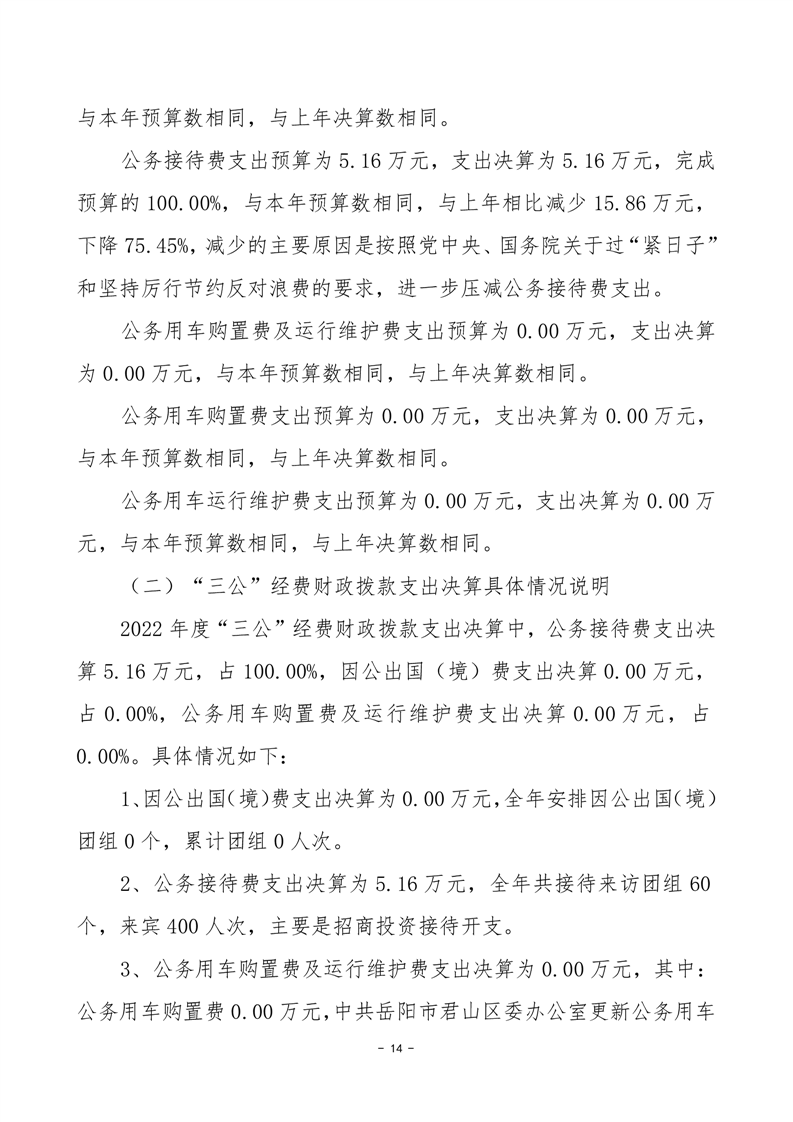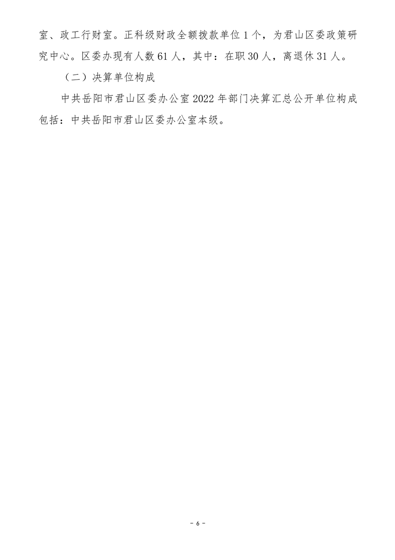 2022年度中共岳阳市君山区委办公室(本级)部门决算公开说明