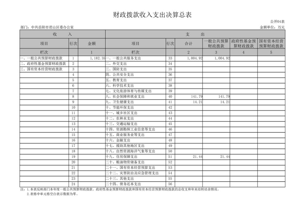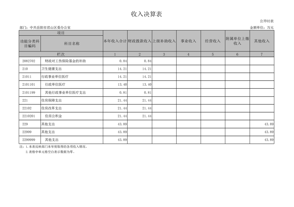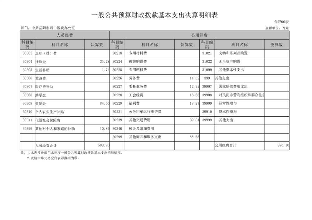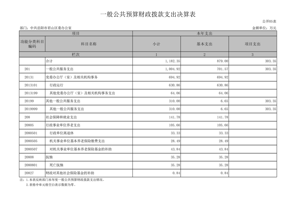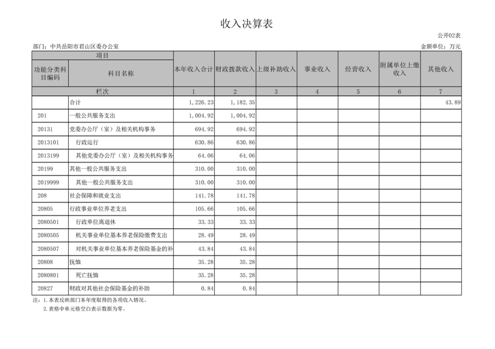 2022年度中共岳阳市君山区委办公室(本级)部门决算公开说明
