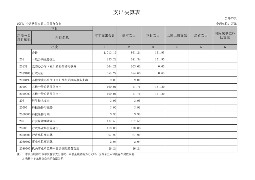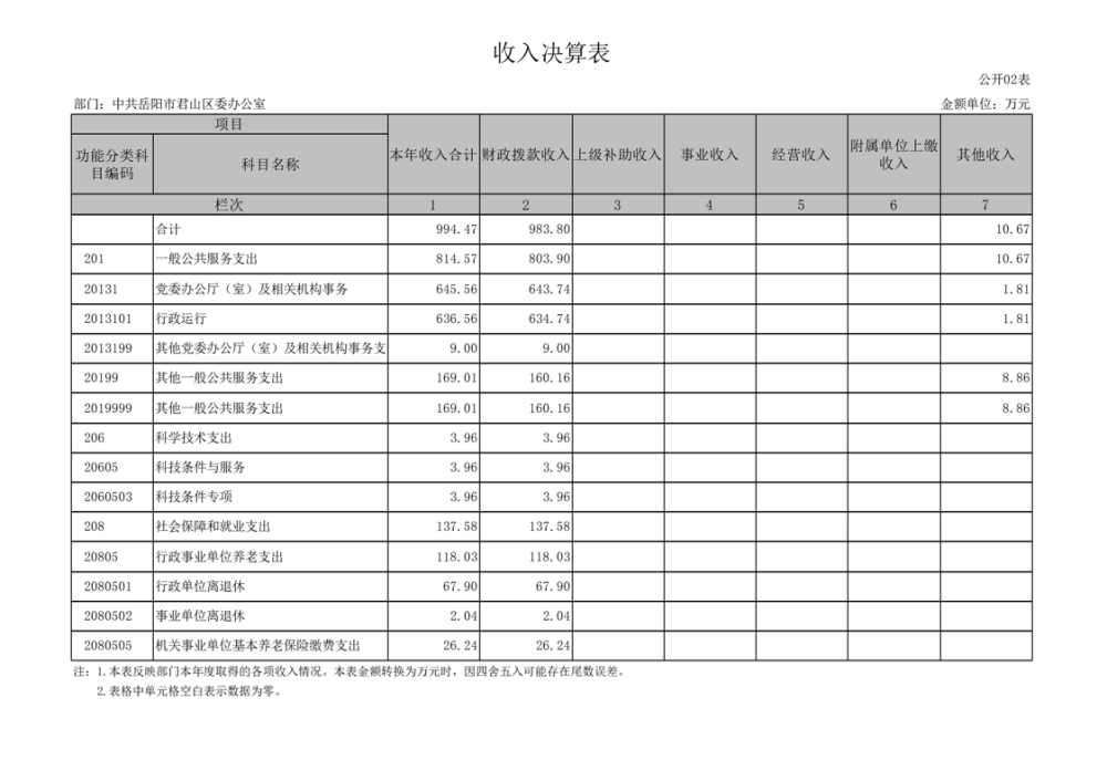 2023年度中共岳阳市君山区委办公室(本级)部门决算公开