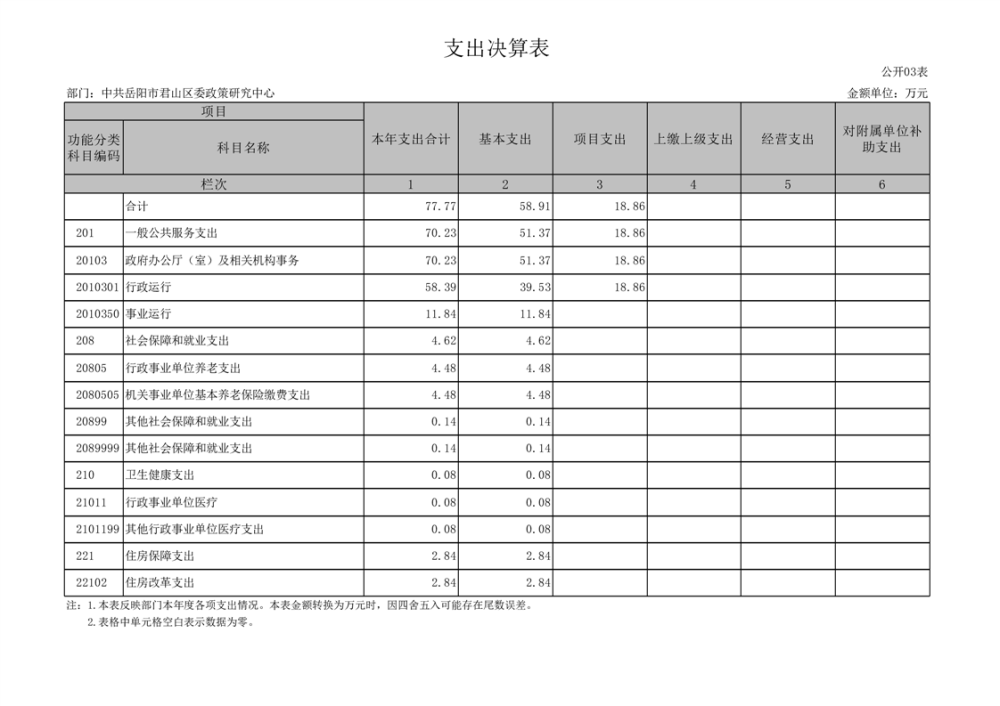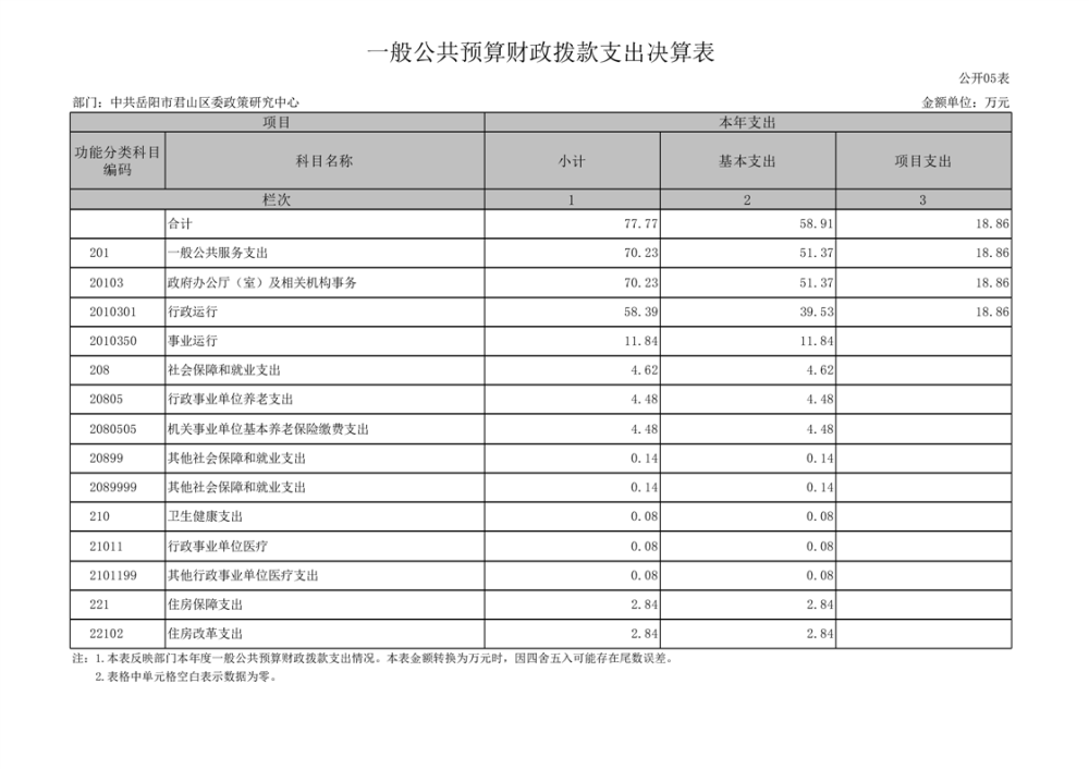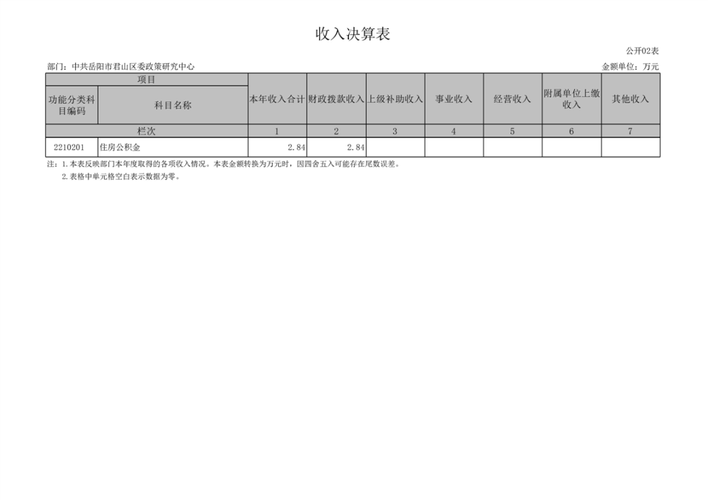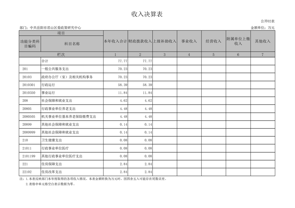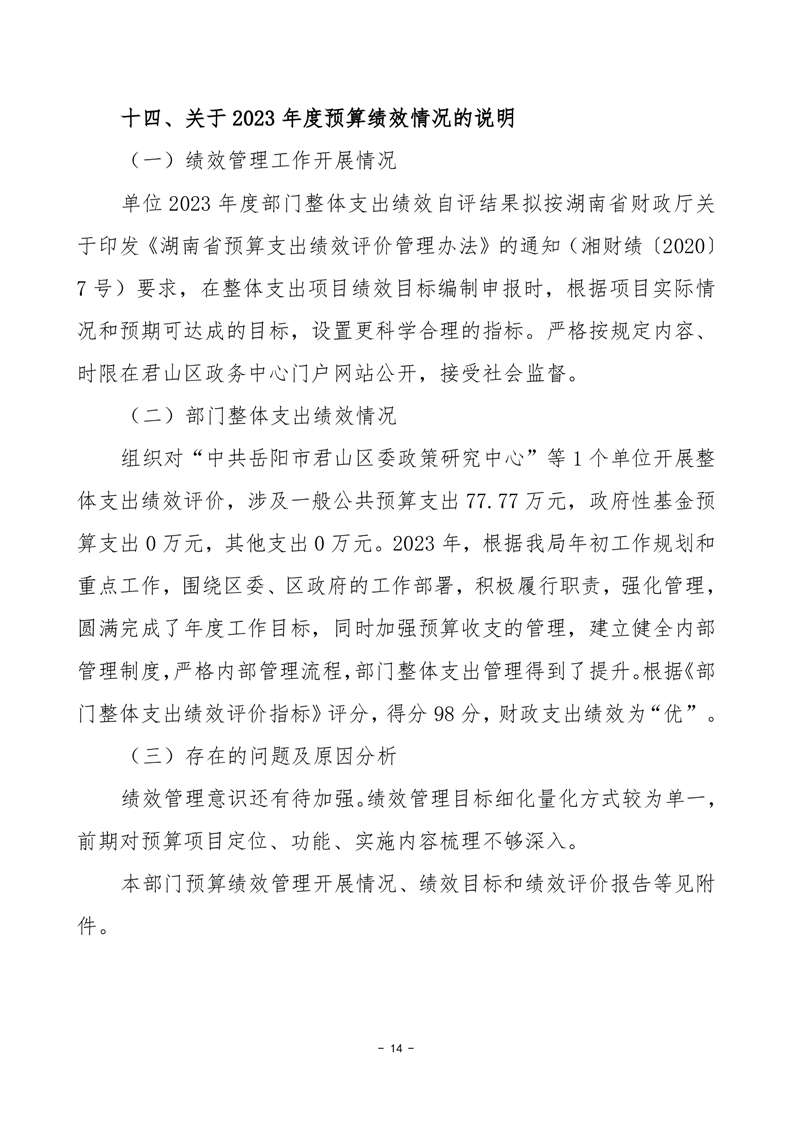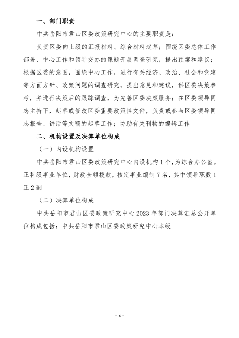 2023年度中共岳阳市君山区委政策研究中心部门决算公开