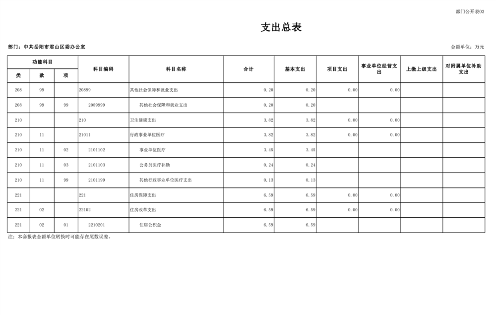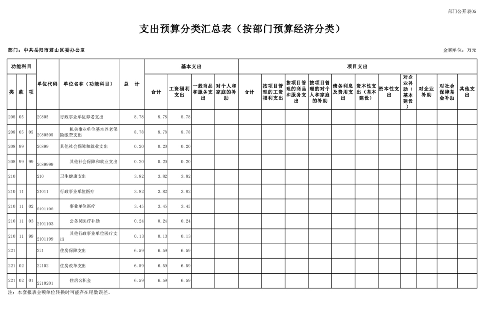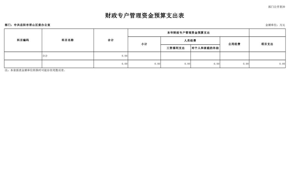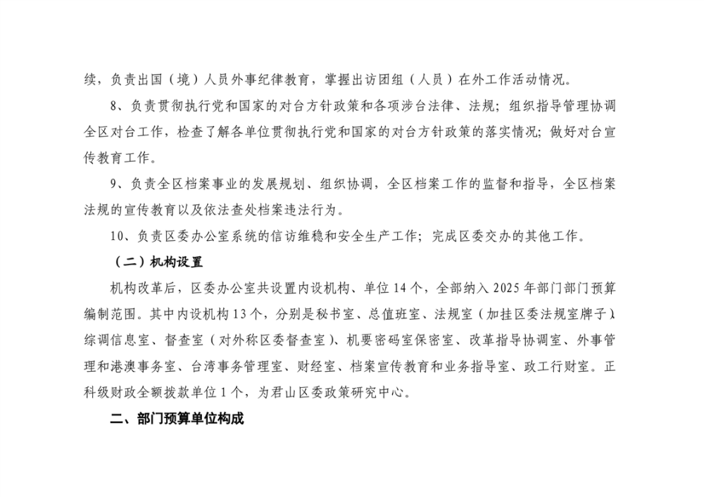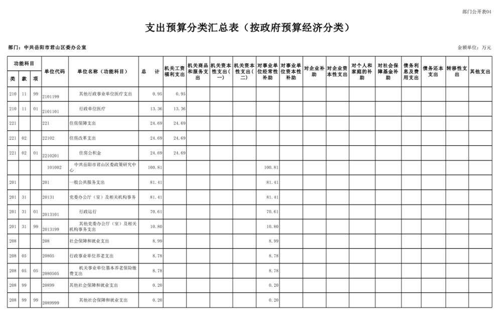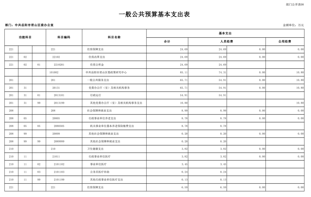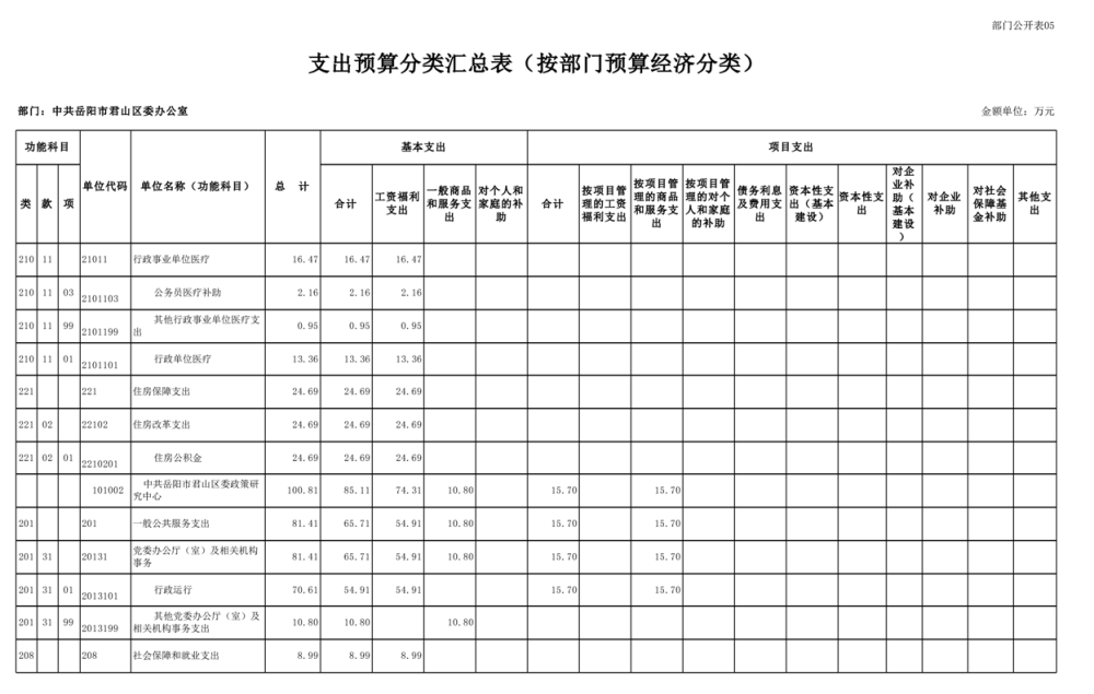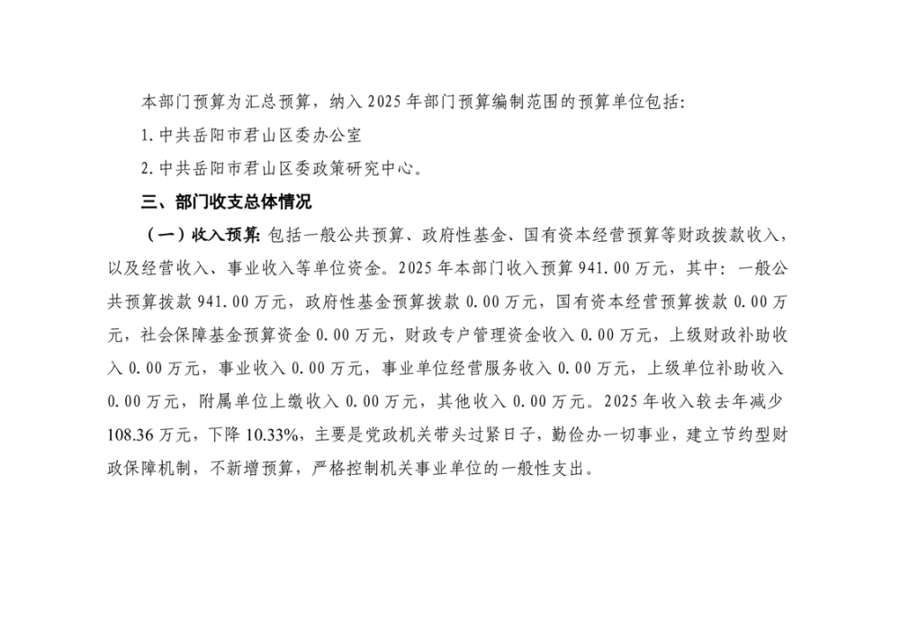 2025年中共岳阳市君山区委办公室(部门)预算公开