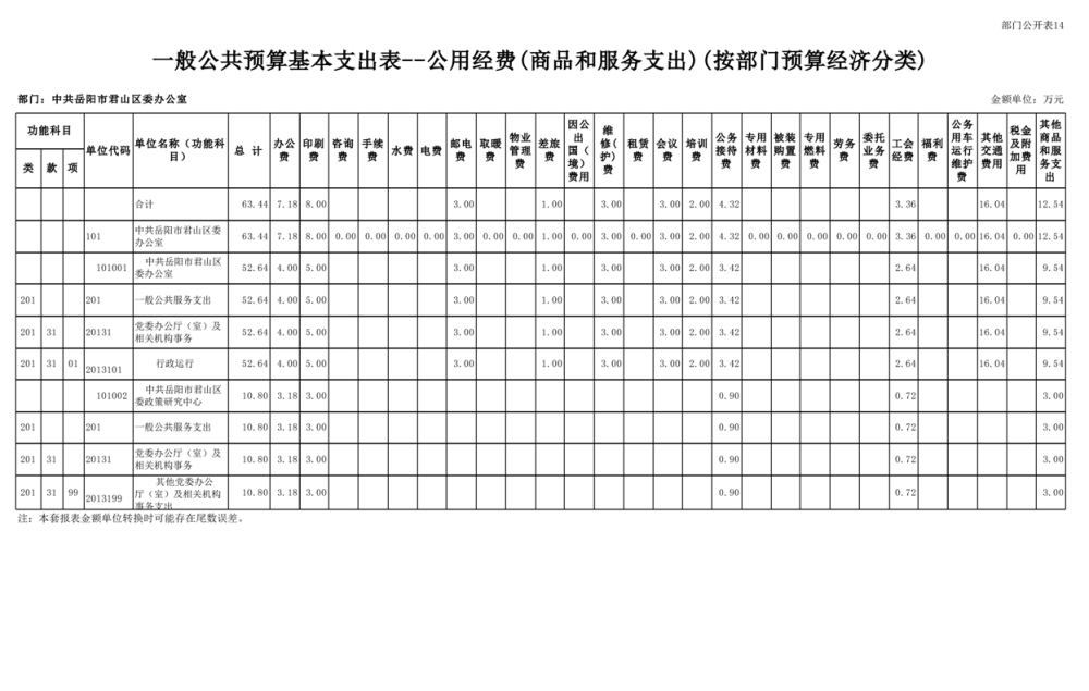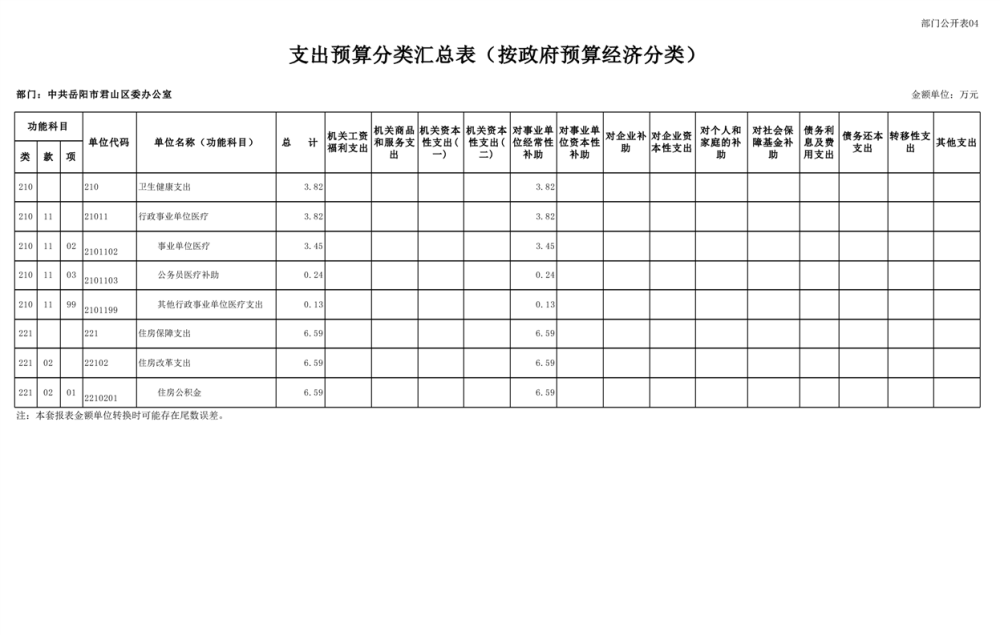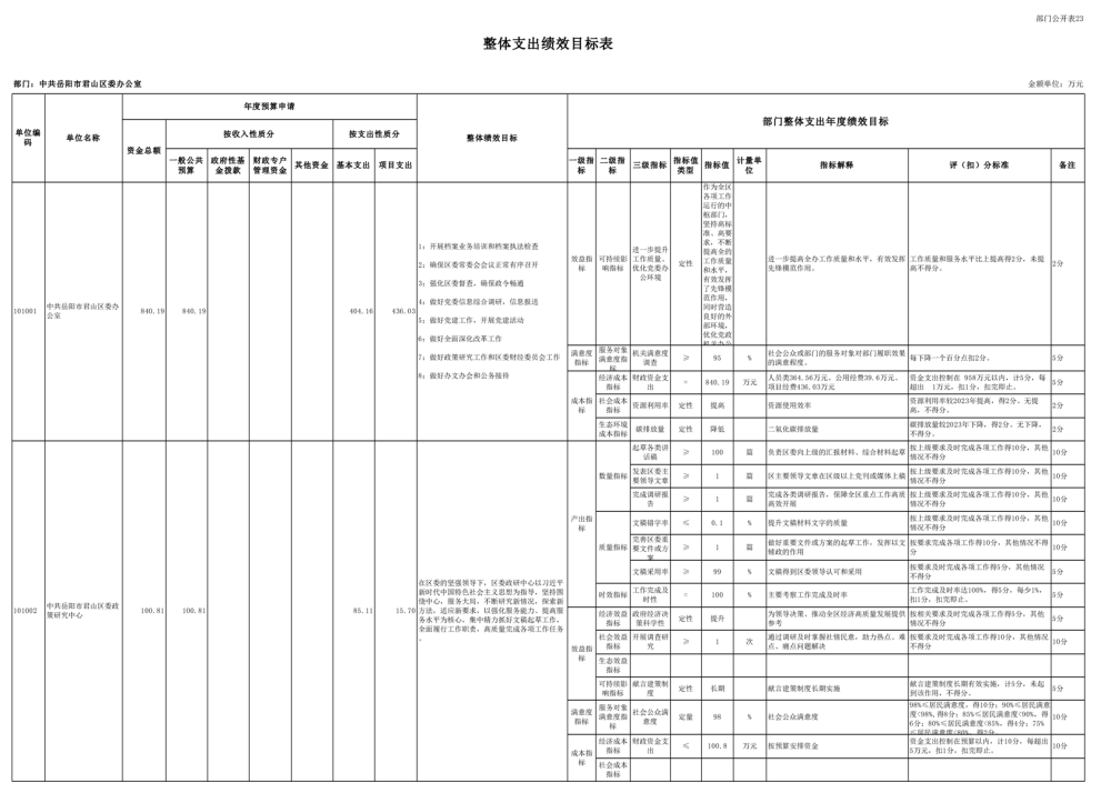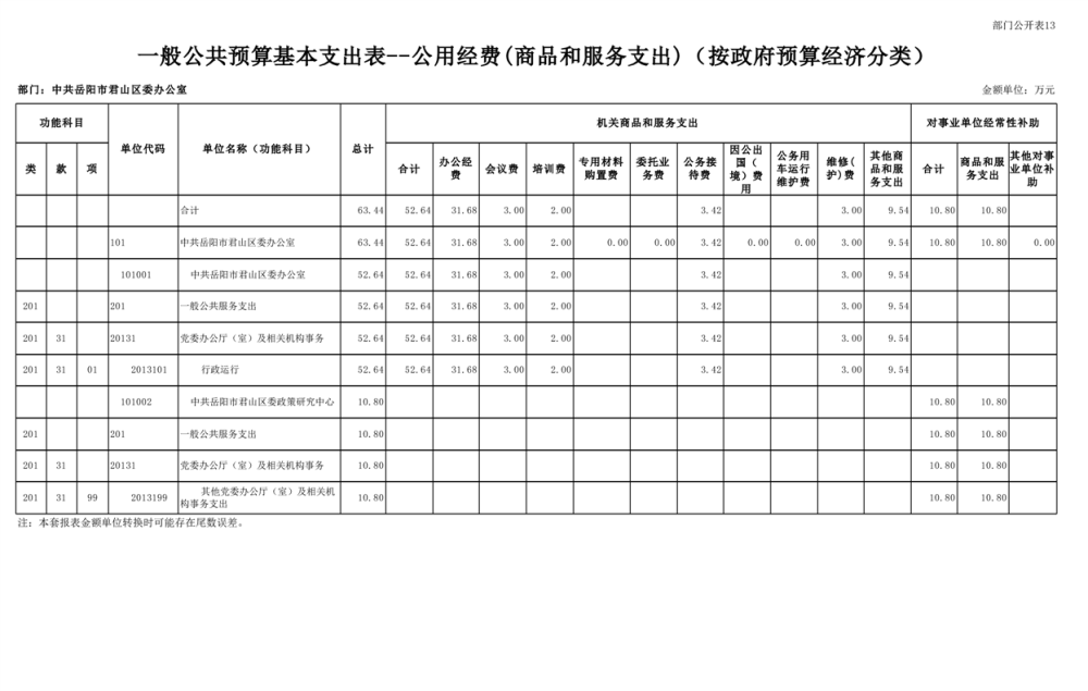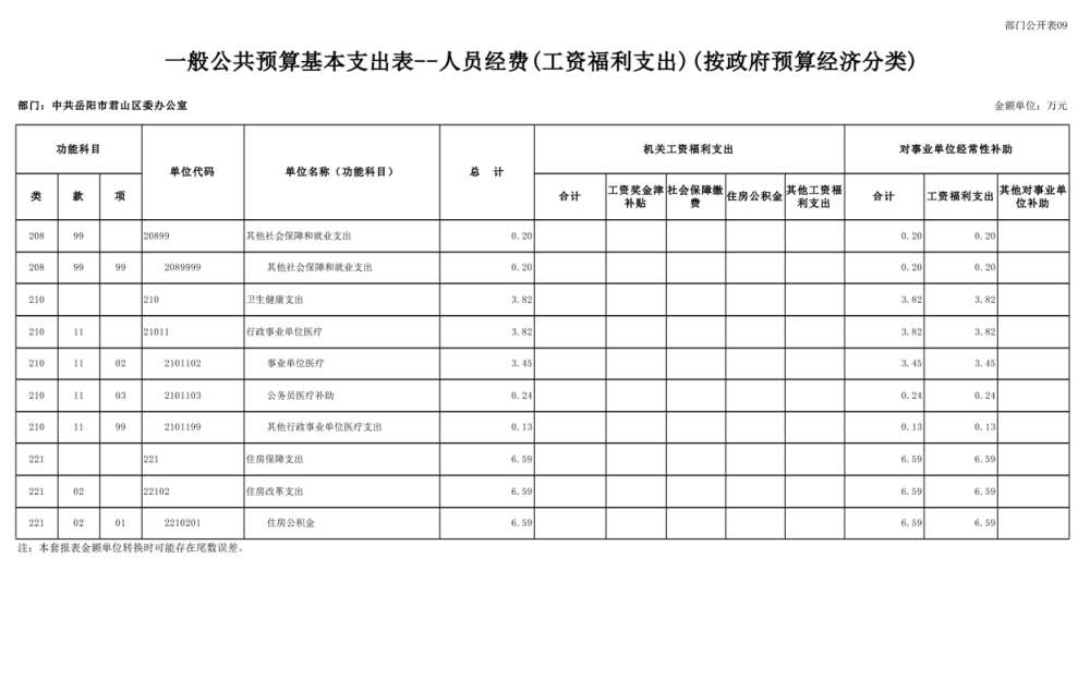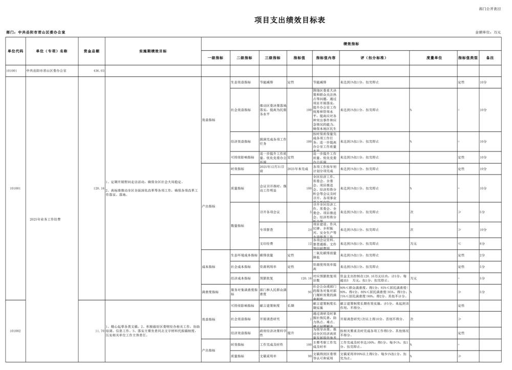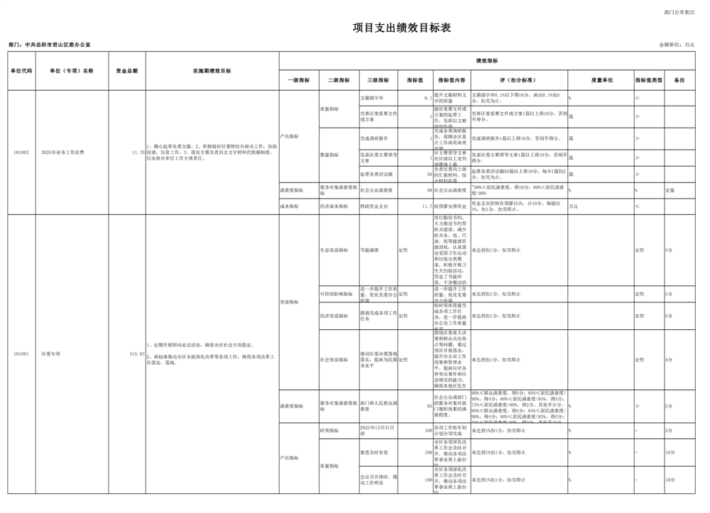 2025年中共岳阳市君山区委办公室(部门)预算公开
