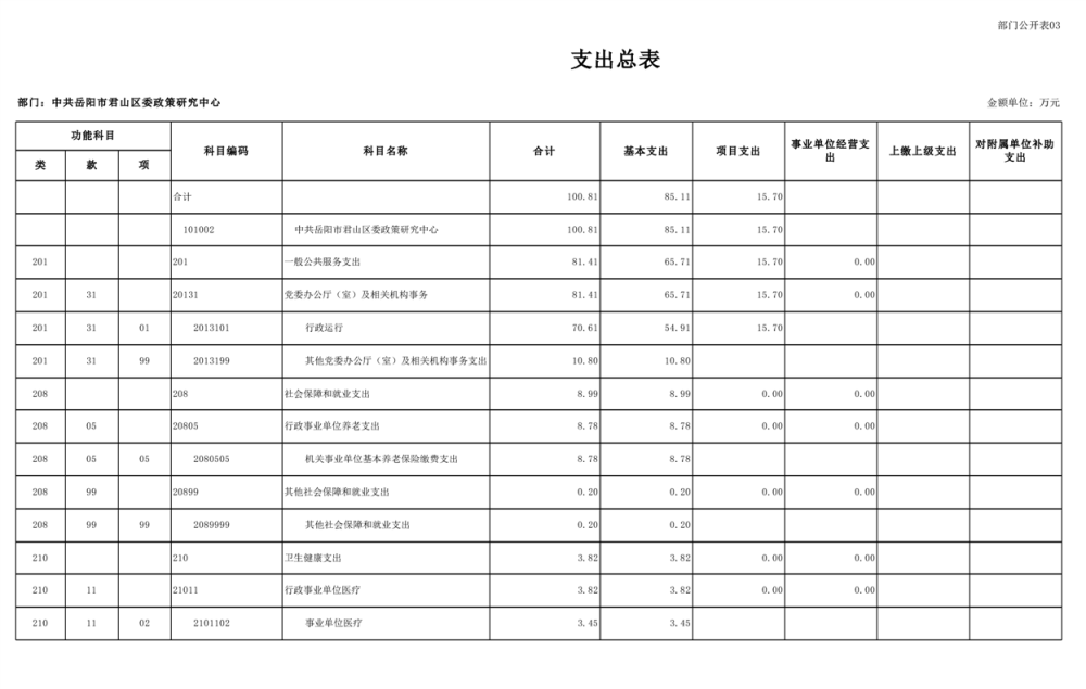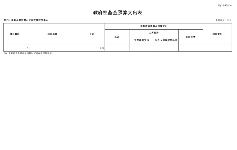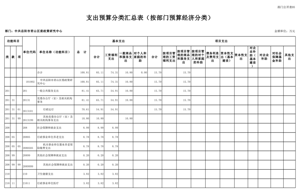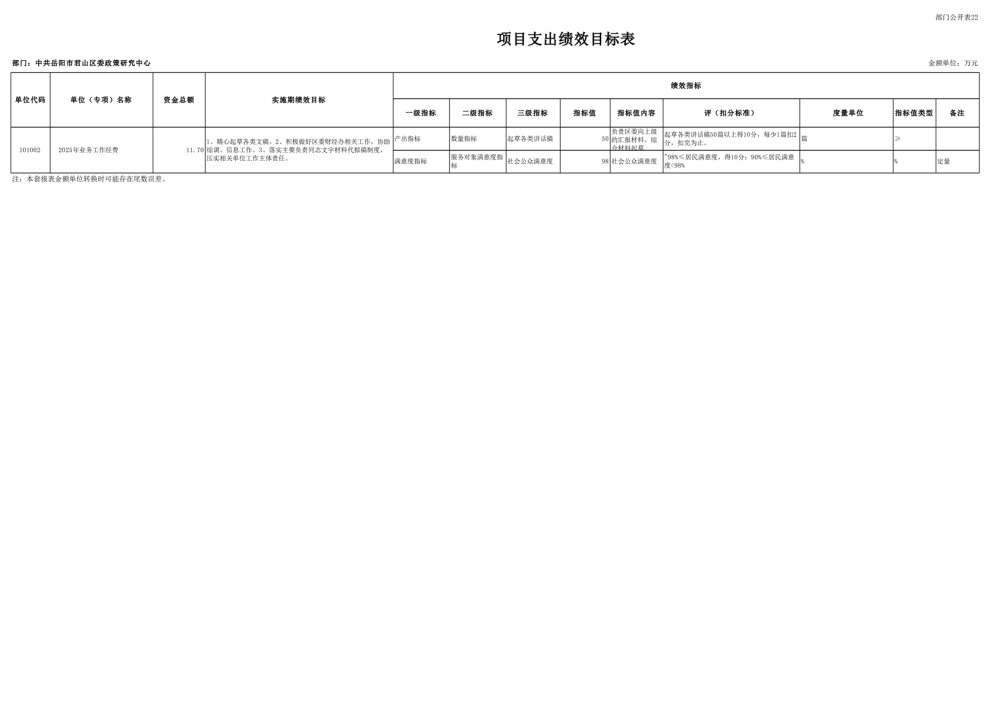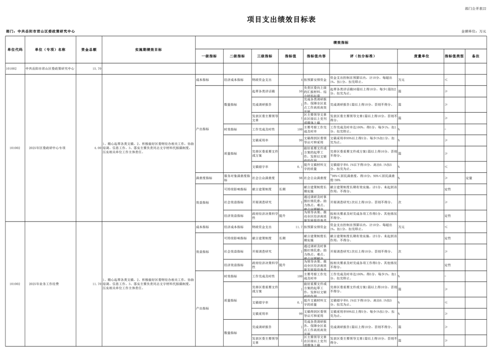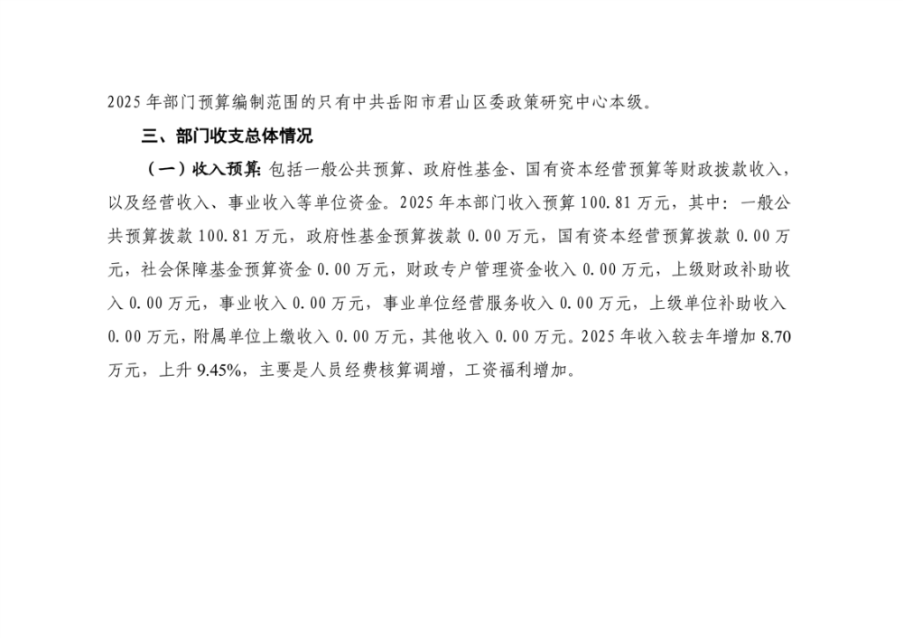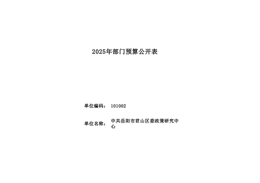 2025年中共岳阳市君山区委政策研究中心部门预算公开