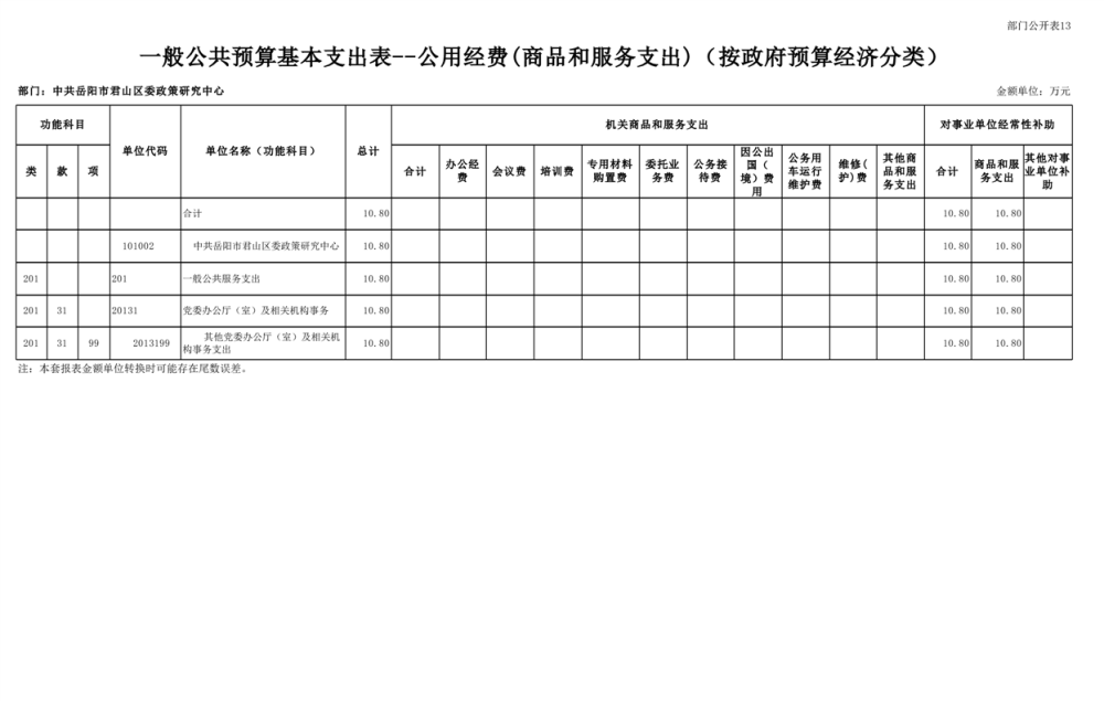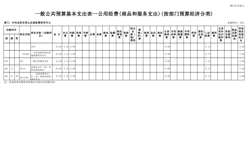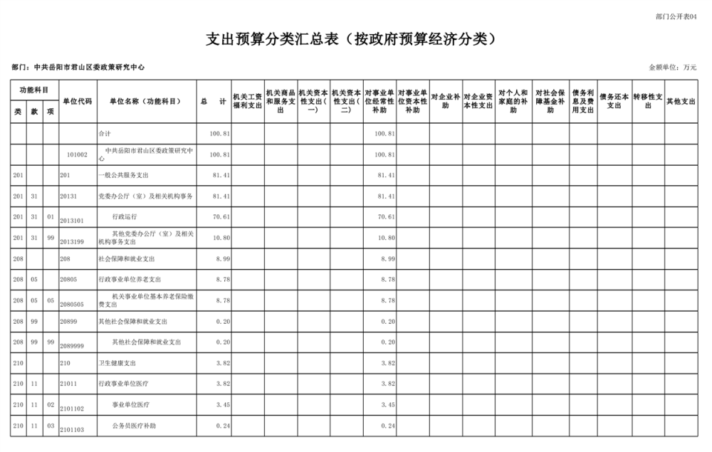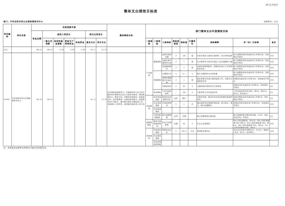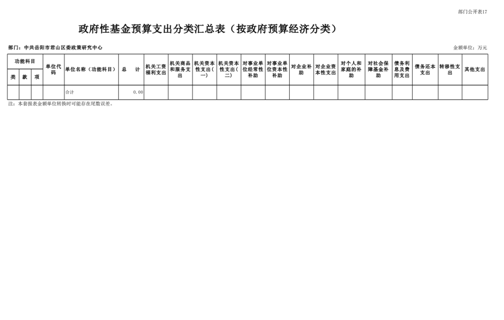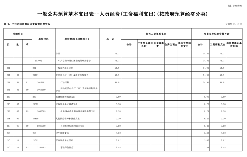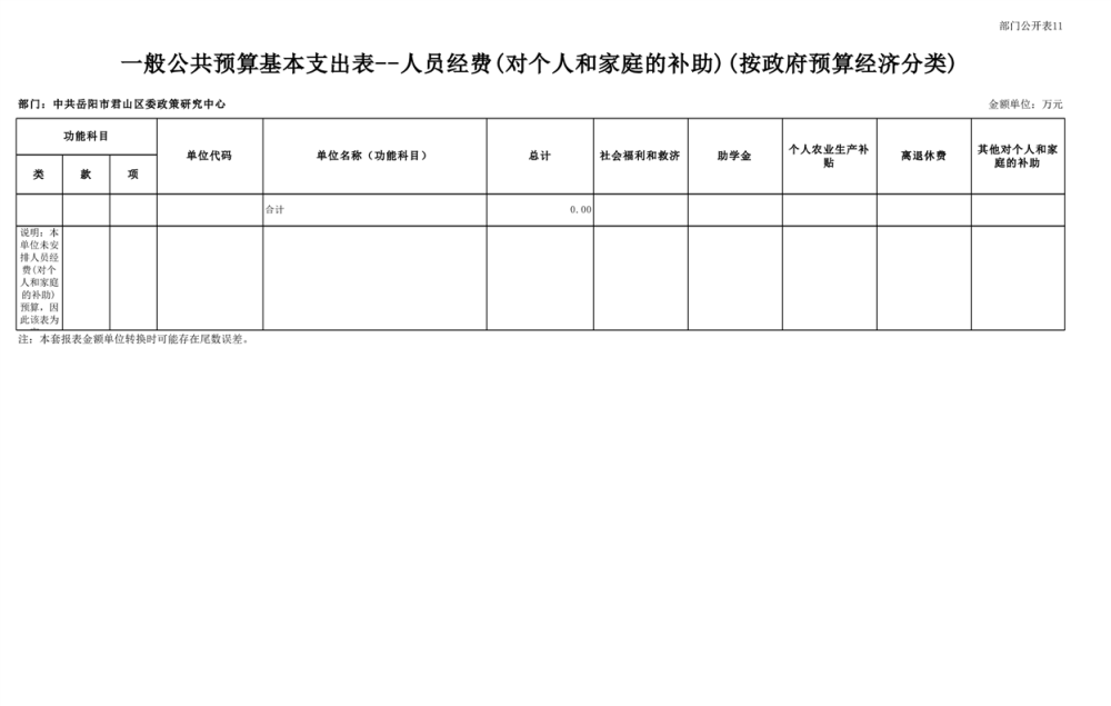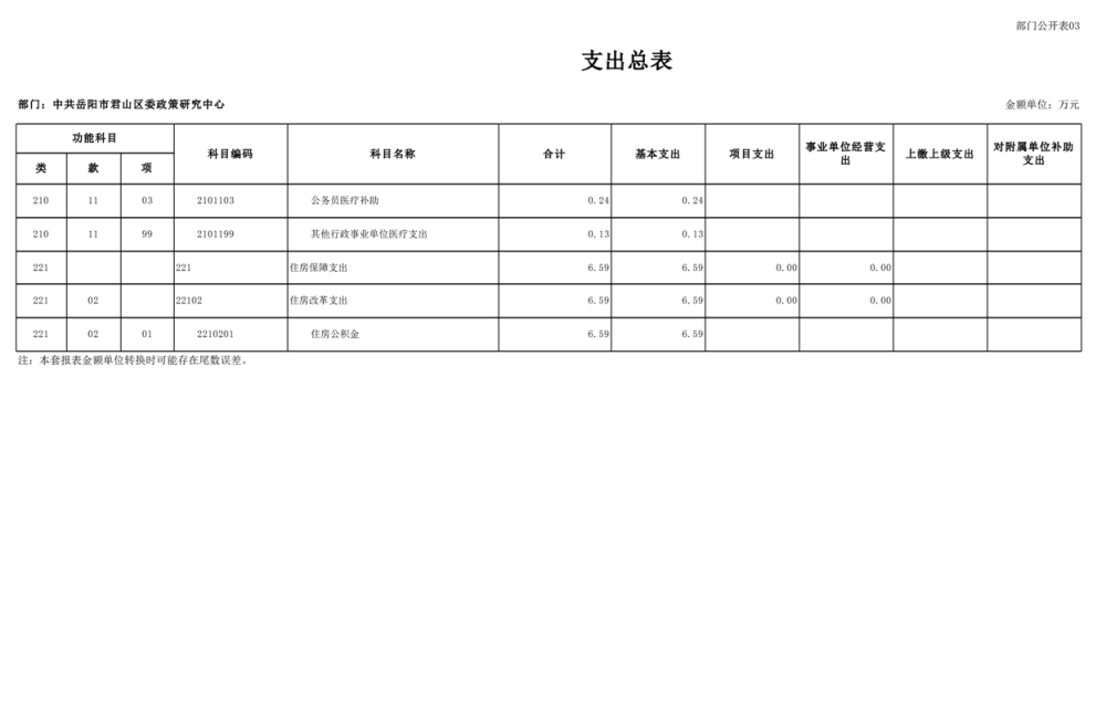 2025年中共岳阳市君山区委政策研究中心部门预算公开