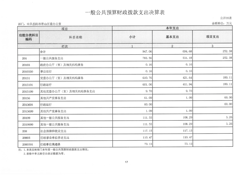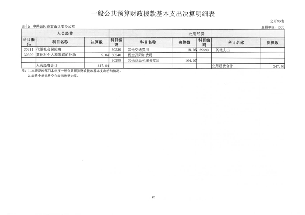 2024年度中共岳阳市君山区委办公室(汇总)部门决算公开