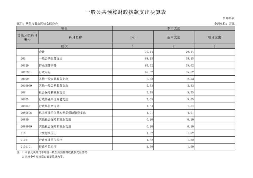 2024年度岳阳市君山区妇女联合会部门决算公开