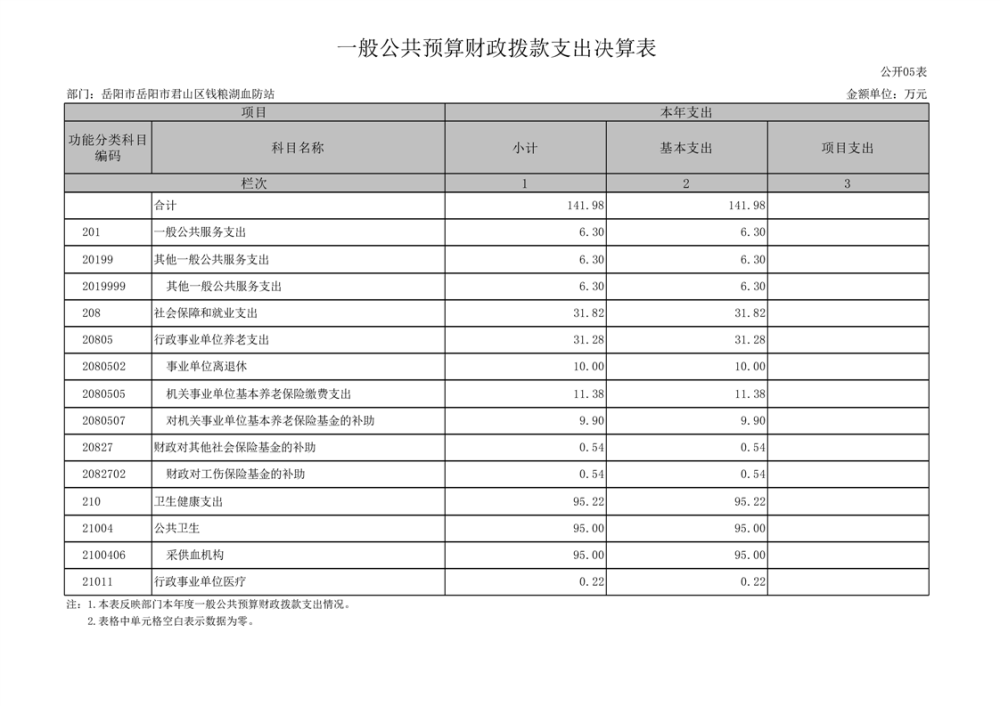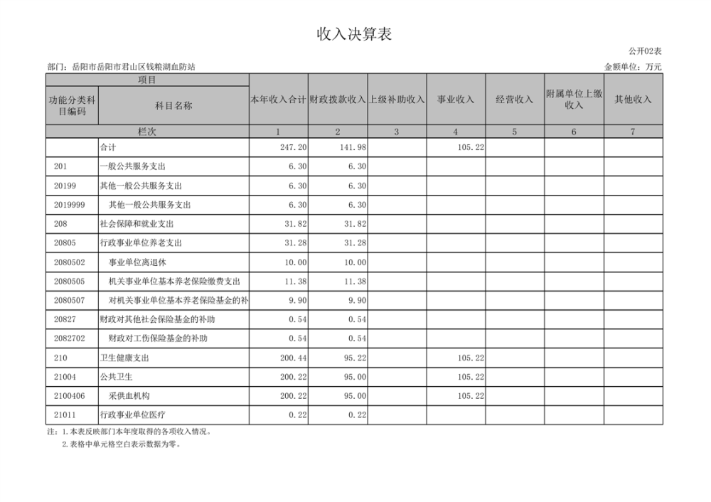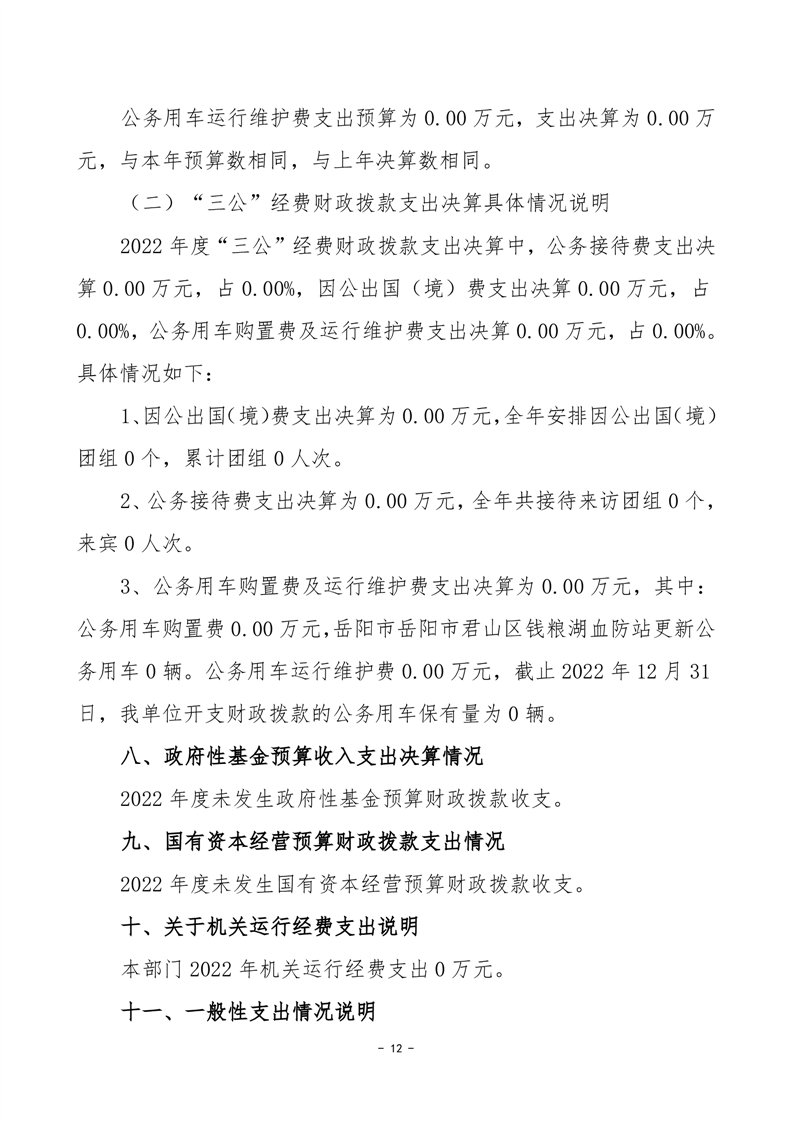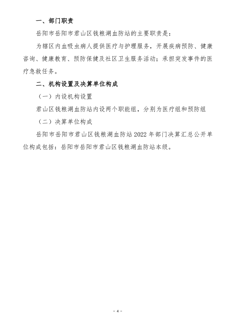 2022年度岳阳市君山区钱粮湖血防站部门决算公开说明