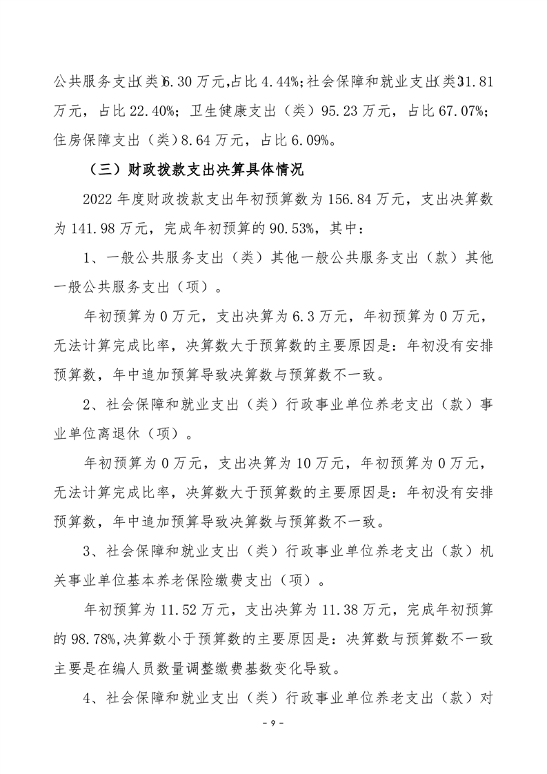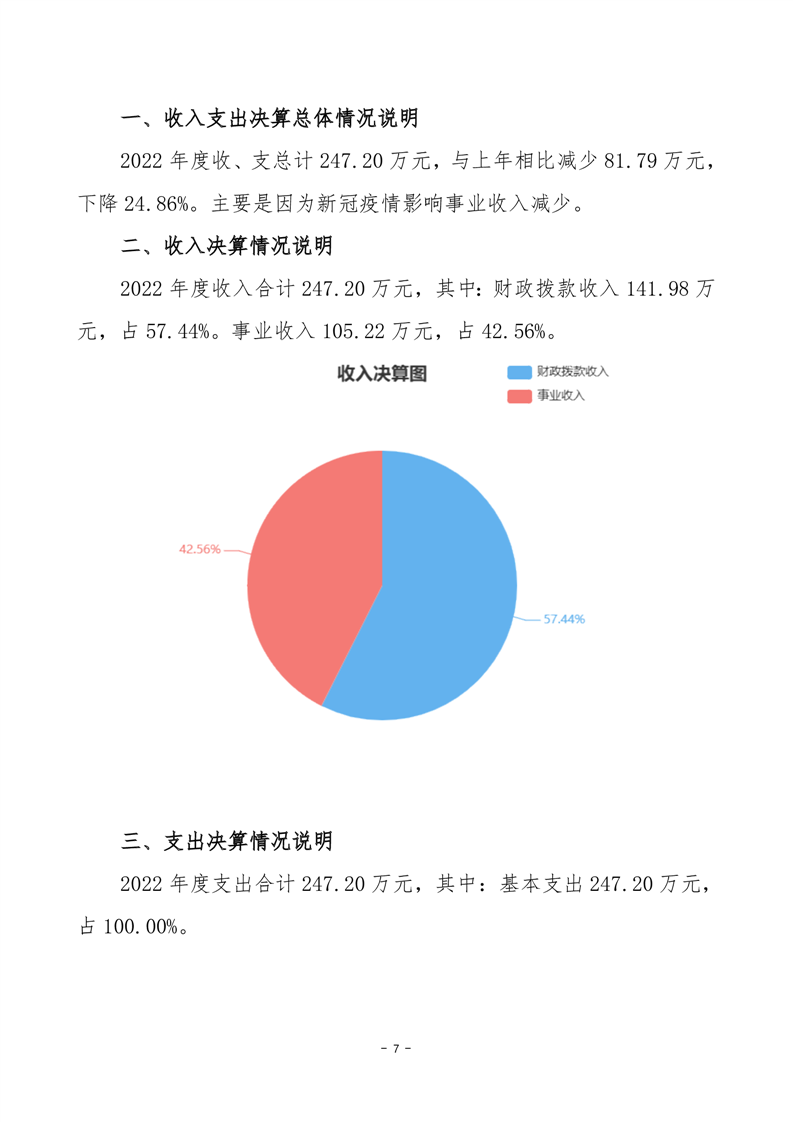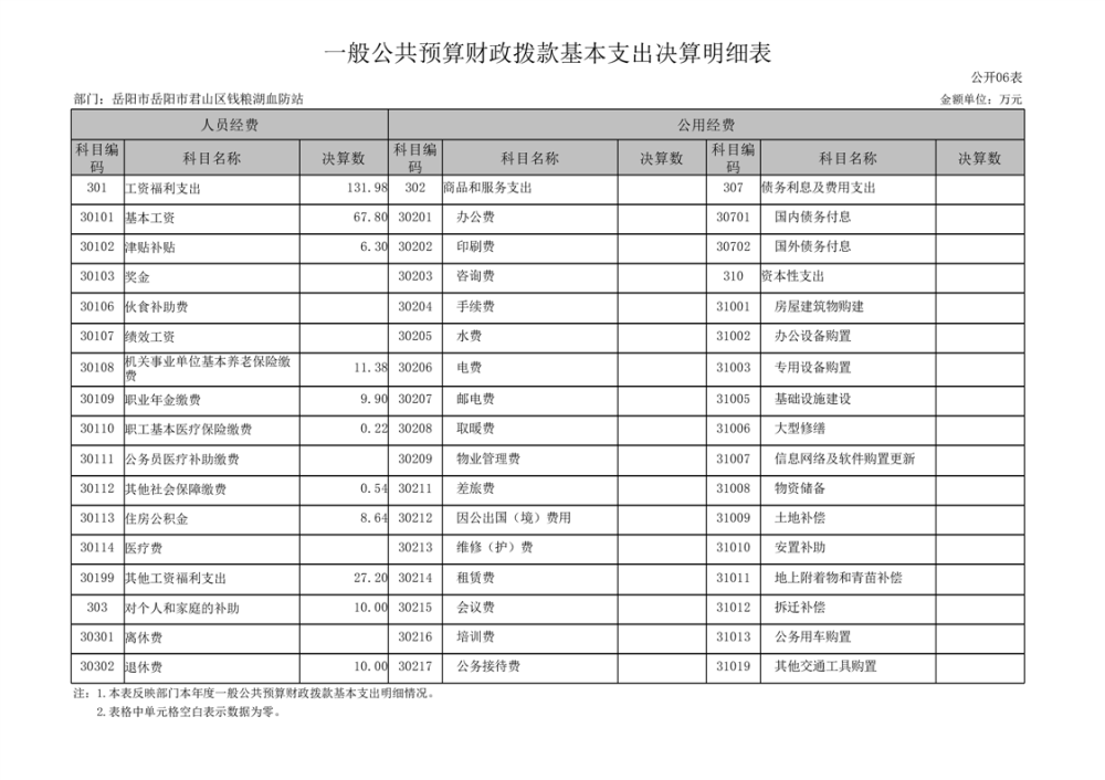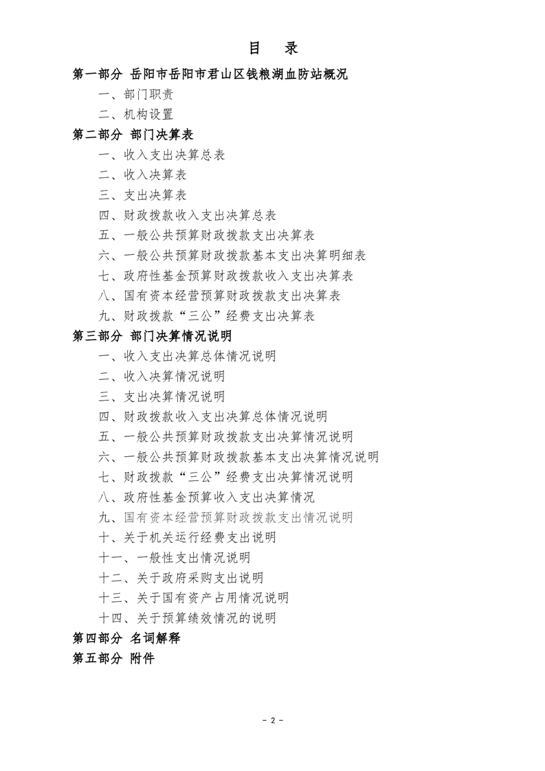 2022年度岳阳市君山区钱粮湖血防站部门决算公开说明