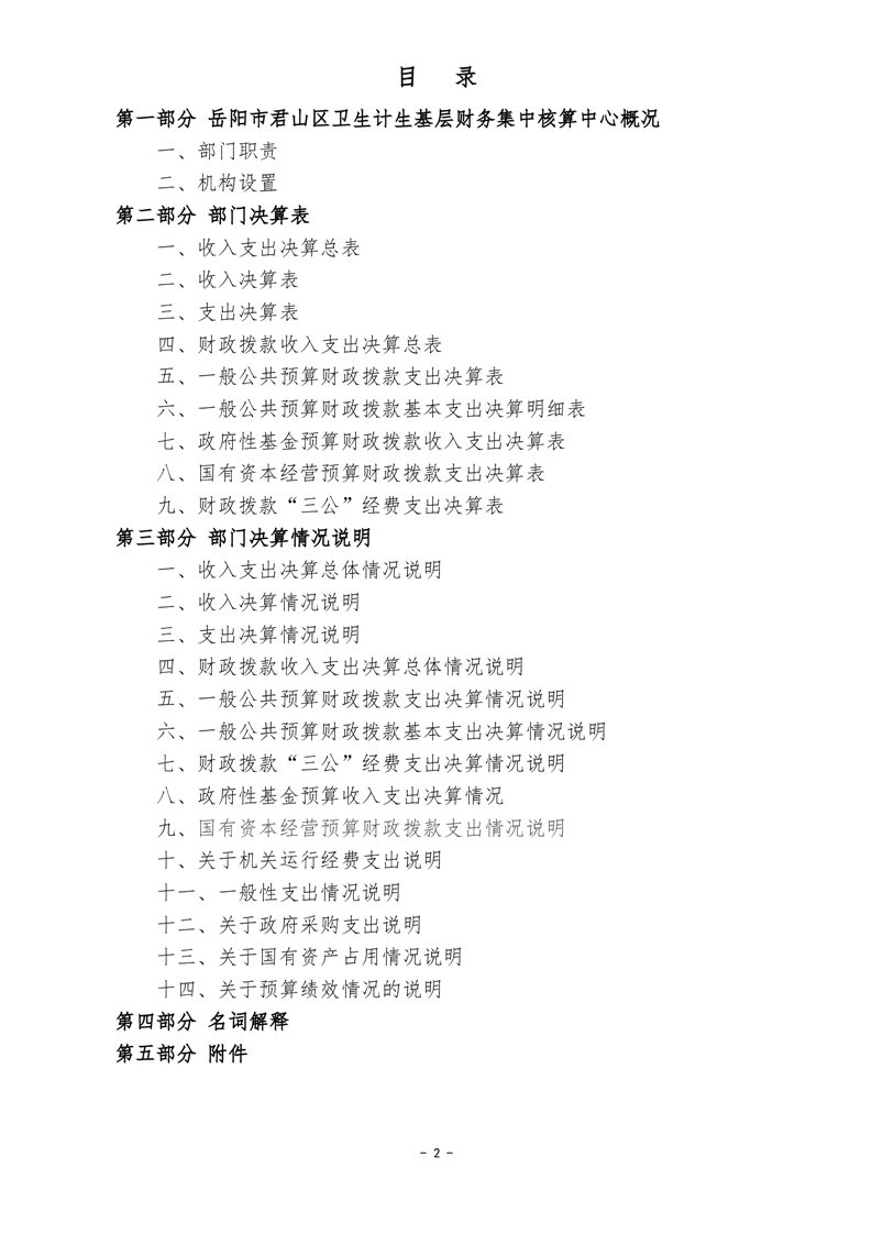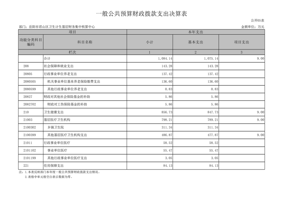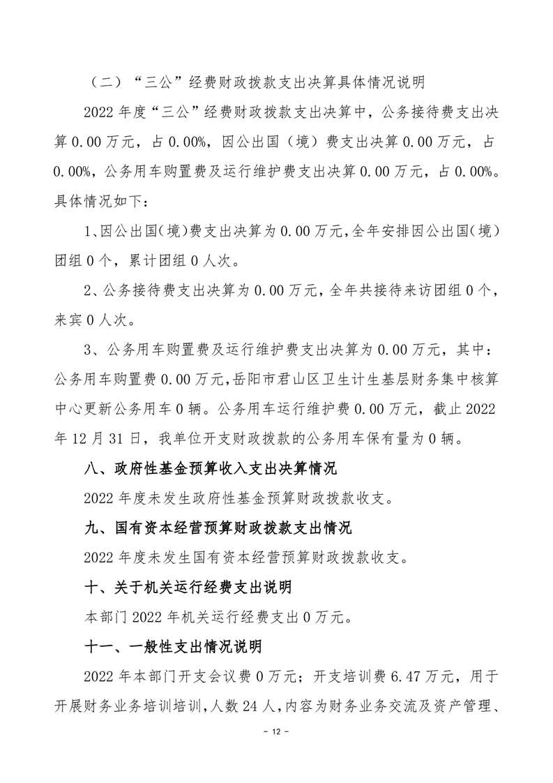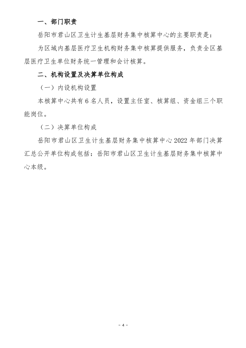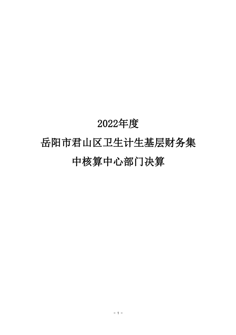 2022年度岳阳市君山区卫生计生基层财务集中核算中心部门决算公开
