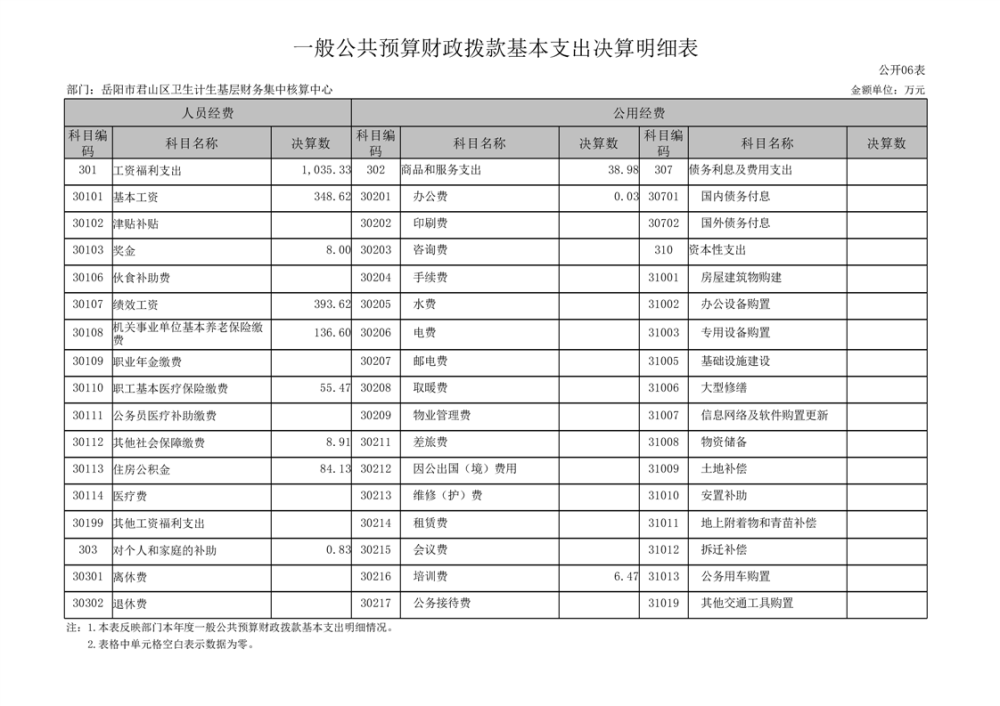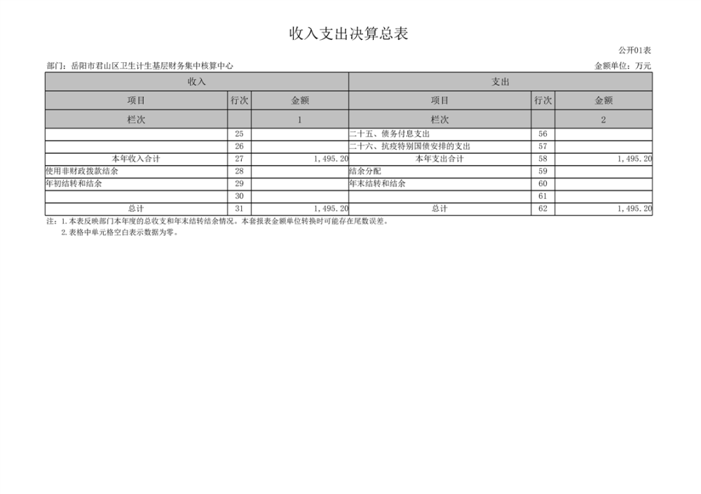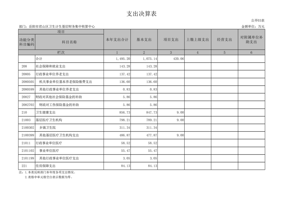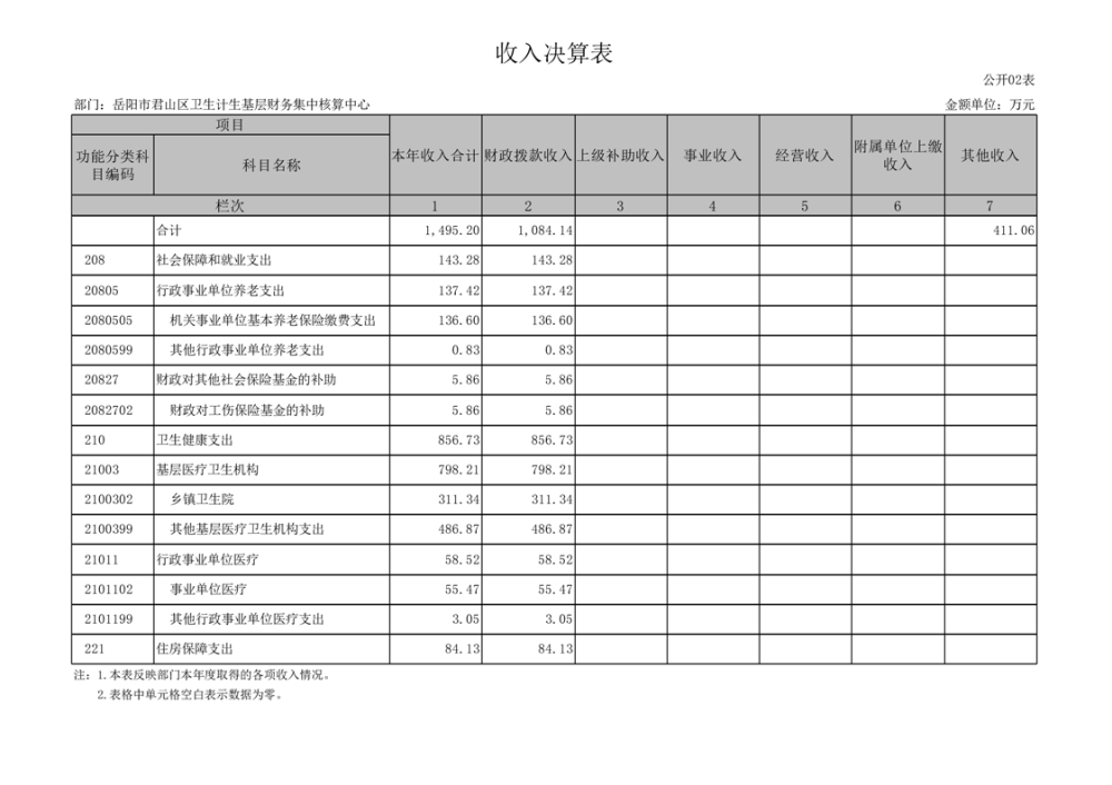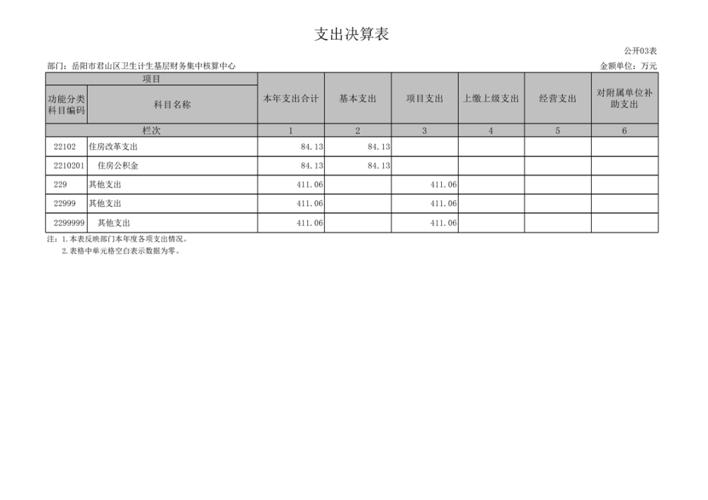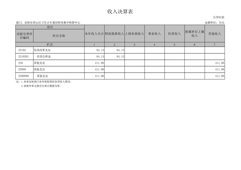 2022年度岳阳市君山区卫生计生基层财务集中核算中心部门决算公开