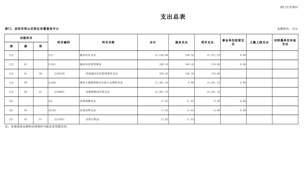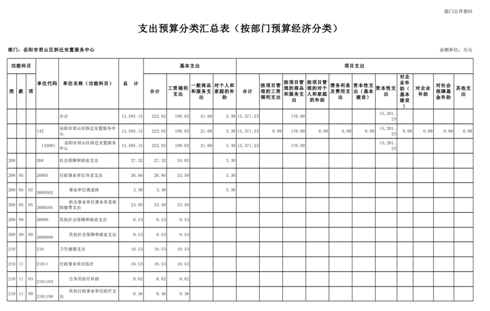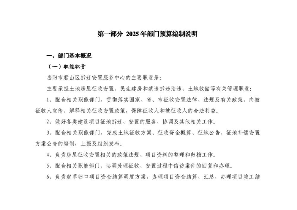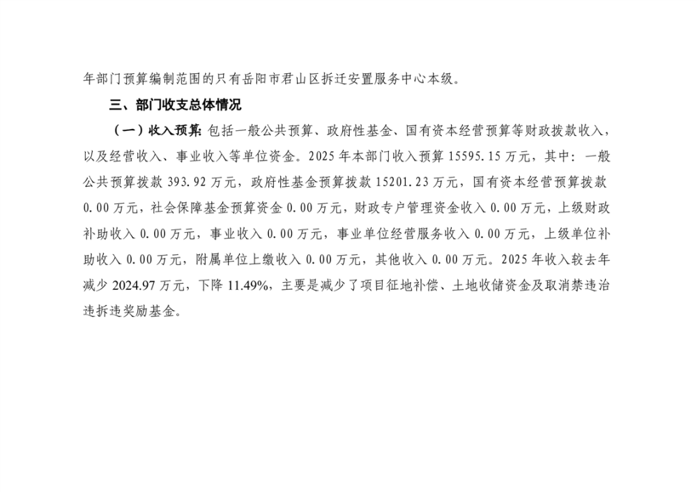 2025年岳阳市君山区拆迁安置服务中心部门预算公开
