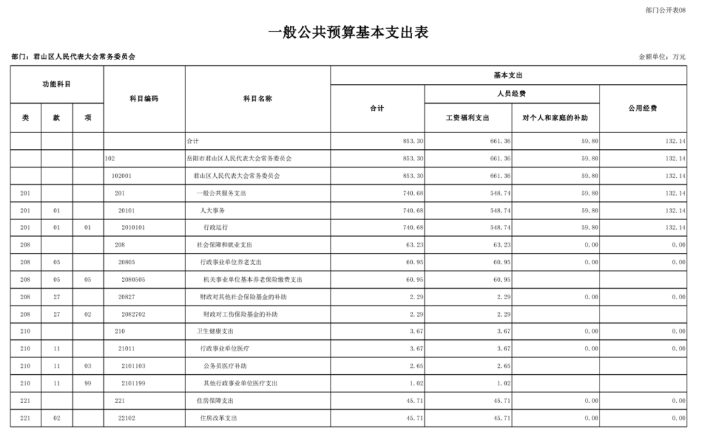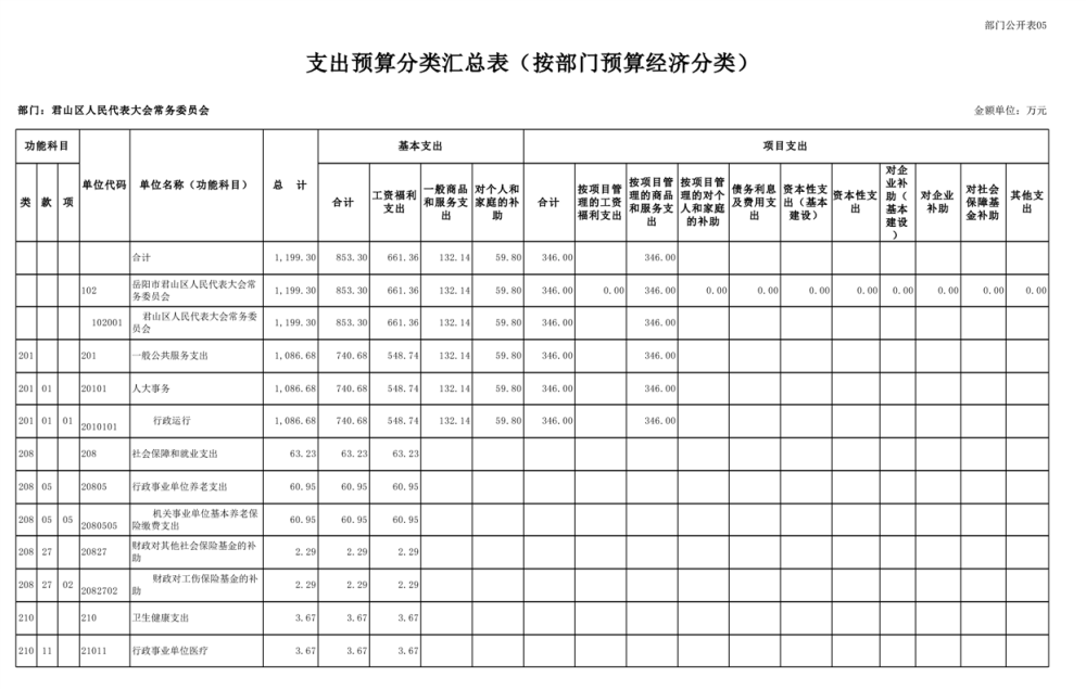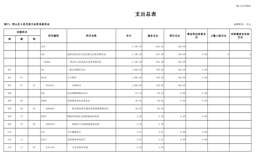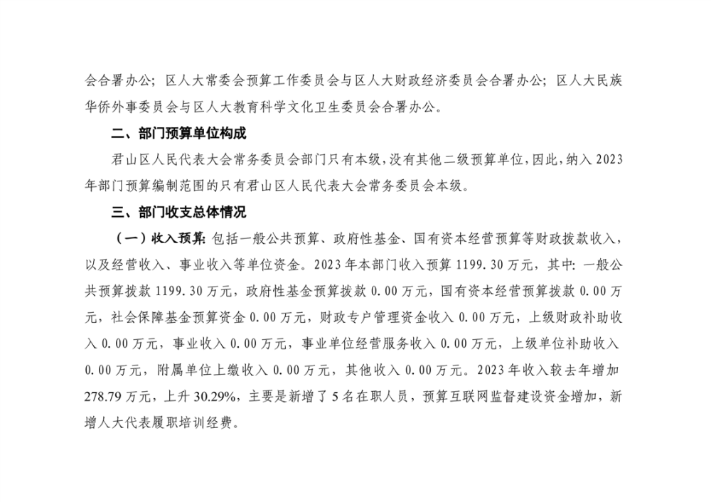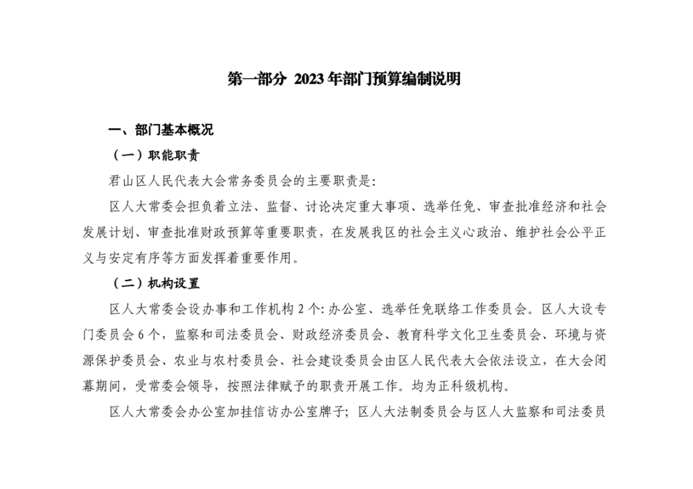2023年君山区人民代表大会常务委员会部门预算公开说明