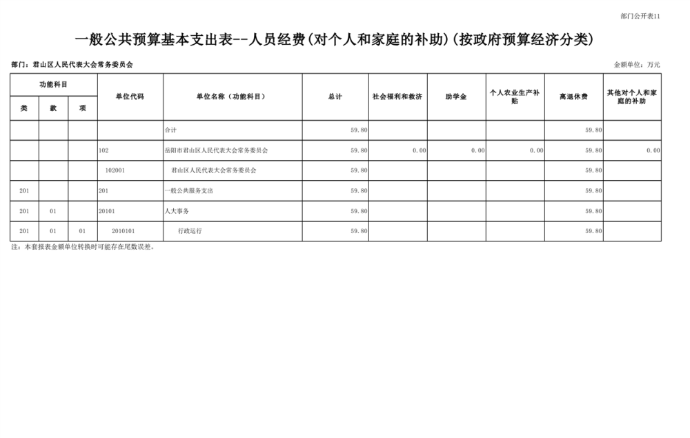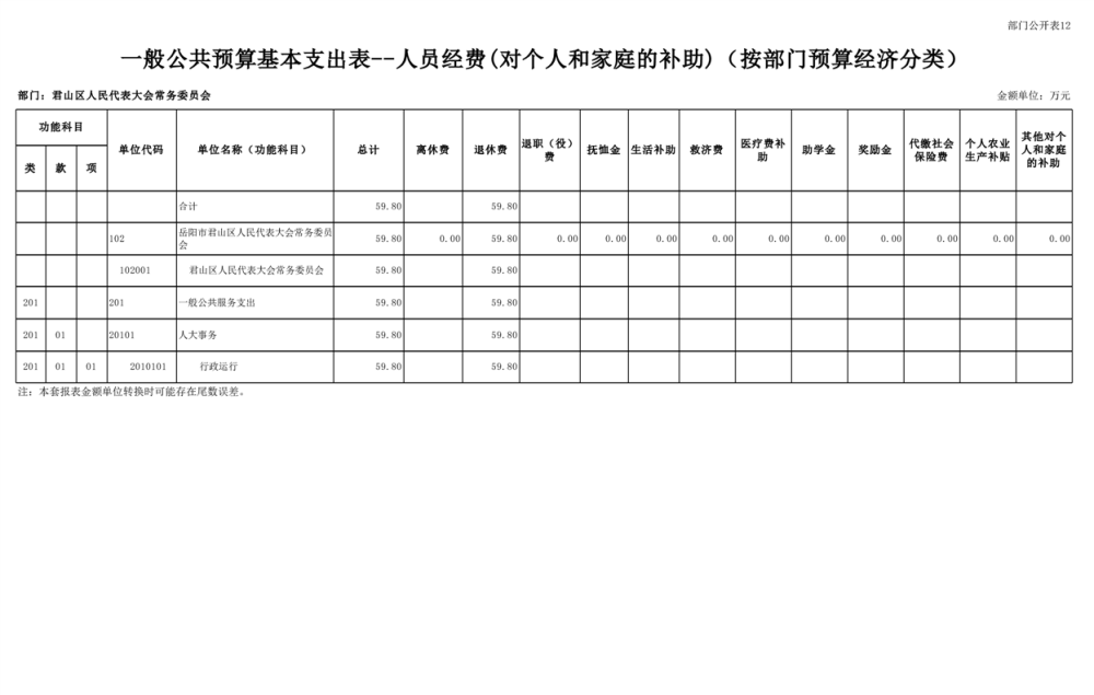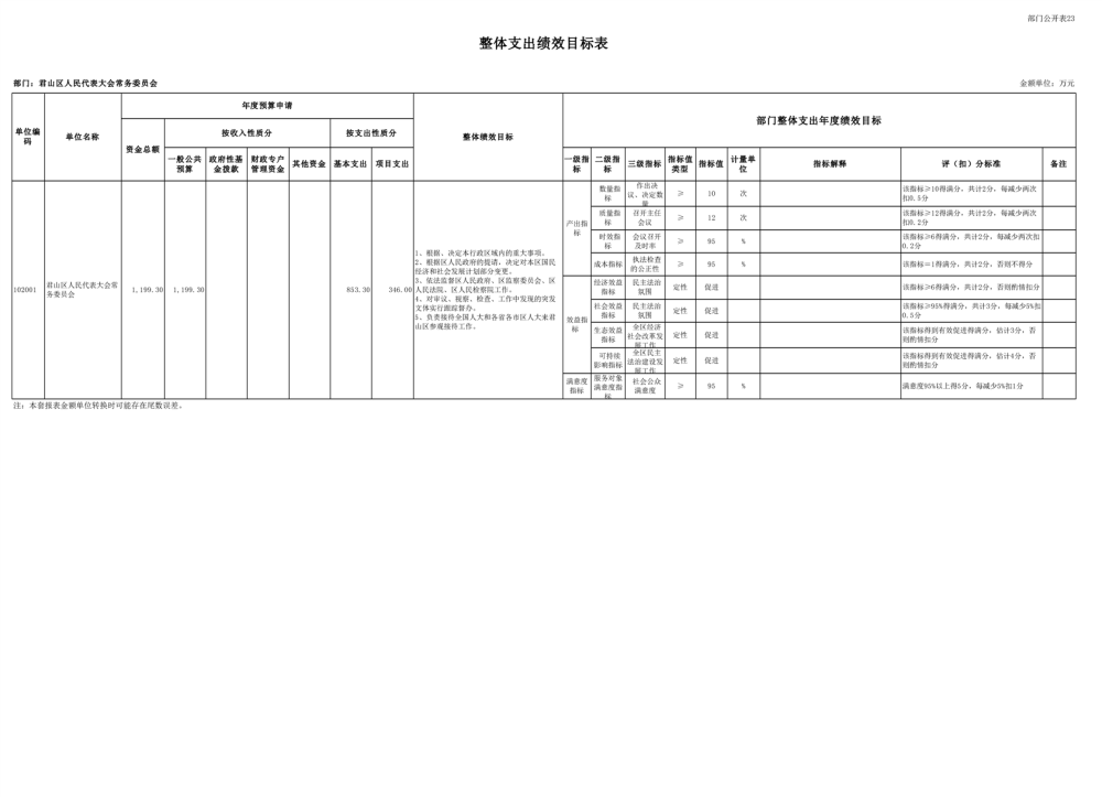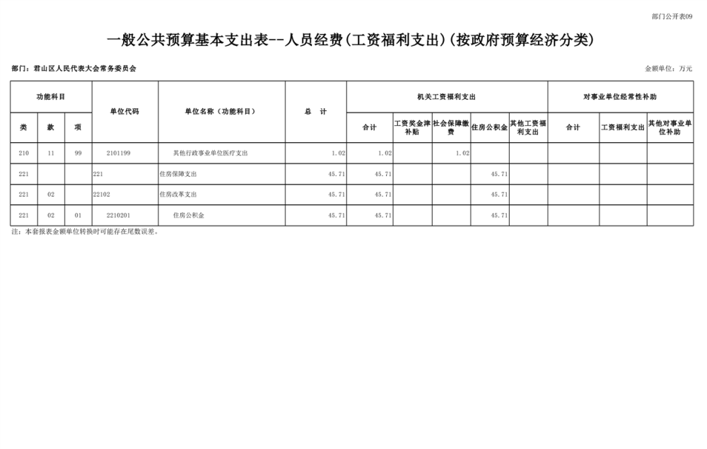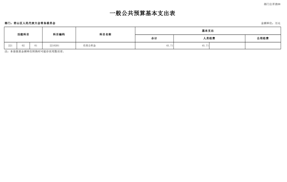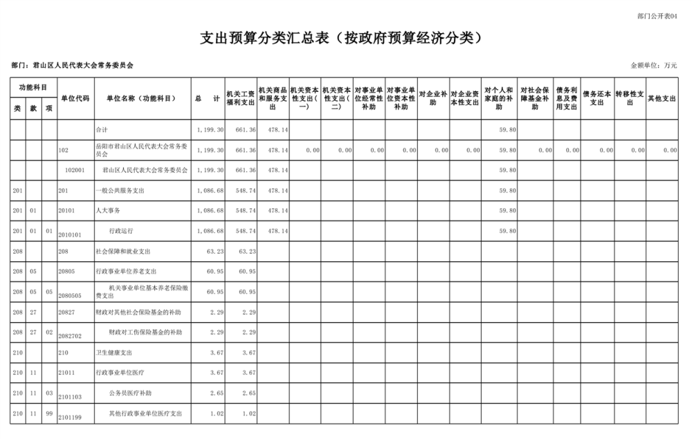 2023年君山区人民代表大会常务委员会部门预算公开说明
