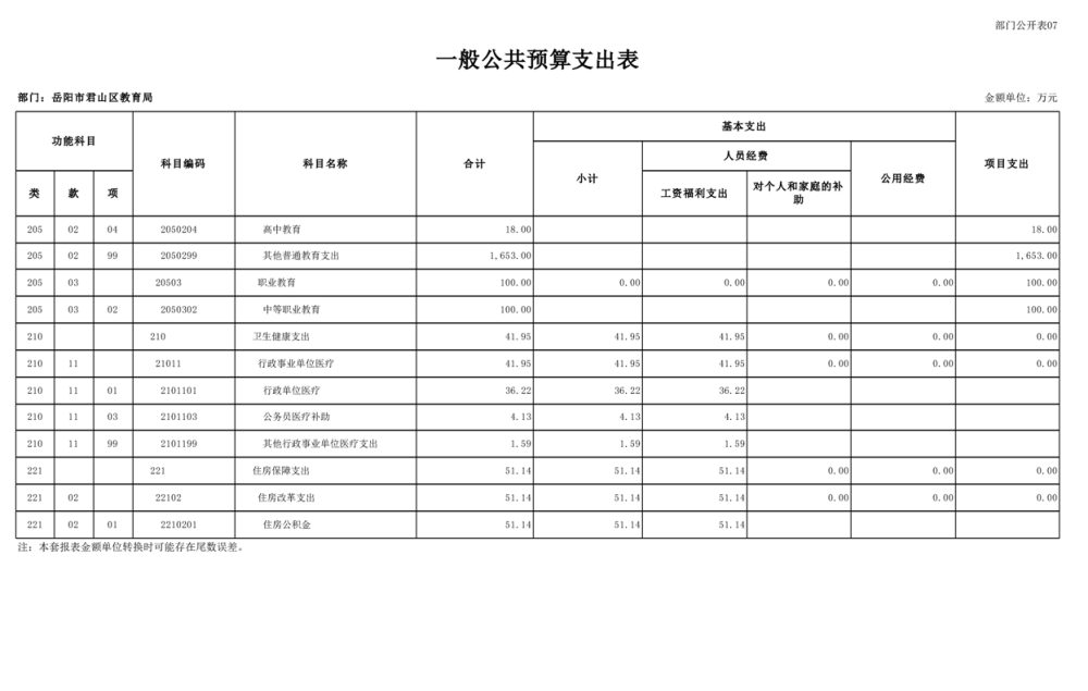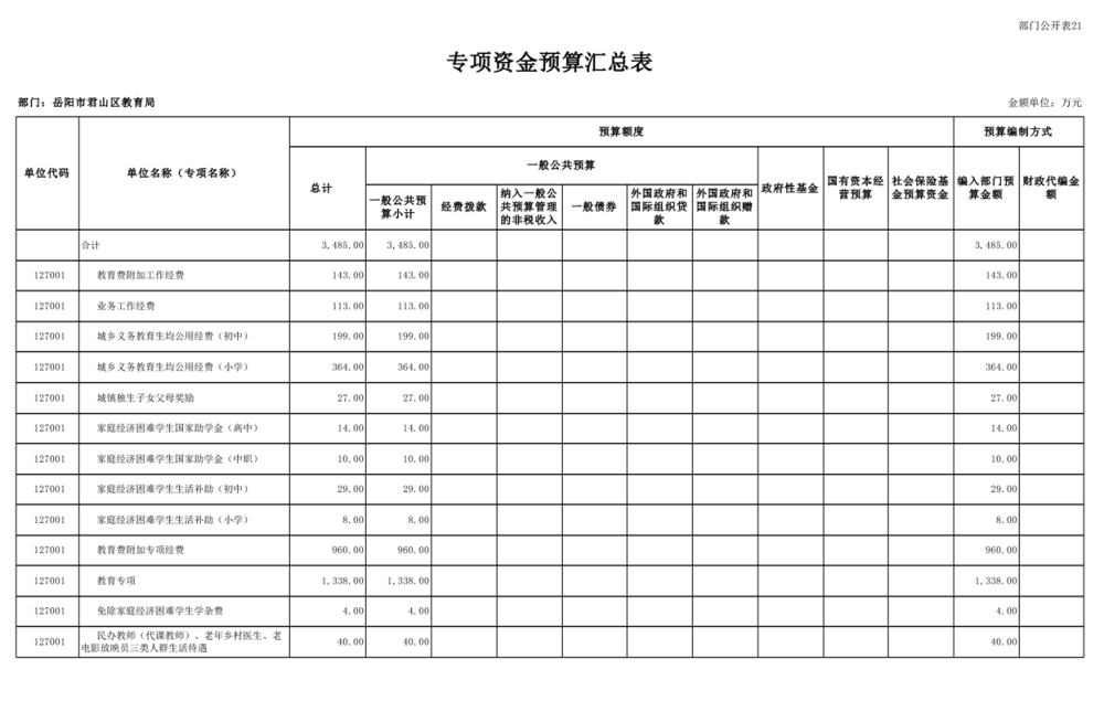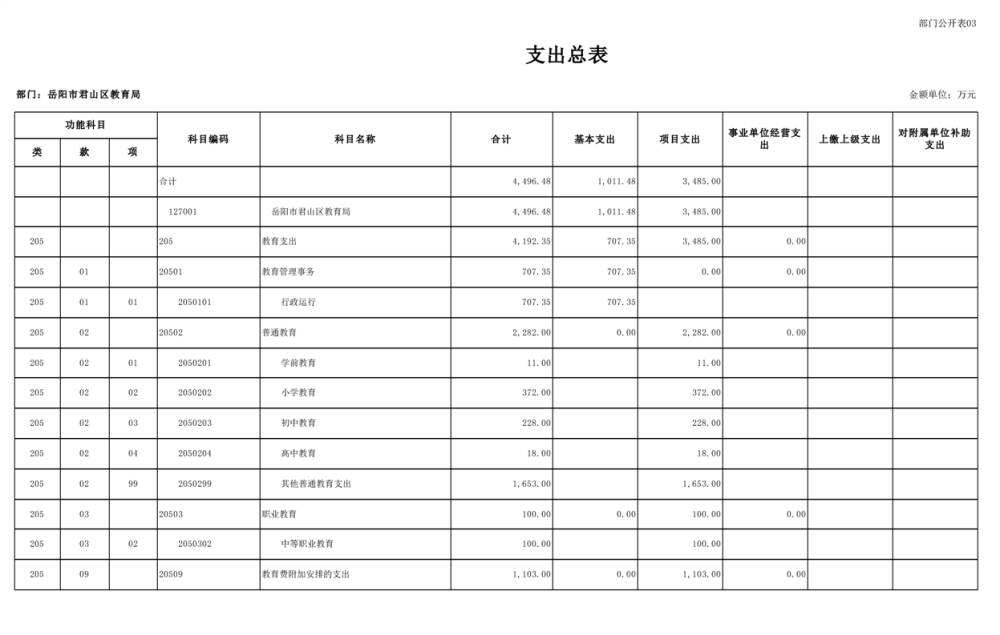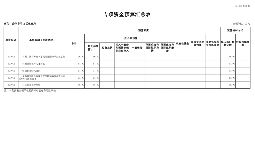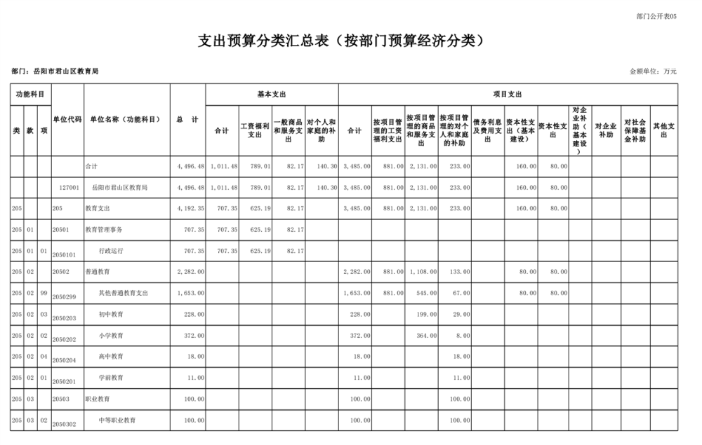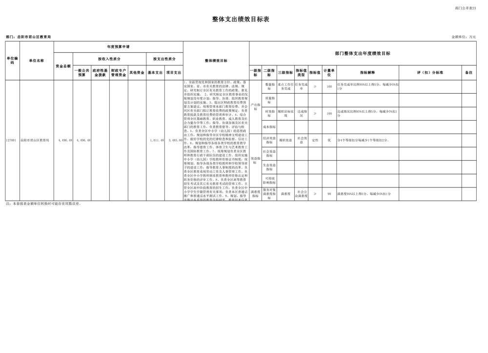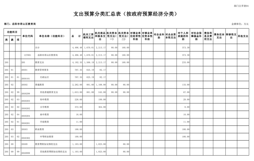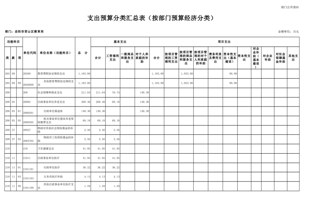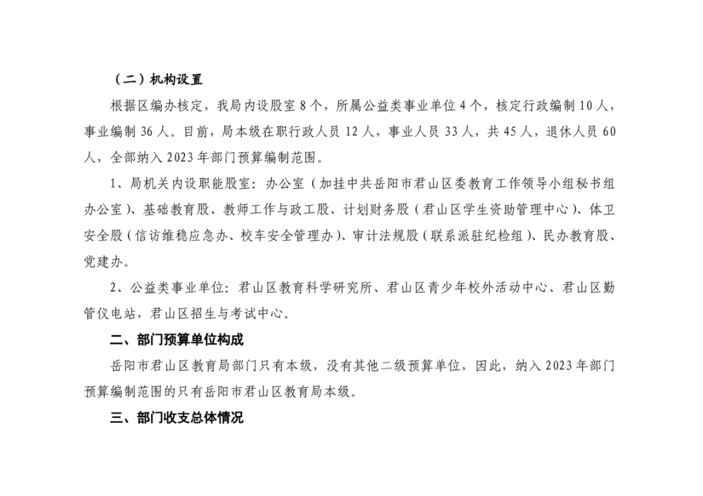 2023年岳阳市君山区教育局(本级)预算公开说明